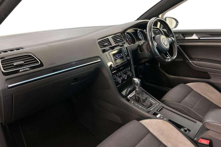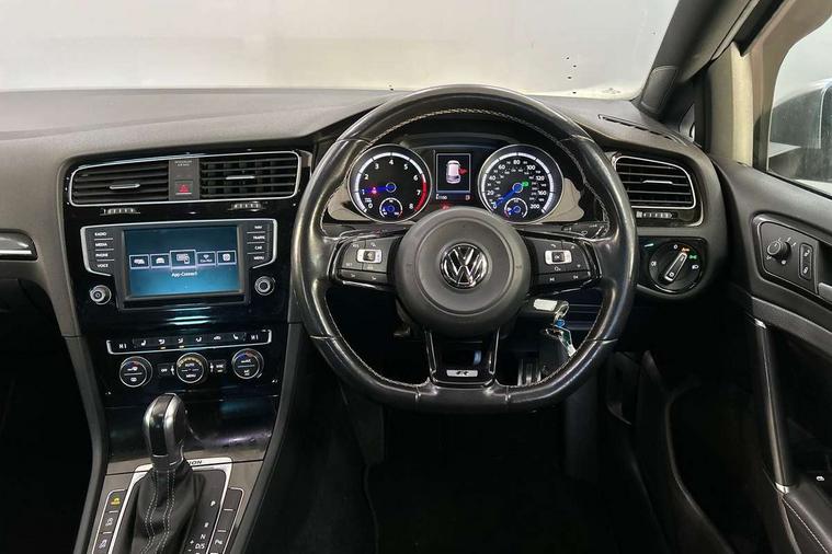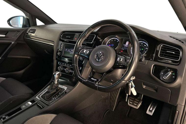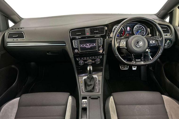 'Lights On' Reminder warning buzzer, ACC - Adaptive cruise control with front assist, forward collision warning, distance monitoring, city emergency brake and speed limiter, Bluetooth Telephone preparation, Brake pad wear indicator warning light, Driver alert system, Driver profile selection, Exterior temperature gauge, Flat tyre indicator, Infotainment system, Instrument cluster in white, Multi function display colour screen, Multifunction computer, Progressive power assisted steering, Rev counter, Trip and service interval display, Ultrasonic front and rear optical and audible parking sensors, Warning buzzer and light for front seatbelts unfastened, Lowered sports suspension, XDS plus electronic differential lock, CD/MP3/WMA, USB and SD card reader, aux-in, Composition media system, DAB Digital radio, MDI with USB/iPod connection cables, Auto dimming rear view mirror, Automatic coming/leaving home lighting function, Automatic headlights, Bi-Xenon headlights and headlight washers with LED daytime running lights, Black rear diffuser, Body colour bumpers, Body colour door handles, Chrome louvres in grille, Dusk sensor + auto driving lights, Electric folding door mirrors with puddle lamps, Electric front windows, Electric rear windows, Electrically adjustable and heated door mirrors, Heated rear windscreen, LED rear lights, Rain sensor, Range adjustable headlights, Rear roof spoiler, Rear windscreen washer and wiper with interval delay, Reverse activated kerb-view adjustment on passenger's door mirror, Twin chrome exhaust tailpipes, Windscreen wipers/ intermittent wipe + 4 position delay, 12V socket in luggage compartment, 3 rear headrests, 3 spoke steering wheel, 60/40 split folding rear seat, Air conditioning - 2 zone electronic climate control, Ambient lighting, Bag hook in luggage compartment, Black headlining, Boot lashing points, Chrome-plated electric mirror adjustment switch surround, Chrome-plated electric window button surround, Courtesy light delay, Cover for storage compartment in centre, Driver/front passenger seat height adjustment, Dust/pollen filter, Foldable front passenger seat backrest, Front + rear carpet mats, Front centre armrest with storage box and rear air vents, Front footwell illumination, Front seat back storage pockets, Gearshift paddles, Grab handles, Height/reach adjust steering wheel, Illuminated door sills, Illuminated vanity mirrors, Isofix preparation for 2 rear child seats, LED reading lights, Load through provision, Lockable, illuminated, cooled glovebox, Luggage compartment cover, Luggage compartment lighting, Multifunction leather steering wheel with leather gear knob/handbrake grip, Passenger underseat drawer, Rear centre armrest with 2 cupholders, Rear cupholder, Stainless steel pedals, Storage box in luggage compartment, Storage compartment in roof console with cover, Storage compartments in doors, Variable boot floor, height adjustable and removable, White adjustable panel illumination, Styling pack - Golf R/R-Line, 3 point height adj front seatbelts + pretensioners, 3 rear 3 point seatbelts, ABS, Automatic post collision braking, Black brake calipers, Child locks on rear doors, Door open warning reflectors, Driver/Front Passenger airbags, Driver/Passenger whiplash optimised head restraints, Drivers knee airbag, Electronic parking brake with auto hold, Electronic tyre pressure monitoring, ESP with EDL + ASR, Front and rear curtain airbags, Front passenger airbag deactivation, Front side airbags, Fuel cut off safety device, Hydraulic Brake Assist (HBA), Pre crash system, Warning triangle and first aid kit holder, Alarm with interior protection, Anti-theft wheel bolts, Electronic engine immobiliser, Remote central locking with 2 remote folding keys, Carbon decorative inserts in dash and door panel, Chrome air vent surrounds, Chrome-plated light switch surround, Gloss black decorative inserts in centre console, Steel space saver spare wheel,