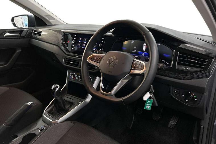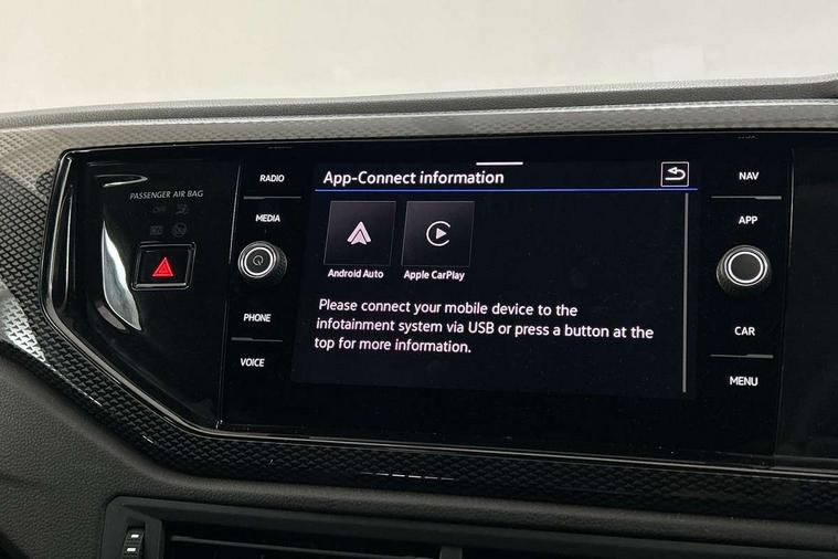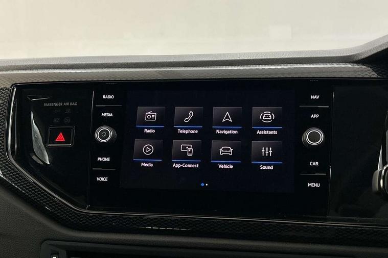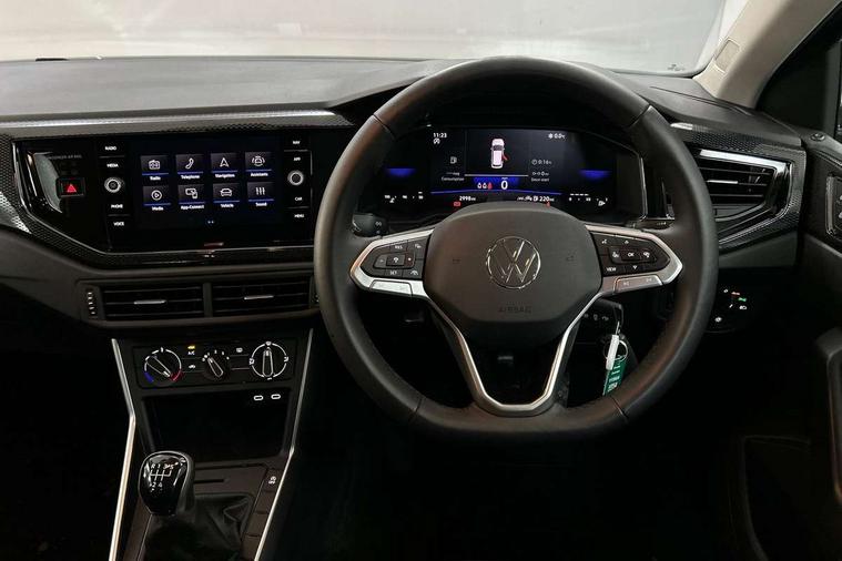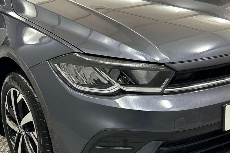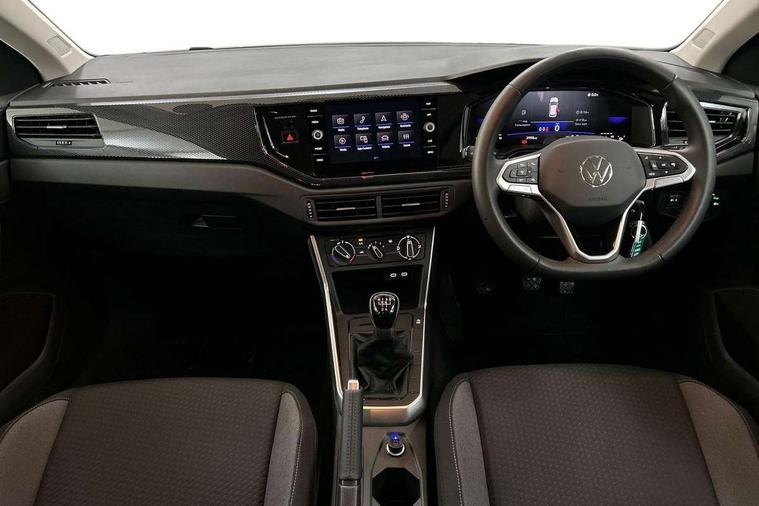 Adaptive cruise control without follow-to-stop and speed limiter, Advanced driver attention and drowsiness monitor, Bluetooth mobile phone interface, Dynamic road sign display, Emergency call service, Multifunction front facing camera for distance control, Park distance control, Power assisted speed sensitive steering, Preparation for navigation system with media and internet package, Preparation for We connect and We connect plus, Rear view camera, Speedo and rev counter, electronic odometer, trip, service interval display and exterior temperature gauge, Standard rear axle, Travel Assist - Lane keeping system and traffic jam assist, Travel assist including emergency assist, Trip computer, Warning signal and warning light for front and rear seatbelts not fastened, Washer fluid level indicator, Wireless app connect, Front wheel drive, Rear shock absorpion, Start-stop system with battery regeneration (recuperation - energy recovery during braking), DAB Digital radio, Diversity antenna for FM reception, Front and rear 6 speakers, Automatic dimming interior rear view mirror, Automatic headlight control with LED separate daytime running lights with coming/leaving home function, Body colour bumpers with chrome inserts, Body colour door handles, Body colour door mirrors, Electric front windows, Engine badge deletion, Headlight range adjustment, Heat insulating and laminated safety glass windshield, LED Headlights, LED rear combination lamps, Power folding adjustable/heated exterior mirrors and front passenger exterior mirror lowering function, Rain sensor, Rear electric windows, Rear fog light, Rear side wing doors, Rear tinted glass from B-pillar backwards approx 65% tinted, Rear windscreen washer and wiper with interval delay, Third brake light, 12V power socket in centre console, 2 front and 2 rear reading lights with switch off delay and dimmer, 2 USB-C ports in the front, 2 USB-C charging sockets on the center console in the rear, 3 rear head restraints, 60/40 split folding rear seat and rear seat bench not split, Ceramique roof lining, Chrome plated radiator grille inserts, air vent surrounds and light switch surrounds, Door and side trim panel, Driver and front passenger seat height adjustment, Driver/passenger sunvisors with illuminated vanity mirrors, Front centre armrest, Front seat backrest storage pockets, Front standard seats, Handbrake lever handle in leather, Hartley/Thomas cloth upholstery, Headliner in recycled material, Isofix child seat preparation easy-fit (for two outer rear seats, and front passenger seat) compatible with I-size, Leather trimmed gear knob, Luggage compartment cover, Luggage compartment lighting, Removable luggage compartment floor, Single front passenger seat, Standard climatic zones, Standard pedal cluster, Three spoke leather wrapped multifunction steering wheel, Light and vision pack - Polo, 3 point height adj front seatbelts + pretensioners, 3 point seat belt for centre rear seat, 3 point seatbelts, outer rear with ECE lable, ABS, Driver and front passenger airbag with front passenger airbag deactivation, Drivers and front passengers safety optimised head restraints, ESC (Electronic stability control) + EDL (Electronic Differntial lock) and ASR (Traction control), Extended and predictive pedestrian/ cyclist protection, Front assist with autonomous emergency braking (for Adaptive Cruise Control ACC up to 130 mph), Front curtain and side airbags with center airbag, Front disc brakes, Hill hold control, Manual child lock in rear doors, Rear drum brakes, Single tone horn, Tyre pressure loss indicator, Alarm with interior protection, Anti-theft alarm system with interior monitoring, backup horn, and towing protection, Anti-theft wheel bolts, Electronic engine immobiliser, Lava stone black gloss/matt decorative inserts in dash and front door panels, 16" Torsby alloy wheels, Low rolling resistance tyres,