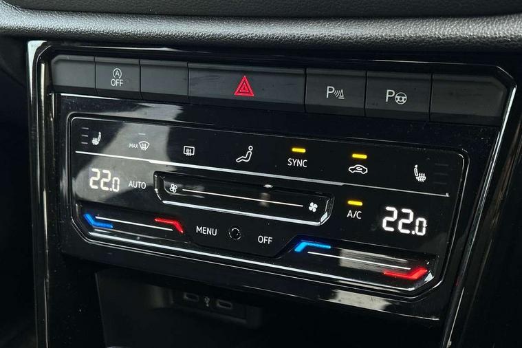 10.25" Digital cockpit pro, Bluetooth mobile phone interface, Driver alert system with fatigue detection, Driver tips and journey analysis, Emergency call service, Lane keeping system Lane Assist, Modified key software - reduce switch off time for key status change to Long no motion, Online services, Park assist including front and rear parking sensors, Service interval indicator, Tailgate/trunk lid release from outside, Think blue trainer driver tips and journey analysis, Warning sound and light for front seatbelts unfastened, Wireless app connect, Battery regeneration during braking, Start/stop function with battery regeneration, Diversity antenna for FM reception, Front and rear 6 speakers, Music playback - MP3, WMA and AAC files, Premium USB cable in choice of either Apple or Android smartphone compatibility, SD card slot, Simultaneous pairing of 2 compatible mobile devices, Title and cover art display, We Connect and We Connect Plus functionality, 3rd brake light, Auto dimming interior rear view mirror, Automatic hazard lights activation under emergency braking, Automatic headlight control with LED separate daytime running lights with coming/leaving home function, Body colour sports bumpers with silver metallic underbody fascia, Dynamic headlight range control with self adjusting whilst driving, Extended roof spoiler, Exterior mirrors aspherical on driver side, convex on front passenger side, External USB type C socket and charging sockets, Front windscreen wiper with intermittent wipe and 4 position delay, Heated rear window, LED Plus headlamps, LED rear combination lamps, LED rear number plate lights, LED tail lamp rear comination lamps, Light mode for poor weather, rain, fog or snow, Power windows with comfort operation and circuit breaker, Rain sensor, Rear exhaust tailpipe, Rear fog light on one side and reversing lights on both sides, Rear side wing doors, Rear wash/wipe with intermittent wipe setting, Remote electrically foldable door mirrors, puddle lights and reverse activated passenger's door mirror, 12V power socket in centre console, 3 rear head restraints, 3 seat bench in 2nd row, 4 load lashing points in luggage compartment, Air care climatronic air conditoning system with active combination filter and 2-zone temperature control, Chrome plated radiator grille inserts, air vent surrounds and light switch surrounds, Door and side trim panel with leatherette insert, Drawer under drivers seat, Front + rear carpet mats, Front centre armrest, Front comfort sports seats, Front cupholders x 2, Front footwell illumination, Instrument lighting, white adjustable panel illumination, Interior ambient lighting and surround lighting, Interior light delay, Isofix child seat preparation, Leather gearshift handle, LED interior light with switch off delay/dimmer and 2 front/rear LED reading lights, Load-through provision with cup holder when folded down ('Unsplit rear seat bench, split folding backrest, with centre armrest), Luggage compartment lighting, Non-folding front passenger seat backrest, Single front passenger seat, Storage compartment in left and right luggage area, Storage compartment in rear doors, Storage compartments in driver and front passenger doors, Sunvisors with illuminated vanity mirrors, Variable boot floor, height adjustable and removable, Driver assistance pack without proactive passenger protection - T-Roc, 3 point height adj front seatbelts + pretensioners, 3 point seatbelts in outer rear with ECE label, ABS, Child locks on rear doors, Driver and front passenger airbag with front passenger airbag deactivation, Driver and front passenger safety-optimised head restraints, Drivers seatbelt reminder, Electronic parking brake, Electronic Stability Control (ESC) inc EDL (Electronic Differential Lock) and ASR (Traction Control), Front and rear passengers curtain airbag system including front side airbags, Front assist with city emergency braking and pedestrian monitoring, Front seat side impact airbags, Predictive pedestrian protection, Rear disc brakes, Single tone horn, Tyre pressure loss indicator, Volkswagen roadside assistance, Alarm with interior protection, Anti-theft alarm system with interior monitoring, backup horn, and towing protection, Remote central locking with SAFELOCK, radio remote control with 2 remote control folding keys, Trims for alloy wheels,