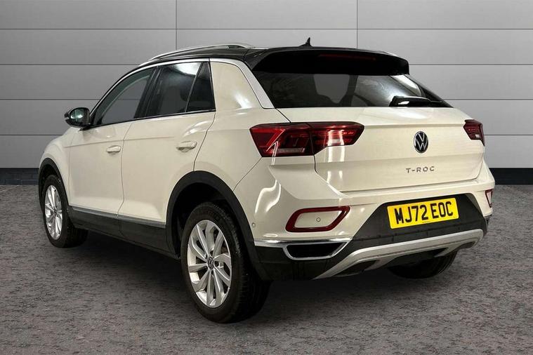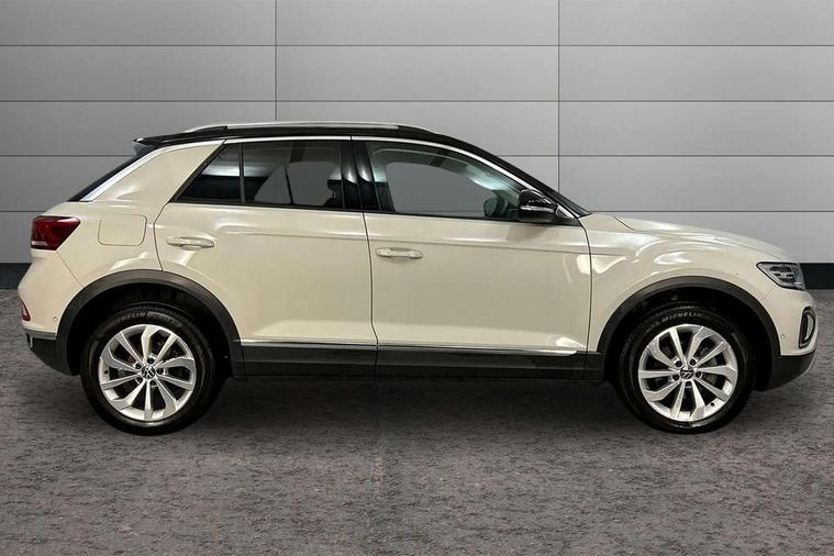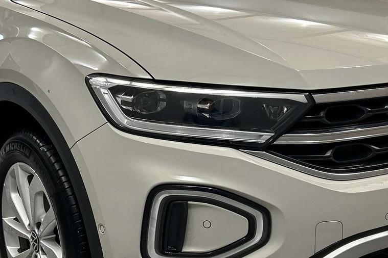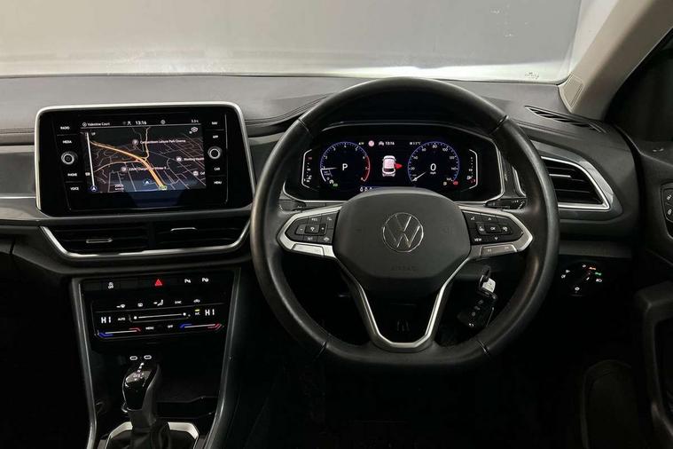 10.25" Digital cockpit pro, Bluetooth mobile phone interface, Driver alert system with fatigue detection, Driver tips and journey analysis, Emergency call service, Lane keeping system Lane Assist, Modified key software - reduce switch off time for key status change to Long no motion, Online services, Park assist including front and rear parking sensors, Service interval indicator, Tailgate/trunk lid release from outside, Think blue trainer driver tips and journey analysis, Warning sound and light for front seatbelts unfastened, Wireless app connect, Battery regeneration during braking, Start/stop function with battery regeneration, Diversity antenna for FM reception, Front and rear 6 speakers, Music playback - MP3, WMA and AAC files, Premium USB cable in choice of either Apple or Android smartphone compatibility, SD card slot, Simultaneous pairing of 2 compatible mobile devices, Title and cover art display, We Connect and We Connect Plus functionality, 3rd brake light, Auto dimming interior rear view mirror, Automatic hazard lights activation under emergency braking, Automatic headlight control with LED separate daytime running lights with coming/leaving home function, Body colour sports bumpers with silver metallic underbody fascia, Dynamic headlight range control with self adjusting whilst driving, Extended roof spoiler, Exterior mirrors aspherical on driver side, convex on front passenger side, External USB type C socket and charging sockets, Front windscreen wiper with intermittent wipe and 4 position delay, Heated rear window, LED Plus headlamps, LED rear combination lamps, LED rear number plate lights, LED tail lamp rear comination lamps, Light mode for poor weather, rain, fog or snow, Power windows with comfort operation and circuit breaker, Rain sensor, Rear exhaust tailpipe, Rear fog light on one side and reversing lights on both sides, Rear side wing doors, Rear wash/wipe with intermittent wipe setting, Remote electrically foldable door mirrors, puddle lights and reverse activated passenger's door mirror, 12V power socket in centre console, 3 rear head restraints, 3 seat bench in 2nd row, 4 load lashing points in luggage compartment, Air care climatronic air conditoning system with active combination filter and 2-zone temperature control, Chrome plated radiator grille inserts, air vent surrounds and light switch surrounds, Door and side trim panel with leatherette insert, Drawer under drivers seat, Front + rear carpet mats, Front centre armrest, Front comfort sports seats, Front cupholders x 2, Front footwell illumination, Instrument lighting, white adjustable panel illumination, Interior ambient lighting and surround lighting, Interior light delay, Isofix child seat preparation, Leather gearshift handle, LED interior light with switch off delay/dimmer and 2 front/rear LED reading lights, Load-through provision with cup holder when folded down ('Unsplit rear seat bench, split folding backrest, with centre armrest), Luggage compartment lighting, Non-folding front passenger seat backrest, Single front passenger seat, Storage compartment in left and right luggage area, Storage compartment in rear doors, Storage compartments in driver and front passenger doors, Sunvisors with illuminated vanity mirrors, Variable boot floor, height adjustable and removable, Driver assistance pack without proactive passenger protection - T-Roc, 3 point height adj front seatbelts + pretensioners, 3 point seatbelts in outer rear with ECE label, ABS, Child locks on rear doors, Driver and front passenger airbag with front passenger airbag deactivation, Driver and front passenger safety-optimised head restraints, Drivers seatbelt reminder, Electronic parking brake, Electronic Stability Control (ESC) inc EDL (Electronic Differential Lock) and ASR (Traction Control), Front and rear passengers curtain airbag system including front side airbags, Front assist with city emergency braking and pedestrian monitoring, Front seat side impact airbags, Predictive pedestrian protection, Rear disc brakes, Single tone horn, Tyre pressure loss indicator, Volkswagen roadside assistance, Alarm with interior protection, Anti-theft alarm system with interior monitoring, backup horn, and towing protection, Remote central locking with SAFELOCK, radio remote control with 2 remote control folding keys, Trims for alloy wheels,
