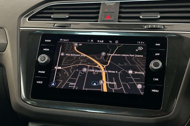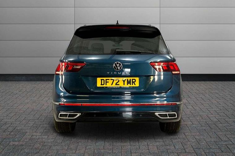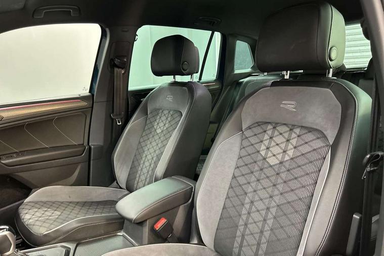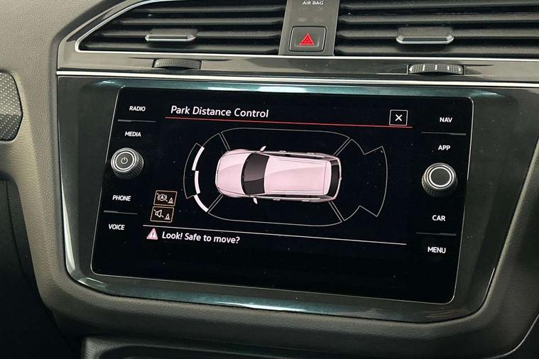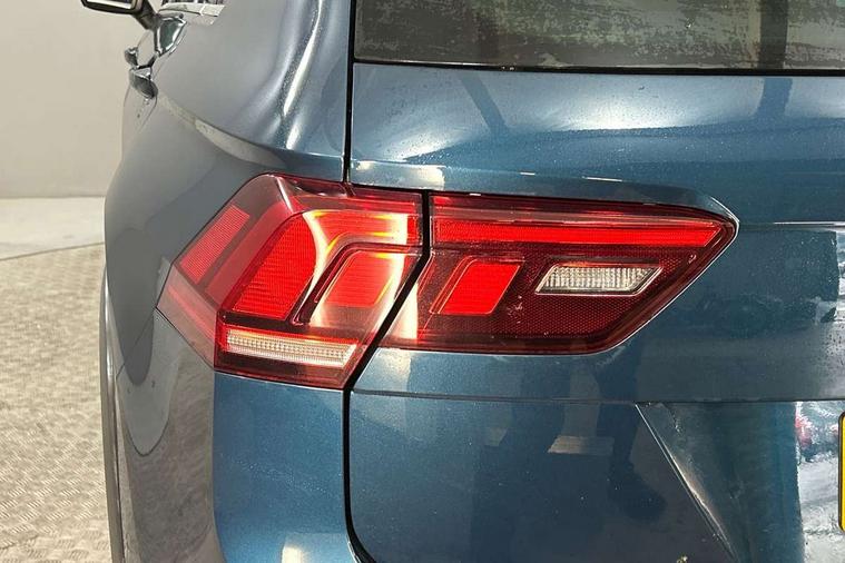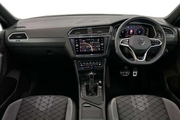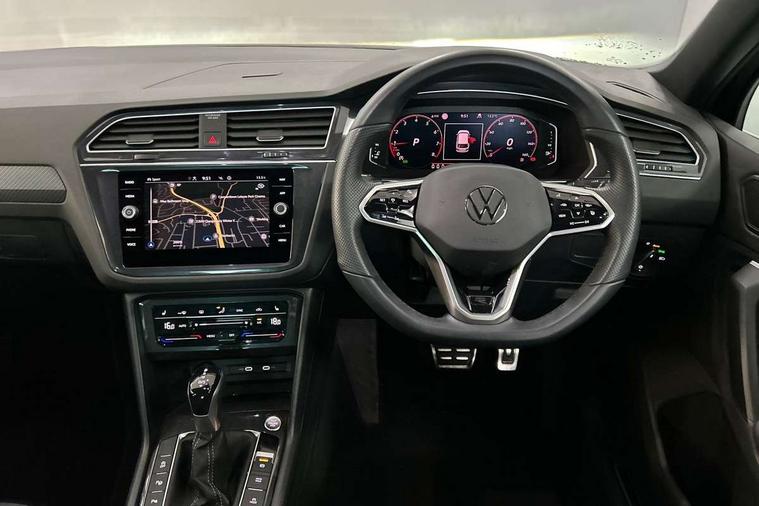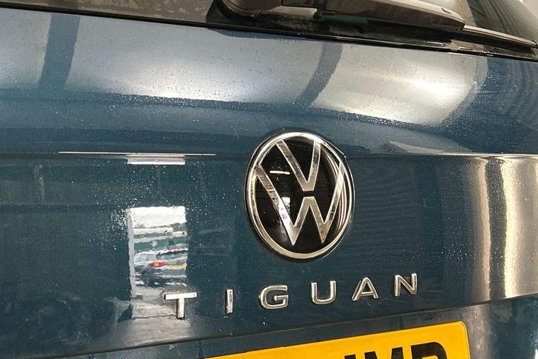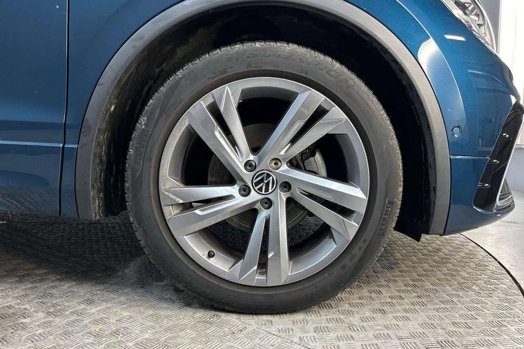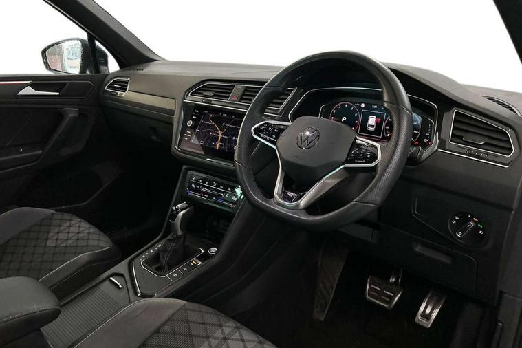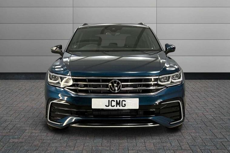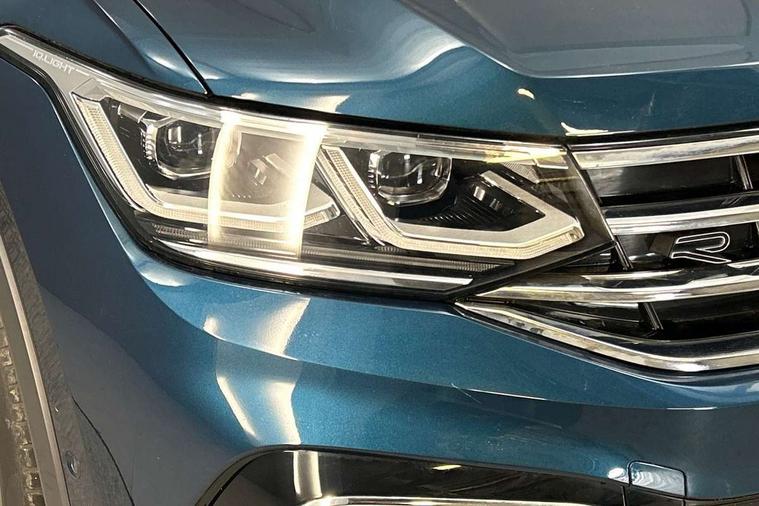 Adaptive cruise control ACC stop and go including speed limiter, App-Connect incl. App-Connect Wireless for Apple CarPlay and Android Auto, Bluetooth phone integration system, Comfort drive travel assist, Digital cockpit pro, Driver alert system, Driver profile selection, Dynamic road sign display, eCall emergency call system, Electromechanical speed sensitive power steering, Emergency assist, Front and rear parking distance sensors, Instrument cluster mph speedometer Great Britain, Lane keeping system Lane Assist, Lights on warning, Multifunction front facing camera, Outside temperature display, Premium multifunction display with multi colour display, Preparation for subsequent activation Navigation feature Discover Media includes Streaming and Internet, Remote control boot opening, Rev counter, Service interval indicator, Speed limit display, Start/stop system with regenerative braking, Tailgate/trunk lid unlocking from outside, Trip computer, Warning sound and light for doors and tailgate open, Battery regeneration during braking, Sports suspension, 8 Speakers, Digital radio reception DAB+, Diversity antenna for FM reception, Radio, Auto dimming interior rear view mirror, Automatic headlight control system, Body colored bumpers in R-Line style, Body colored exterior mirror housings, Body colour door handles, Chrome moldings on the side windows, Coming/leaving home lighting function, Dynamic headlight range control, Front and rear electric windows, Heated rear window, High level 3rd brake light, Laminated safety glass windshield, heat and sound insulating, LED headlamps with LED separate daytime running light and dynamic cornering light, LED rear combination lamps, LED rear number plate lights, License plate carrier in front and rear, Poor weather light and cornering light, Power adjustable, folding and heated door mirrors with surround lighting, front passenger exterior mirror lowering function, Privacy glass for rear side windows and rear window, R Line body kit, R Line side sills, Rain sensor, Rear exhaust tailpipe, Rear fog lamp, Rear side wing doors, Rear spoiler in R style, Rear windscreen washer and wiper with interval delay, Side and rear windows in heat insulating glass, Trailer Stability Programme, Unique R Line badging, Windscreen wipers/ intermittent wipe + 4 position delay, 12V outlet in center console rear and in luggage compartment, 12V outlet in front and tray, 2 LED front reading lights, 2 LED rear reading lights, 3 bench rear seats in 2nd row, 3 rear headrests, Air Care Climatronic 3 zone automatic climate control with enhanced air filter and controls in the rear, Art Velours greyson sports cloth upholstery, Backrest release for left front seat, Black headlining, Brushed stainless steel pedals and footrest, Carpet mats in front and rear with decorative stitching in Gray, Climate control unit rear with touch function, Door and side trim panel in foam film, insert in leatherette, Driver + front passenger lumbar support, Front footwell illumination, Front scuff plates in aluminum with R-Line logo, Front seats head restraints (x-adjustment), Height adjustable front seats, Height/reach adjust steering wheel, Isofix Preparation 2 Rear child seats, Leather gear knob, Rear bench seat asymetrically split folding, longitudinally movable and folding with load-through hatch and center armrest, Remote unlocking for rear seat backrest, Single front passenger seat, Sun visors with illuminated vanity mirrors, Top front comfort seats, Winter pack - Tiguan, 3 point seat belt for centre rear seats, 3 point seat belts with seat belt pretensioners for the outer rear seats, Curtain airbags for front and rear passengers, Driver/Front Passenger airbags, Drivers knee airbag, Electronic parking brake with auto hold, Electronic Stability Control with driver steering recommendation, ABS, ASR, EDL, EDTC and trailer stabilization, Front assist with autonomous emergency braking (for Adaptive Cruise Control ACC up to 130 mph), Front disc brakes, Front passenger airbag deactivation, Front side airbags, Height adjustable front 3 point seatbelts + pretensioners, Manual child proof rear door locks, Pedestrian monitoring system, Proactive passenger protection system in combination with front assist, Rear disc brakes, Two tone horn, Tyre pressure loss indicator, Warning sound and light for front seat belts if unfastened, Warning triangle, Anti theft alarm system with interior monitoring, backup horn and towing protection, Anti theft wheel bolts, Electronic engine immobiliser, Keyless locking and starting system keyless access with safelock, Chrome elements on the mirror switch power window switches and door pulls, Decorative inserts Carbon Gray for dashboard and front door trim panels, Interior door handle in matte chrome, 19" Valencia alloy wheels with AirStop tyres, Tool kit, Tyre mobility kit Includes 12V compressor and tyre sealant,