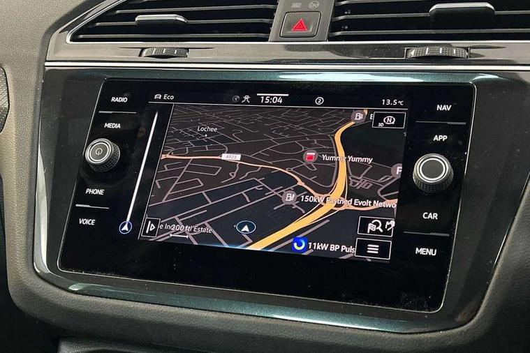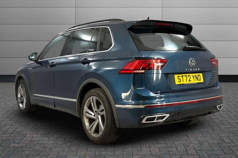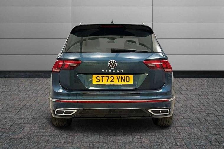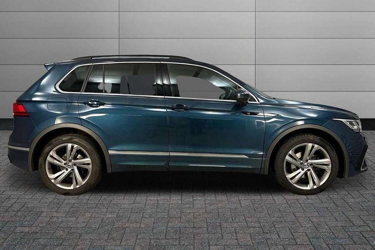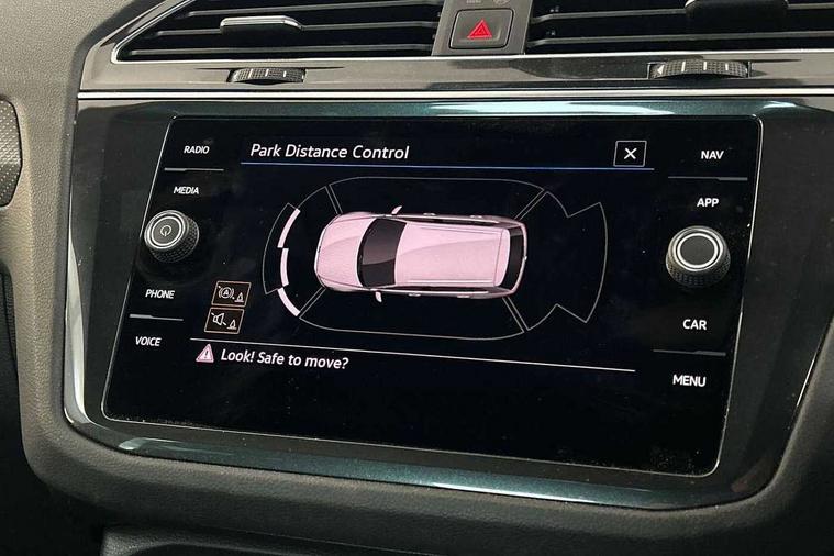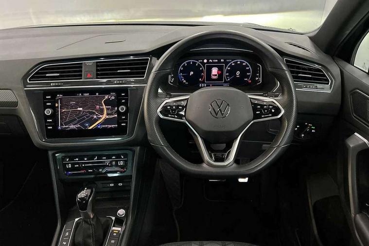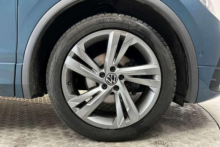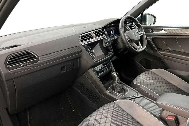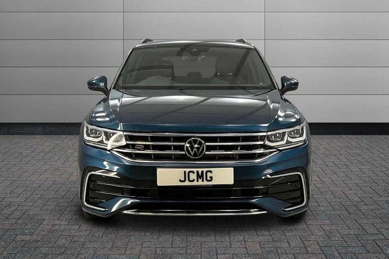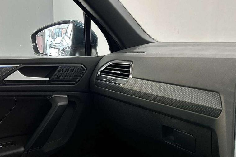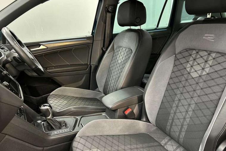 Adaptive cruise control ACC stop and go including speed limiter, App-Connect incl. App-Connect Wireless for Apple CarPlay and Android Auto, Bluetooth phone integration system, Comfort drive travel assist, Digital cockpit pro, Driver alert system, Driver profile selection, Dynamic road sign display, eCall emergency call system, Electromechanical speed sensitive power steering, Emergency assist, Front and rear parking distance sensors, Instrument cluster mph speedometer Great Britain, Lane keeping system Lane Assist, Lights on warning, Multifunction front facing camera, Outside temperature display, Premium multifunction display with multi colour display, Preparation for subsequent activation Navigation feature Discover Media includes Streaming and Internet, Remote control boot opening, Rev counter, Service interval indicator, Speed limit display, Start/stop system with regenerative braking, Tailgate/trunk lid unlocking from outside, Trip computer, Warning sound and light for doors and tailgate open, Battery regeneration during braking, Sports suspension, 8 Speakers, Digital radio reception DAB+, Diversity antenna for FM reception, Radio, Auto dimming interior rear view mirror, Automatic headlight control system, Body colored bumpers in R-Line style, Body colored exterior mirror housings, Body colour door handles, Chrome moldings on the side windows, Coming/leaving home lighting function, Dynamic headlight range control, Front and rear electric windows, Heated rear window, High level 3rd brake light, Laminated safety glass windshield, heat and sound insulating, LED headlamps with LED separate daytime running light and dynamic cornering light, LED rear combination lamps, LED rear number plate lights, License plate carrier in front and rear, Poor weather light and cornering light, Power adjustable, folding and heated door mirrors with surround lighting, front passenger exterior mirror lowering function, Privacy glass for rear side windows and rear window, R Line body kit, R Line side sills, Rain sensor, Rear exhaust tailpipe, Rear fog lamp, Rear side wing doors, Rear spoiler in R style, Rear windscreen washer and wiper with interval delay, Side and rear windows in heat insulating glass, Trailer Stability Programme, Unique R Line badging, Windscreen wipers/ intermittent wipe + 4 position delay, 12V outlet in center console rear and in luggage compartment, 12V outlet in front and tray, 2 LED front reading lights, 2 LED rear reading lights, 3 bench rear seats in 2nd row, 3 rear headrests, Air Care Climatronic 3 zone automatic climate control with enhanced air filter and controls in the rear, Art Velours greyson sports cloth upholstery, Backrest release for left front seat, Black headlining, Brushed stainless steel pedals and footrest, Carpet mats in front and rear with decorative stitching in Gray, Climate control unit rear with touch function, Door and side trim panel in foam film, insert in leatherette, Driver + front passenger lumbar support, Front footwell illumination, Front scuff plates in aluminum with R-Line logo, Front seats head restraints (x-adjustment), Height adjustable front seats, Height/reach adjust steering wheel, Isofix Preparation 2 Rear child seats, Leather gear knob, Rear bench seat asymetrically split folding, longitudinally movable and folding with load-through hatch and center armrest, Remote unlocking for rear seat backrest, Single front passenger seat, Sun visors with illuminated vanity mirrors, Top front comfort seats, Winter pack - Tiguan, 3 point seat belt for centre rear seats, 3 point seat belts with seat belt pretensioners for the outer rear seats, Curtain airbags for front and rear passengers, Driver/Front Passenger airbags, Drivers knee airbag, Electronic parking brake with auto hold, Electronic Stability Control with driver steering recommendation, ABS, ASR, EDL, EDTC and trailer stabilization, Front assist with autonomous emergency braking (for Adaptive Cruise Control ACC up to 130 mph), Front disc brakes, Front passenger airbag deactivation, Front side airbags, Height adjustable front 3 point seatbelts + pretensioners, Manual child proof rear door locks, Pedestrian monitoring system, Proactive passenger protection system in combination with front assist, Rear disc brakes, Two tone horn, Tyre pressure loss indicator, Warning sound and light for front seat belts if unfastened, Warning triangle, Anti theft alarm system with interior monitoring, backup horn and towing protection, Anti theft wheel bolts, Electronic engine immobiliser, Keyless locking and starting system keyless access with safelock, Chrome elements on the mirror switch power window switches and door pulls, Decorative inserts Carbon Gray for dashboard and front door trim panels, Interior door handle in matte chrome, 19" Valencia alloy wheels with AirStop tyres, Tool kit, Tyre mobility kit Includes 12V compressor and tyre sealant,