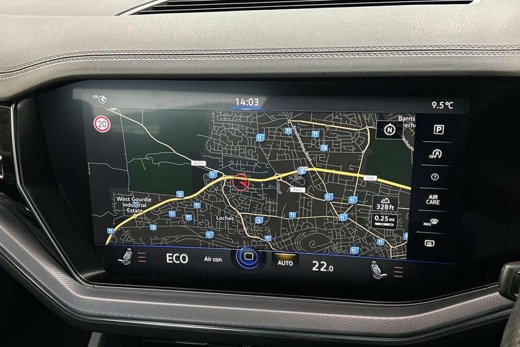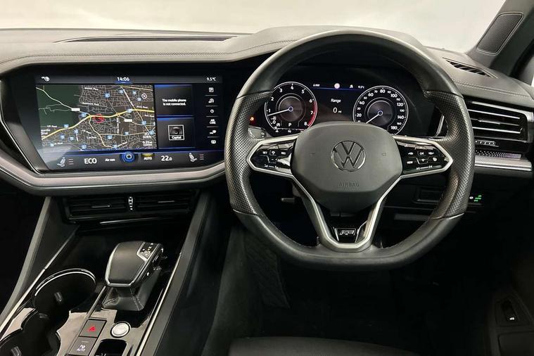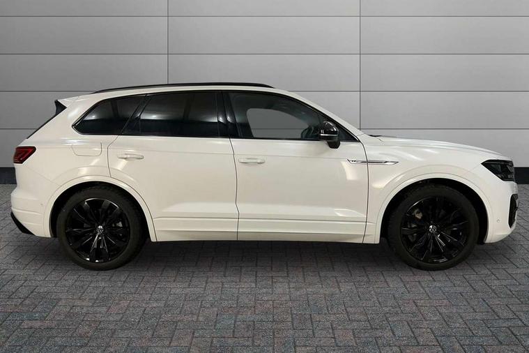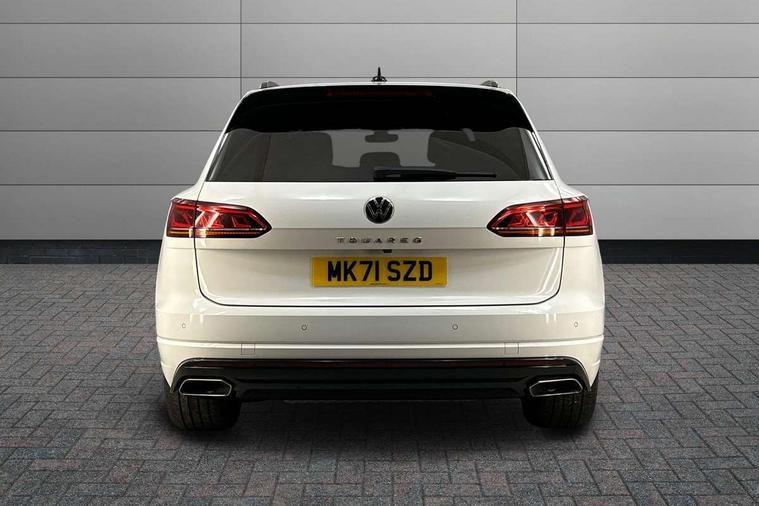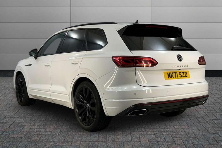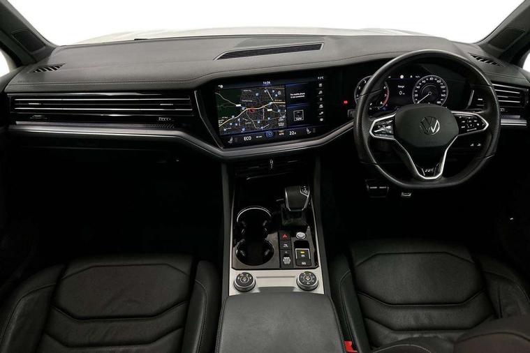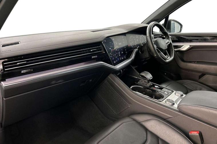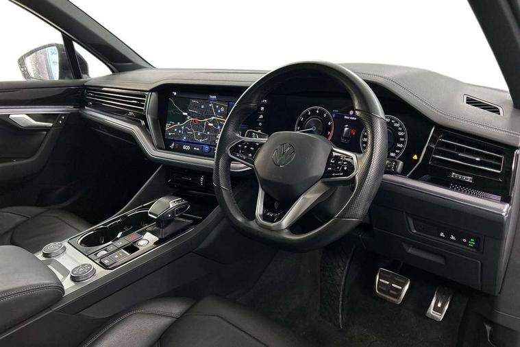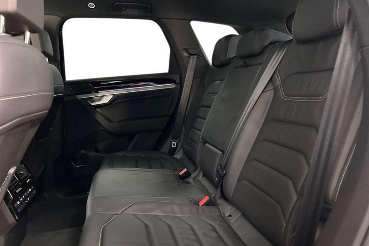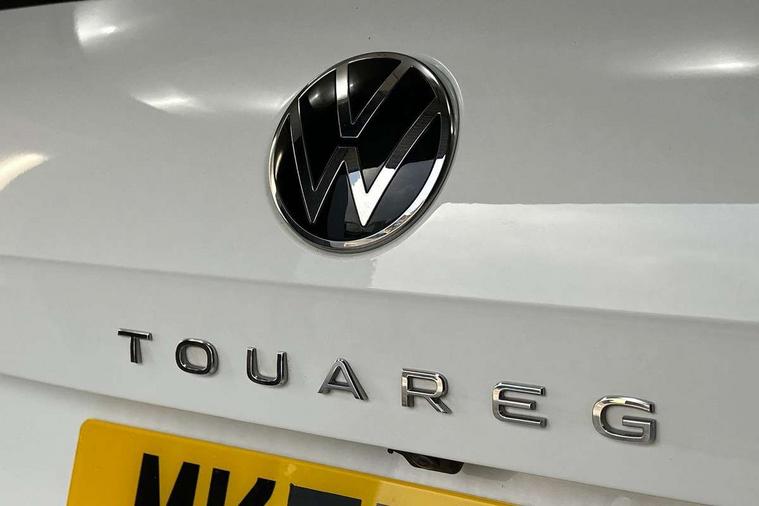 2D/3D map view, ACC - Adaptive cruise control with front assist, forward collision warning, distance monitoring, city emergency brake and speed limiter, Apple car play/Android Auto, Audible and visual fatigue detection system, Bluetooth hands free telephone connection, Car information display, Drive select with Damper control, Driver alert system, Dynamic road sign display camera controlled system with visual warning for traffic and road signs, eCall emergency system, Fully electric tailgate + keyless entry and start, Instrument cluster, MirrorLink, Multifunction camera with lane assist, Multifunction computer premium with 7" colour display, One touch indicators with repeat function, Service interval indicator, Speed sensitive power steering, Start/stop system with regenerative braking, Tailgate power latch, Think blue trainer driver tips and journey analysis, Traffic sign recognition, Voice control system, Wireless Smartphone charger, Torsen limited slip differential, DAB Digital radio, Dynamic navigation based on TMC+, Gesture control for infotainment system, Multi device interface (MDI) with illuminated USB-C connection, Music playback - MP3, WMA and AAC files, SD card slot, Simultaneous pairing of 2 compatible mobile devices, SMS functionality - read, compose and send SMS messages using touch-screen display, Title and cover art display, Volkswagen media control, Adaptive low beam for urban and motorway use, Auto dimming rear view mirror, Automatic coming/leaving home lighting function, Automatic headlights, Black anodised roof rails, Black door mirrors, Black rear diffuser, Black side window surrounds, Black upper and lower grille louvres extending into headlights and radiator grille, Body colour door handles, Body coloured wheel arches, C signature gloss black front air intake, Chromed tailpipe on the left and right integrated in the bumper with trapezoid design, Dusk sensor, Dynamic headlight range control, Electric front tilt/slide panoramic sunroof and fixed rear sunroof, Electrically power adjustable, heated, folding, auto dimming, front passenger exterior door mirror lowering function, Front and rear electric windows, Galvanised body, Gloss black finish B pillar, Gloss black rear diffuser, Headlight washers, Heat insulating darkened glass in side and rear windows, Heated windscreen washer jets, IQ.Light-LED matrix headlight, daytime running light with dynamic cornering light and indicator, LED rear fog light, LED rear number plate lights, Plastic scuff plates in door apertures, Poor weather light, Puddle lights, Rain sensor, Rear wiper, 12V socket in front and rear centre console and boot, 2 Coat hooks on B pillar, 3 rear head restraints, 3 spoke sport heated leather multi-function sports steering wheel with gear shift paddles - generation 2, 4 way adjustable front head restraints, 4 way electric lumbar support for driver and front passenger, 4 zone climate control, 40:20:40 split folding slide/recline rear seat, B pillar vents, Black lower edge of door extending sills, Branded points of interest, Double sun visor for drivier and passenger with LED illuminated vanity mirrors, Electric luggage compartment cover, Folding rear centre armrest with 2 cupholders, Front + rear carpet mats, Front centre armrest with storage box, Gear shift indicator, Height/reach adjust steering wheel, Illuminated air conditioned glovebox, Isofix preparation for 2 rear child seats, Jack and tool kit, Leather trimmed gear knob with gloss black inlay/aluminum trim, Leatherette door trim, LED luggage compartment lighting, Load through provision, Luggage compartment with load lashing rings, Plastic loading edge protection, Rear seat remote release levers, Soul black headlining, Stainless steel pedals, Innovision cockpit pack - Touareg, 3 point front seatbelts with pre-tensioners, ABS, Active bonnet, Automatic post collision braking system, Curtain airbags, Driver/Front Passenger airbags, EBD + Brake Assist, EDL, Electronic parking brake with auto hold, ESC with ASR, Front seat side impact airbags, Hill descent control, Hill start assist, Passenger airbag deactivate switch, Seatbelt warning lamp and buzzer, Three 3 point rear seatbelts, Two tone horn, Volkswagen roadside assistance, Warning triangle and first aid kit, Alarm with interior monitoring in cab, backup horn and towing protection, Child security locks for front and rear doors, Electronic engine immobiliser, Remote central locking, Black decorative trims on the side windows, High gloss black centre console,