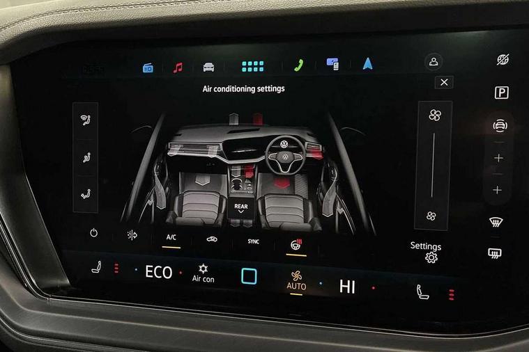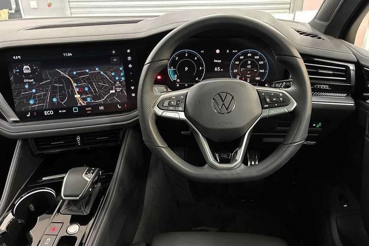 15" Screen Top infotainment system Premium (MIB3), Adaptive cruise control, Advanced driver attention and drowsiness monitor, Driver profile selection, Dynamic road sign display, E-Sim card for online connectivity, eCall emergency system, Innovision cockpit, Intelligent park assist, Mobile phone interface with inductive charging, Multi-colour Active Info display, Park Assist - Sensor controlled steering aid to assist parallel or bay parking, PAS, Warning signal and warning light for front and rear seatbelts not fastened, Wireless app connect, Adaptive chassis control, DAB Digital radio, Diversity antenna for AM/ FM reception, We Connect and We Connect Plus functionality, Automatic coming/leaving home lighting function, Automatic headlights, Black door mirrors, Black style comfort bumpers, Dynamic headlight range control with dynamic cornering light, Electric front tilt/slide panoramic sunroof and fixed rear sunroof, Electrically power adjustable, heated, folding, auto dimming, front passenger exterior door mirror lowering function, External USB type C socket and charging sockets, Gloss black roof rails, HD LED Matrix beam plus digital headlight projection with variable light distribution, Headlight washers, Highway light, LED 3rd brake light, LED daytime running lights, LED rear combination lamp with variable lighting functions and special styling, Poor weather light, Rain sensor, Rear exhaust tailpipe, Rear fog light with back up light on both sides, Rear light bar and illuminated logo, Rear side wing doors, Rear wiper, Stainless steel door sill protection, 12V socket in centre console, 3 rear headrests, 3 seat bench in 2nd row, 4 zone climate control, Airbag label on sun visor and B-pillar, Brushed stainless steel pedals, Double sun visors with illuminated vanity mirrors, Front + rear carpet mats, Front centre armrest, Leather wrapped multifunction sports steering wheel, heated, with touch control and shift paddles, Mechanical rear seat release, Power adjustable lumbar support in front, Power seats in front, right side with memory features and seat cushion depth adjustment, Rear seat backrest and split folding with center armrest, Single front passenger seat, Memory pack plus - Touareg, 3 point seatbelts, outer rear with ECE lable, ABS, Child locks on rear doors, Curtain airbags, Driver and front passenger safety-optimised head restraints, Driver/Front Passenger airbags, Extended pedestrian protection measures, Front assist, Front seat side impact airbags, Generative braking with start and stop system, Height adjustable 3 point front seatbelts with pre tensioners, Passenger airbag deactivate switch, Three 3 point rear seatbelts, Two tone horn, Warning triangle and first aid kit, Alarm system with interior protection, Easy open and close sensor controlled luggage compartment opening and closing with remote unlocking, Keyless Access Keyless locking and starting system with SAFELOCK, Aluminium decorative inserts, Black decorative trims, Gloss black decorative inserts in centre console, Tool kit,