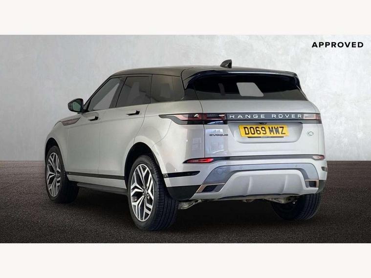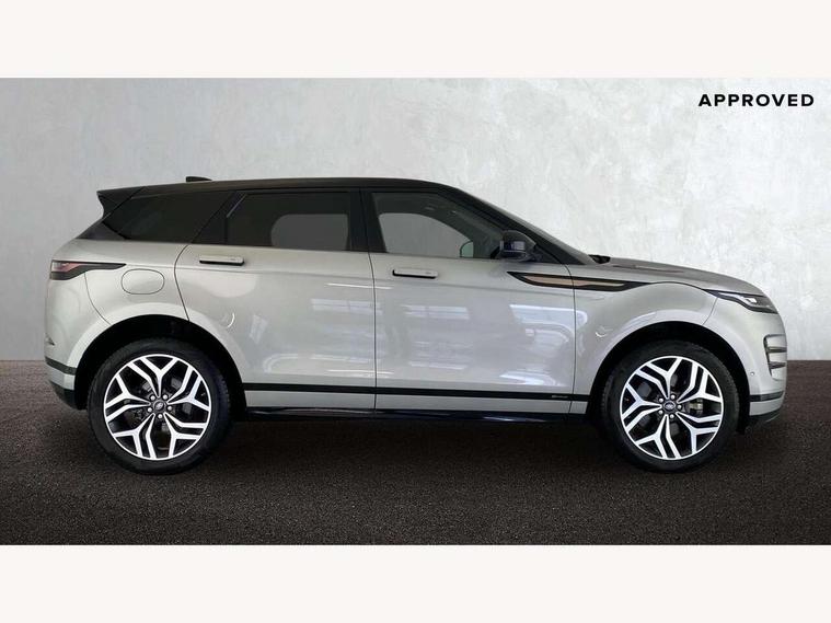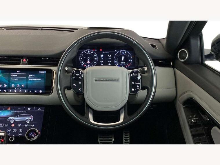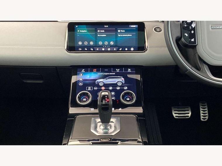 360 degree parking aid, Adaptive cruise control, Android Auto, Apple car play, Blind spot assist, Bluetooth connectivity, Brake pad wear indicator warning light, Clear exit monitor, Driver condition monitor, Duo touch pro, Electronic power assisted steering (EPAS), Head up Display, InControl remote, Interactive Driver display instrument cluster, Land Rover InControl apps, Lane keep assist, Navigation pro system, Park assist - Parallel, perpendicular and parking exit, Powered tailgate/boot lid, Pro services and wifi hotspot, Push button starter, Rear traffic monitor, Rear view camera, Smart settings, Traffic sign recognition with adaptive speed limiter, Voice control system, All terrain progress control, Efficient Driveline, Large fuel tank, Passive suspension, Terrain Response 2 Auto, Digital Audio Broadcast radio-DAB, Meridian sound system with 380W subwoofer and 10 speakers, Steering wheel mounted controls, Automatic headlight levelling, ClearSight interior rear view mirror, Electric windows with one touch open/close and anti trap, Evoque and R-Dynamic badge, Fixed panoramic sunroof with powered sunblind, Flush deployable exterior door handles, Front fog lights, Headlight power wash, Heated rear window with timer, Heated washer jets, Heated windscreen, Illuminated metal treadplates in loadspace and row 1 with First Edition script and non illuminated metal in row 2, Matrix LED headlights with signature DRL, intelligent high beam assist, signature Hi-Line tail lights and animated directional indicators, Metallic paint, Narvik black contrast roof with exterior mirror caps, Power fold, auto-dimming, heated door mirrors with memory and approach lights, Privacy glass, Rain sensing windscreen wipers, Rear fog lights, Shadow atlas bonnet and tailgate script, Tailgate spoiler, 14 way electric heated front seats with memory, fore/aft, recline/height/tilt, 4way lumbar + manual headrest adj with rear centre armrest, 40:20:40 split folding rear seats, Black gearshift paddles, Bright metal pedals, Configurable Ambient interior lighting, Duo-tone grained leather upholstery, Ebony morzine headlining, Electrically adjustable steering column with memory, Extended leather upgrade, First Edition carpet mats, Heated steering wheel, Isofix system on outer rear seats, Overhead lighting console, Overhead stowage for sunglasses, Passive front head restraints, Perforated soft grain leather steering wheel with Atlas bezel, Rear air vents, Rear centre headrest, Sunvisors with illuminated vanity mirrors, Twin front cupholders with cover, Twin sliding front centre armrest, Two zone climate control, Power socket pack 1 - Evoque, R-Dynamic exterior pack - Evoque, 3 rear 3 point seatbelts, Anti-lock braking system (ABS), Customer configurable autolock, DSC - Dynamic Stability Control, Electronic brake force distribution, Electronic parking brake, Electronic traction control, Front and rear seatbelt reminder, High speed emergency braking, Hill descent control, Hill launch assist, Low traction launch, Power operated child locks, Roll stability control, Six airbags - Driver and passenger airbags/driver knee airbag/front side airbag and curtain airbags, Torque vectoring brake, Tyre pressure monitoring system, Alarm, Immobiliser, Intrusion sensor, Keyless entry, Locking wheel nuts, Gradated linear dark aluminium trim finisher with First Edition script, All season tyres, Tyre repair kit,