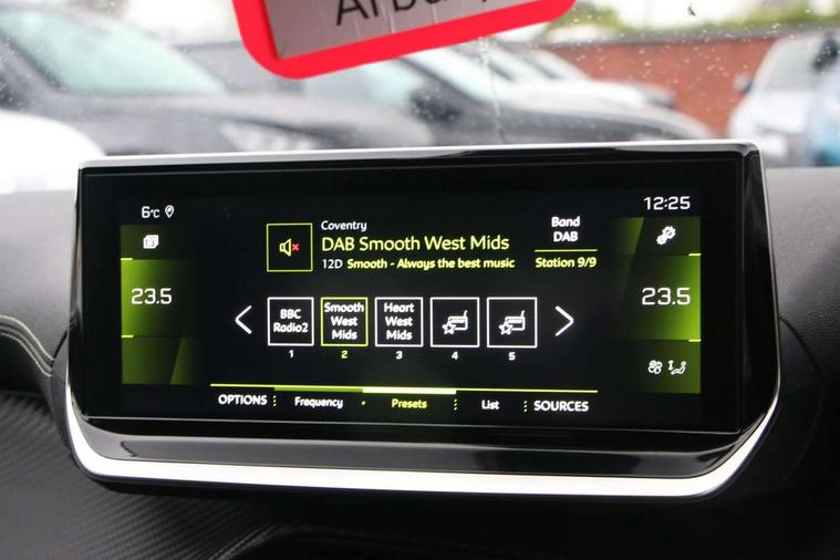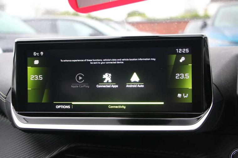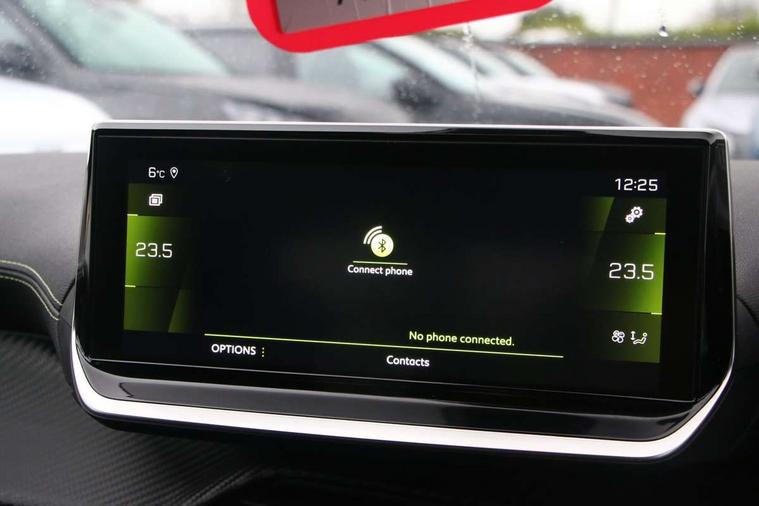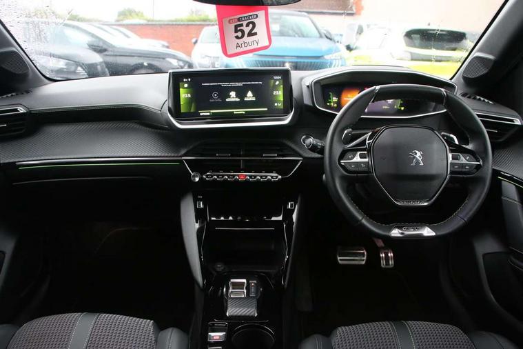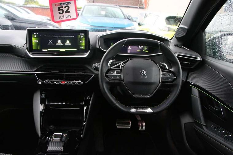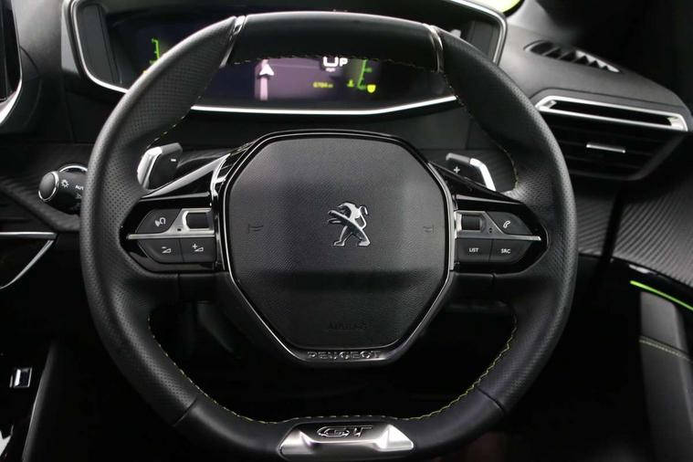 10" Capacitive colour touchscreen with connected 3D navigation, Bluetooth telephone facility, Driver attention warning, e-Toggle driving selector, Exterior temperature indicator with ice warning, Mirror screen with mirror link, apple carplay and android auto, Multi function trip computer, PEUGEOT i-Cockpit with compact steering wheel, PEUGEOT i-Cockpit with configurable 3D headup instrument panel, PEUGEOT SOS and assistance, Push button start, Smart phone docking station, Speed limit recognition and recommendation, Start/stop system, Visio park assist 180 with colour reversing camera + front and rear parking sensor, 2 front USB socket with USB-C, 2x USB sockets in rear, 6 speakers radio with mp3 compatible, DAB Digital radio, Voice recognition for radio, navigation and telephony features, 2 X Rear number plate lights, Automatic hazard light activation upon heavy brake application, Automatic lights, Automatic windscreen wipers, Body coloured exterior door handles, Dark tinted rear side and tailgate windows, Diamond Black roof, Electric front windows + one touch + anti-pinch, Electric rear windows with one touch/anti-pinch, Electrically adjustable, heated and power folding door mirrors, Extended diamond black rear spoiler, Follow me home headlights, Frameless electrochrome interior rear view mirror, Full LED headlights with smartbeam assist, Gloss black finish on B pillar, Gloss black rear cluster connecting strip, Gloss black wheel arch extensions, Gloss black window surround, GT model designation badging on C pillar, GT model designation badging on tailgate, Headlights left on audible warning, LED daytime running lights with 3 claw headlight with distinctive tooth design, LED side indicator lights integrated into door mirrors, LED third brake light, Model designation badges front and rear, Nera black door mirror shells, Peugeot scuff plates, Radiator grille - Dark chrome chequered and gloss black edge trim, Rear bumper with gloss black finish, Rear full LED 3D peugeot signature claw effect lights with daylight function, Rear lower bumper diffuser effect trim in gloss black, Rear reversing lights, Rear side wing doors, Rear windscreen wiper triggered automatically in reverse gear, Roof mounted aerial with fin design, Roof spoiler, Tailgate with heated rear windscreen and wiper blade, Twin chrome exhaust tailpipes, Variable front intermittent wipers, 1/3 to 2/3 split folding rear seats, 12V socket, 3 seat bench in 2nd row, 8 Colour personalisable ambient lighting, Aluminium pedals and foot rest, Automatic air conditioning, Automatic gear lever in full grain leather and satin chrome, Driver and front passenger seat manual adjustment in longitudinal and back rest angle, Driver and front passenger seat mechanical height adjustment, Driver and front passenger sport seats, Electric power steering with reach and rake adjustable steering column, Front and rear carpet mats in black with lime green stitch detail, Front centre armrest with storage compartment, Front LED interior light with 2 reading spotlights and rear interior light with timer, High centre console with 2 cup holders, ISOFIX child seat mounting points on passenger seat, Lime green contrast stitching to armrest, front centre console, door panels and dashboard facia, Map pockets on the backs of the front seats, Mistral full grain perforated leather steering wheel with aikinite stitch detail and satin chrome 'GT' emblem, Paddle shifts, Piano keys gloss black plated toggle switches to access main functions of the vehicle, Piano keys gloss black plated toggle switches to access touchscreen functions, Push button finished in black with chrome circle, Rear centre headrest, Roof lining - Mistral black, Seatbelt unfastened on the move audible and visual alert for front and rear seats, Single front passenger seat, 3 rear 3 point seatbelts, ABS (Anti-lock Braking System) with EBD (Electronic Brakeforce Distribution) and EBA (Emergency Braking Assistance), Active safety brake with night function/cyclists/pedestrians, Adaptive driver and front passenger airbags with passenger airbag deactivation function, Child locking functionality on rear doors, Driver/front passenger side airbags, Electric parking brake, ESP with Hill Assist, Front and rear curtain airbags, Front and rear disc brakes, Front optimised safety headrests and 3 x rear retractable headrests with height adjustable, Front three point retractable seatbelts with force limiters, Tyre pressure sensor, Acoustic vehicle alert system (AVAS), Automatic door locking when moving off, Deadlock, Electronic code immobiliser, Remote central locking, Thatcham cat. 1 alarm with anti lift sensor, Carbon effect Dashboard, front and rear door panel finish, 17" Bronx two-tone alloy wheels, Space saver spare wheel,