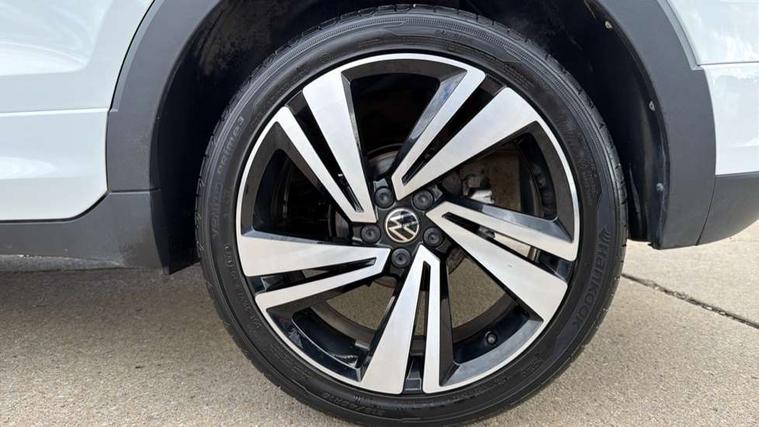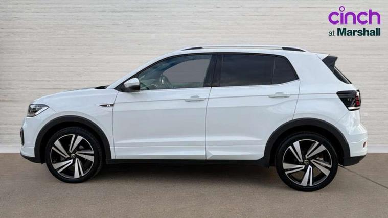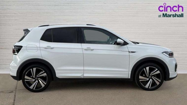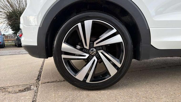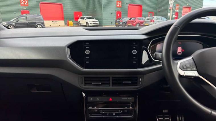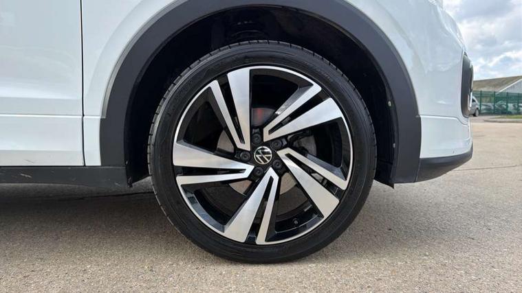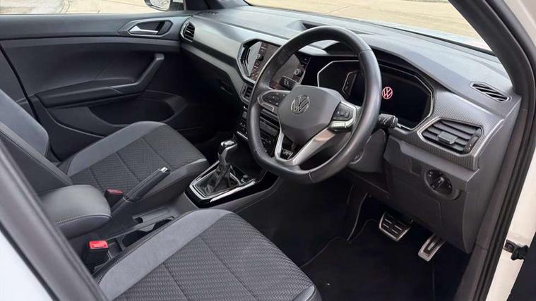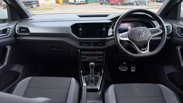 'Lights On' Reminder warning buzzer, 2D/3D map view, Active info display - 10.25" High resolution TFT dash display screen, Adaptive cruise control including front assist, forward collision warning, autonomous emergency braking, speed limiter, Blind spot monitoring, Bluetooth telephone and audio connection for compatible devices, Car information display, Driver alert system, eCall emergency call system, Lane assist, Low washer fluid warning light, Multifunction computer with visual gear change recommendation for fuel consumption, Operating permit alteration, Power assisted speed sensitive steering, Speed limit display, Speedo, rev counter, electronic odometer, trip, service interval display, exterior temperature and fuel gauge, Stop/start system, Tailgate, Warning sound and light for doors and tailgate open, Warning sound and light for front seatbelts unfastened, We connect plus preparation, Wireless Car net app connect with Apple CarPlay, combined functionality of Apple CarPlay/Android Auto and MirrorLink, Battery regeneration during braking, Misfuel prevention device, 2x USB connection with USB charging sockets and in rear centre console, DAB Digital radio receiver, Diversity antenna for FM reception, Multi device interface (MDI) with USB connection, Music playback - MP3, WMA and AAC files, Premium USB cable for Apple or Android smartphone compatibility, Simultaneous pairing of 2 compatible mobile devices, SMS Functionality, Three route options - Fast, Short, Eco, Title and cover art display, Automatic hazard lights activation under emergency braking, Body colour door handles, Body colour door mirrors with integrated indicators, Body colour rear roof spoiler, Body coloured bumpers, Dusk sensor + automatic driving lights, Electrically foldable, adjustable and heated door mirrors with reverse activated kerb view adjustment on passenger's side, Front and rear electric windows, Front fog lights with static cornering function, Galvanised body, Heated rear window, LED third brake light, Lower door sills and door pillars in black, Radiator grille with chrome trim and chrome bezel front fog lamp, Rear fog light on one side, reversing light on both sides, Rear lights incorporating LED technology, Rear side wing doors, Rear tinted glass 65% approx light absorbing from B pillar backwards, Rear window aerial, Rear windscreen washer and wiper with interval delay, Reflectors in all doors, Silver roof rails, Stainless steel door sill protection, Tailgate with integrated roof spoiler, Unique R Line badging, Windscreen wipers/ intermittent wipe + 4 position delay, 12V Accessory socket in centre console, 2 Front and rear reading lights incorporating LED technology, 2 Zone electronic climate control with automatic air recirculation, 3 rear head restraints and 3 rear three point seat belts with ECE label, 3 seat bench in 2nd row, 60/40 split folding rear seat backrest, Ambient lighting and sourround lighting, Black headlining, Branded points of interest, Brushed stainless steel pedals, Carbon flag cloth upholstery, Drawer under drivers seat, Driver and front passenger sunvisor with vanity mirror, Driver's sunvisor with ticket holder, Dust and pollen filter, Front and rear carpet mats with contrast stitching, Front centre armrest with storage compartment, Front footwell illumination, Front seat back storage pockets, Front seat R Line logo with rear seat backrest, Front sports seat with height and lumbar adjustment, Glovebox, Heating and fresh air system with 4 stage blower, Height/reach adjust steering wheel, Instrument lighting white adjustable panel illumination, Interior light with delay, Isofix child seat preparation for 2 rear child seats, Leather trimmed three spoke multifunction steering wheel with contrast stitching and aluminium inserts with R Line logo, Luggage compartment cover, Luggage compartment lighting, Moveable and foldable Rear bench seat, Scuff plates in door apertures, Steering wheel paddle shift, Storage compartment in drivers and front passengers door, R Line styling pack - T-cross, 3-point seat belts in front with electric tensioner + height adjustment, Anti-lock Braking System (ABS) with Hydraulic Brake Assist (HBA), Automatic post collision braking system, Driver and front passenger safety-optimised head restraints, Drivers and Front Passengers airbags with front passengers airbag deactivation switch, ESC with EDL, ASR, EDTC and trailer stabilisation function, Front and rear curtain airbags, Front seat side impact airbags, Hill start assist, Pre crash preventive occupant protection, Proactive passenger protection system in combination with front assist, Rear door child safety locks, Rigid safety cell with front and rear crumple zones, Single torn horn, Tyre pressure loss indicator, Volkswagen roadside assistance, Alarm with interior protection and deactivation via infotainment system, Child security locks in rear doors, Electronic engine immobiliser, Remote tailgate unlocking using key fob, Race decorative inserts in dash and doors, 18" Nevada black alloy wheels, Breakdown kit,