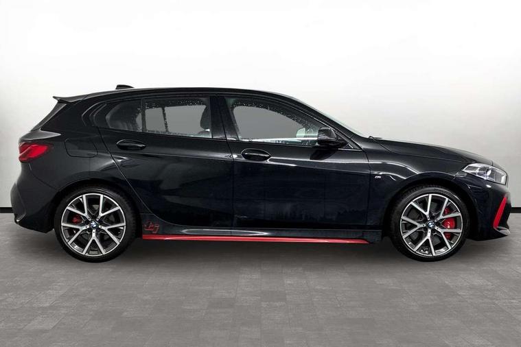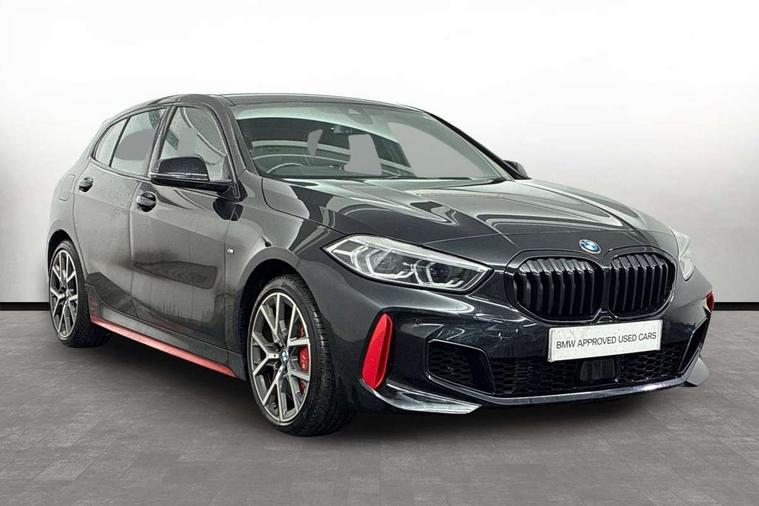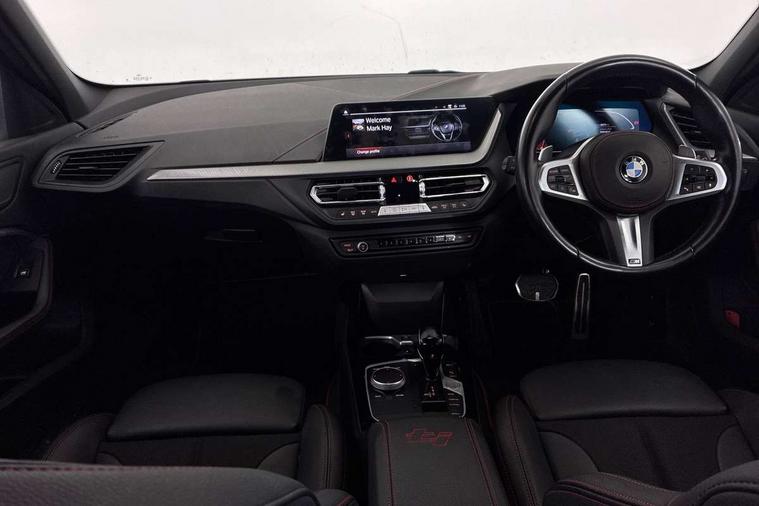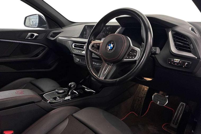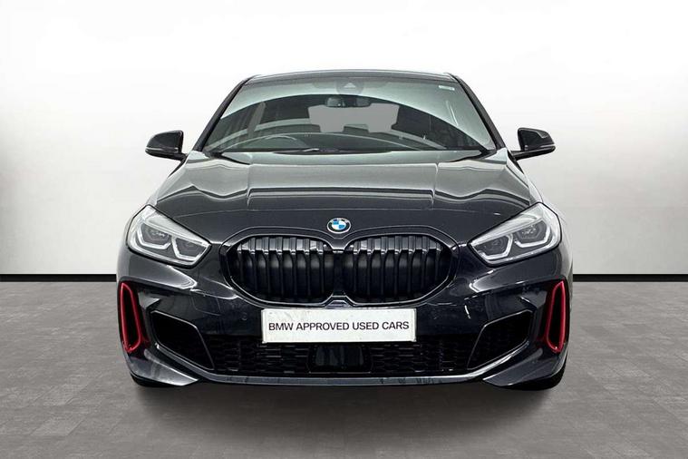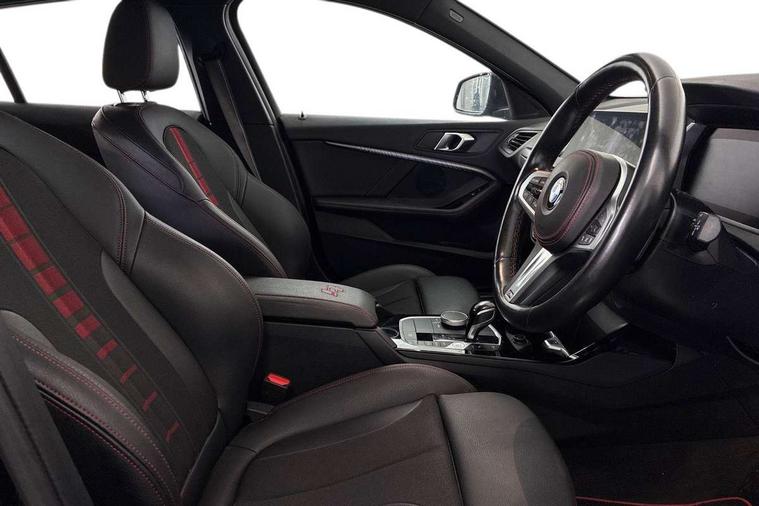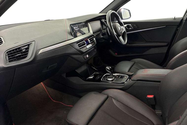 Active guard plus, Attentiveness assist, BMW ConnectedDrive online services, BMW Teleservices, Check Control warning system for monitoring of lights and door/luggage compartment open warning, Cruise control with speed limiter, Eco pro mode, Electric power steering with Servotronic steering optimised at all speed ranges, Front axle single joint with specific axle kinematics to minimise drive influences on steering + provide increased rigidity agile driving behaviour, Integrated owners handbook, Lane departure warning system, Oil sensor for level and grade, On board computer, Optimum shift indicator, Personal Profile, Pull away assistant, Rigidly mounted rear subframe - Multi link construction with separate spring / damper configuration and excellent driving characteristics, Speed limit Info including no-overtaking indicator, Aluminium lightweight construction, Anti roll bar front and rear, Balancer shaft, Double VANOS twin scroll turbocharging system, Drive Performance Control, Eight speed sport automatic transmission with gearshift paddle switches, Electronic differential lock, High precision injection, Larger fuel tank capacity (50 litres), M sport suspension with M128i xDrive specific settings, Petrol Particulate Filter, Twin tube gas filled shock absorbers with degressive characteristic curve, VALVETRONIC engine management, DAB Digital radio, Auto dimming rear view mirror, Automatic headlight beam throw control, Automatic windscreen wipers and automatic headlight, Black chrome tailpipe finishers, BMW individual high gloss shadow line with extended content, Body colour door handles, Body colour mirror caps, Body colour roof trims, Chrome 'M' logo side designation, Chrome kidney grille frame with Satin Aluminium struts, Direction indicator side lights in exterior mirrors, Electrically adjustable exterior mirror with mirror adjustment switch on drivers armrest and aspheric on driver side, convex on passenger side, Fading support, Folding side mirrors with auto dimming/folding wing mirrors with auto dimming, Follow me home headlights, Front and rear bumper system with replaceable deformation elements, Front and rear electric windows with open and close fingertip control, anti trap facility and comfort closing, Front door sill finishers in black plastic with M designation in metallic look, Green tinted heat protection glazing, High gloss shadowline window frame, Recess cover mirror frames and B/C pillar embelisher trim, High level third brake light, Integrated front windscreen with washer jets, Kidney frame and struts in high gloss black extended, LED daytime running lights, LED eyebrow turn indicators, Lightweight engineering, Matt black air guide grilles, Matt black wheel arch trim, Model designation on electric bootlid, Nearside reverse light in rear light cluster, Preparation for high beam assistant, Rear fog lights, Rear side wing doors, Rear window wiper, Shark fin antenna, Trailer stabilisation logic, Visible VIN plate, Welcome lighting, 12V power socket in front centre console with blanking plug, 3 rear seat head restraints, 3 seat bench in 2nd row, Anthracite headlining, Black boot net with lashing eyes, Cargo function on 2nd seat row, Child seat ISOFIX attachment for two outer rear seats and front passenger seat with anchorage points, Conditioned based service, Driver and front passenger backrest net on rear, Driver and front passenger seat heating, Driver side folding compartment in instrument panel, Folding rear clothes hook, Four grab handles integrated in roof lining, Front and rear door pockets with bottle holders, Front and rear side armrest integrated into door trim, Front armrest, Front sports seats, Glove compartment, Height adjustable front head restraints, Luggage compartment for bag hooks on left and right, foldable luggage compartment liner and four lashing eyelets, Manual adjust steering wheel, Multi-function controls for steering wheel, Single front passenger seat, Storage compartment in centre console, Storage compartment in luggage compartment, Stowage of the parcel shelf in luggage compartment trim, Sun visors with vanity mirrors and insert tab, Three spoke M sport design multi function leather steering wheel in unique red stitching, Two front centre console cupholders, Two zone automatic air conditioning, Type C two USB ports in rear centre console, Additional interior lighting pack - 1 Series, BMW live cockpit professional pack- 1 Series, Connected pack professional - 1 Series, Interior lights pack - 1 Series, M Sport exterior styling aerodynamics pack - 1 Series, 2 tone horn, 3 point seatbelts on all seats, front pyrotechnic belt tensioners, stopper and belt force limiters, rear coded belt buckles, Airbags - Front driver/passenger, front and rear curtain head protection, front side, manual deactivation of front passenger airbag, Anti lock braking system (ABS) with brake assist, BMW emergency call, Brake drying, Braking readiness, Child proof locking system in rear door, City braking function, Comfort modes, Cornering brake control, Crash sensor activating of airbags, Unlocking doors, hazard warning lights, interior light, safety battery terminal, Driver and front passenger seat belt security check, Dynamic stability control + (DSC+), Dynamic Traction Control - DTC, Electrically operated hand brake including automatic hold function, Front and rear disc brakes, M Sport brakes with red calipers, M Sport seatbelts, Seatbelt warning, Side impact protection, Tyre pressure monitoring system, Warning triangle and first aid kit, Central locking switch for all doors, fuel filler cap and luggage compartment, Deadlocking function system to all doors, Drive away locking system on all doors and luggage compartment with de-activated in iDrive settings, Locking wheel bolts, Remote control with integrated key with High-gloss Black inlay and M designation and 1 button for open/ close lock, window, open luggage compartment, Start/stop button illuminated in centre console with k