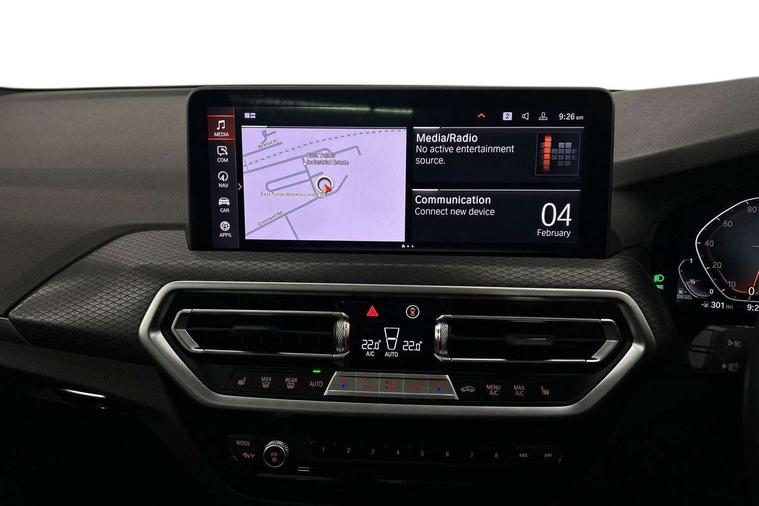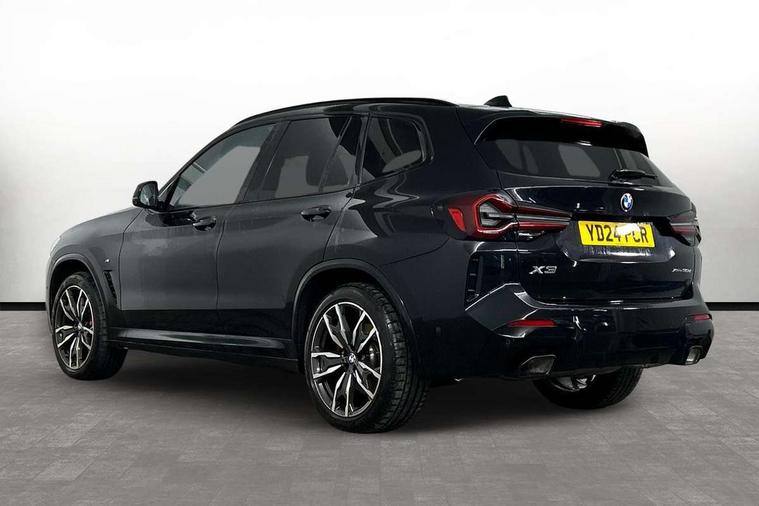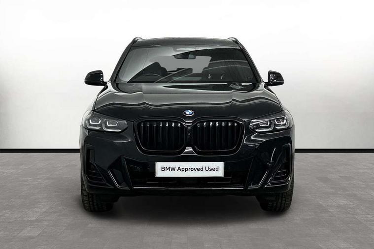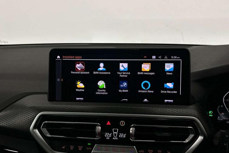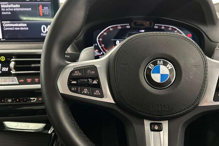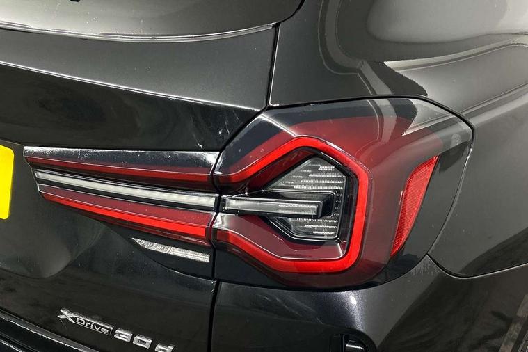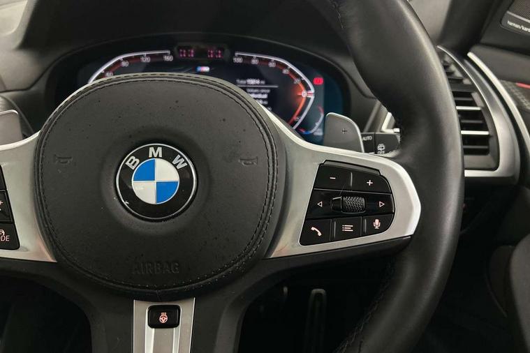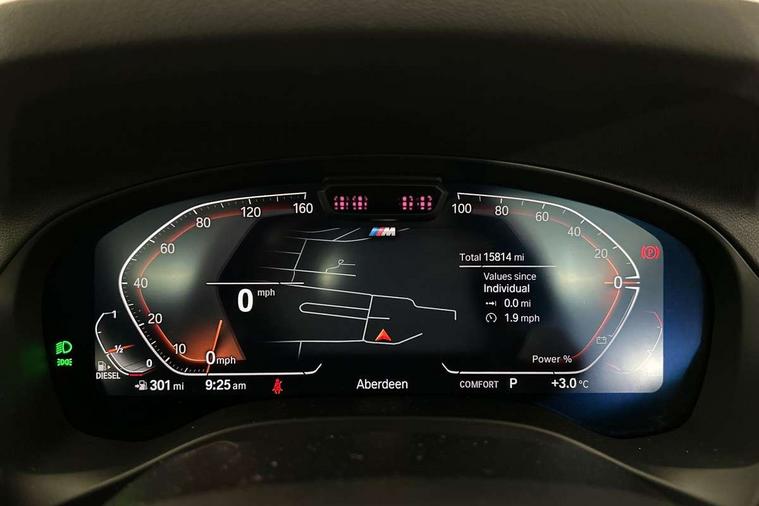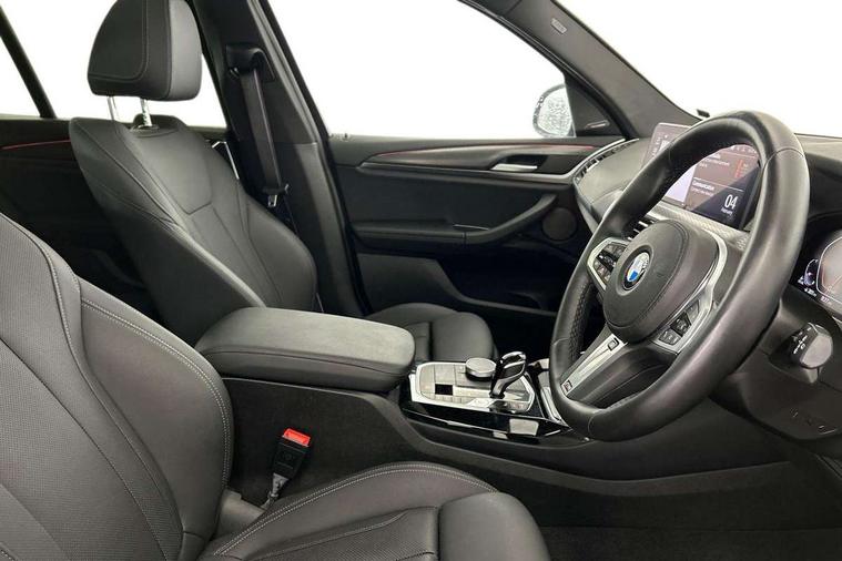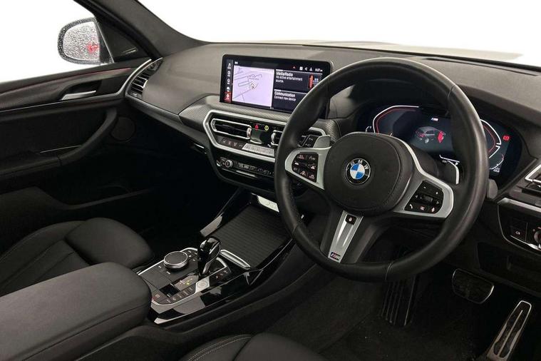 Active Guard, Attentiveness assist, BMW Live Cockpit Professional nav system including 12.3" instrument display + 12.3 high resolution control display, BMW Online services, BMW Teleservices, Brake pad wear indicator in front and rear, Check Control warning system for monitoring of lights and door/luggage compartment open warning, Condition based service - BMW service history, electronic service booklet, integrated owner's handbook, Connected drive services, Electric boot lid, Front/rear Parking distance control, iDrive touch controller with 8 favourite buttons, Instrument cluster with speedometer with mph readout, tachometer, fuel gauge and oil temperature gauge, Lights on warning by audio warning signal when ignition is switched off, Oil sensor for level and grade, warning by check control system, On board computer - average speed+fuel consumption, service interval, clock/date, odometer/trip meter, outside temperature display and ice warning, Optimum shift indicator, Personal Profile - automatic lock when driving away selectable, Run flat indicator, Stop/start system, Variable sports power steering with drive performance control Sport+ mode, Diesel particulate filter, Incorrect fuelling protection, Larger capacity fuel tank, M sport suspension, Multi-link rear suspension, Sport automatic transmission with gearshift paddles, BMW professional radio/CD/MP3, DAB tuner, Acoustic glazing, Automatic windscreen wipers and automatic headlight, Black finish on B pillars, Body colour door handles, Body colour electric adjust heated aspherical door mirrors, Body colour roof mouldings, Body coloured bumpers, Direction indicator, side repeaters, integrated in exterior mirrors, Dynamic brake lights, Exhaust tailpipes - dual, round, split left and right with chrome finisher, Fingertip control / anti-trap function on electric window, Folding wing mirrors with auto dimming, Follow me home headlights, Front and rear bumper system with replaceable deformation elements, Front and rear electric windows, Gloss chrome tailpipes finishers, Green tinted heat insulating glass, Heated windscreen washer jets, High beam assistant, High gloss black shadow line roof rails, High gloss shadowline exterior trim in decorative moulding side frame/recess cover/guide rail/B, C pillars/mirror frame and triangle with mirror base, High level 3rd brake light incorporating LED Technology, Interior rear view electrochromatic mirror with automatic anti dazzle function, LED tail lights, Lightweight engineering, M aerodynamic bodystyling, M Sport entry door sill strips, Model designation, Rain sensor, Rear side wing doors, Rear wing door, Rear wiper, Shark fin antenna, Side exterior M designation badges, Visible VIN plate, Welcome lighting, Windscreen wipers with adjustable interval, 12V power point in luggage area, 12V power socket in front centre console, 2 x USB Type C ports for charging and data transmission (front centre console) and 2 x USB Type C ports for charging (rear centre console), 3 rear headrests, 3 seat bench in 2nd row, 3 zone automatic air conditioning, 4 lashing points to secure luggage, 40:20:40 split folding rear seat with loading system, Ambient lighting, Anthracite headlining, Automatic interior light when door is opened/ignition switched off or via remote key, Floor mats in velour, Foldable storage floor with compartment, Four grab handles integrated in roof lining, Front and rear bottle holders integrated into door trim storage compartments, Front and rear side armrests integrated into door trim, Front centre armrest with storage compartment, Front footwell lights, Front head restraints, Front passenger seat, Front sports seats, Front/rear courtesy lights with soft on/off dimming, Front/rear reading lights, Heated front seats, Isofix rear child seat preparation, Leather gear knob, Lockable glove compartment, Luggage area underfloor compartment, Luggage compartment lighting, M sport leather steering wheel, Multifunction steering wheel, Parcel shelf removeable and storable under boot floor, Reach and rake adjustable steering column, Rear centre armrest with 2 cupholders, Removable / retractable luggage cover, Slope adjustable rear seats, Storage compartment in rear centre console and front/rear door trims, Sun visors with vanity mirrors and ticket pocket, Toolkit located in luggage compartment, Two front cupholders with removable oddments tray/lid, Connected pro pack - X3, ADB - Automatic Differential Brake, Anti-lock braking system (ABS) with brake assist, Automatic Stability Control (ASC), Battery safety cut-off, BMW emergency call, Brake drying, Brake energy regeneration, Braking pre-tensioning, Child locks on rear doors, Cornering brake control (CBC), Crash Sensor - activation of central locking release, hazard warning light and interior lighting, Deactivation of fuel pump in the event of a crash, Driver and front passenger front and side airbags with passenger deactivation and ITS front and rear head airbags, Driver and front passenger knee airbag, DSC+, Dynamic brake control, Dynamic Traction Control - DTC, Electromechanical parking brake, Hill descent control, Hill start assist, Seatbelt security check for front seats, Side impact protection, Three point seatbelts to all seats with front and outer rear pyrotechnic belt tensioners and seat belt force limiters, Two tone horn, Tyre pressure sensor, Ventilated front and rear disc brakes, Warning triangle and first aid kit, Central locking switch for all doors, fuel filler cap and luggage compartment, Electronic engine immobiliser, Locking wheel nuts, Remote control including two integrated key - one button for open/close all lockable content, windows and separate button for open luggage compartment, Remote control Thatcham category 1 alarm, Start/stop button with Comfort Go keyless engine start and auto Start/stop deactivation button, Low rolling resistance tyres,