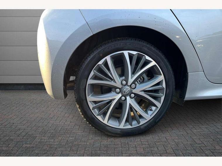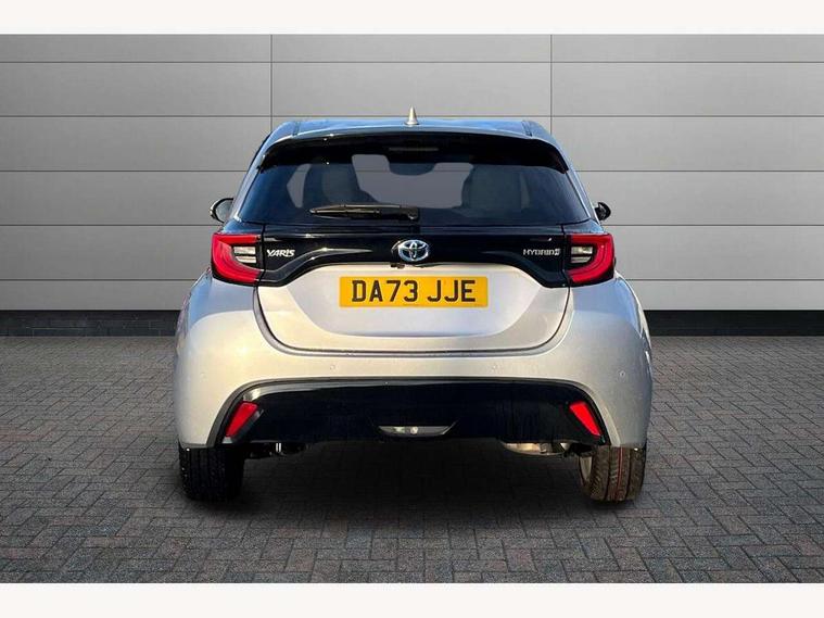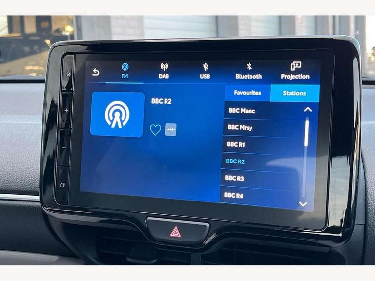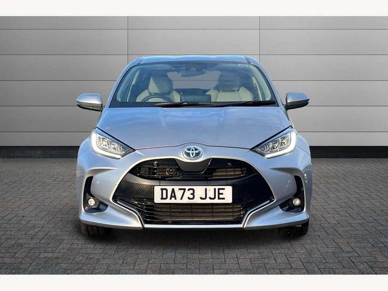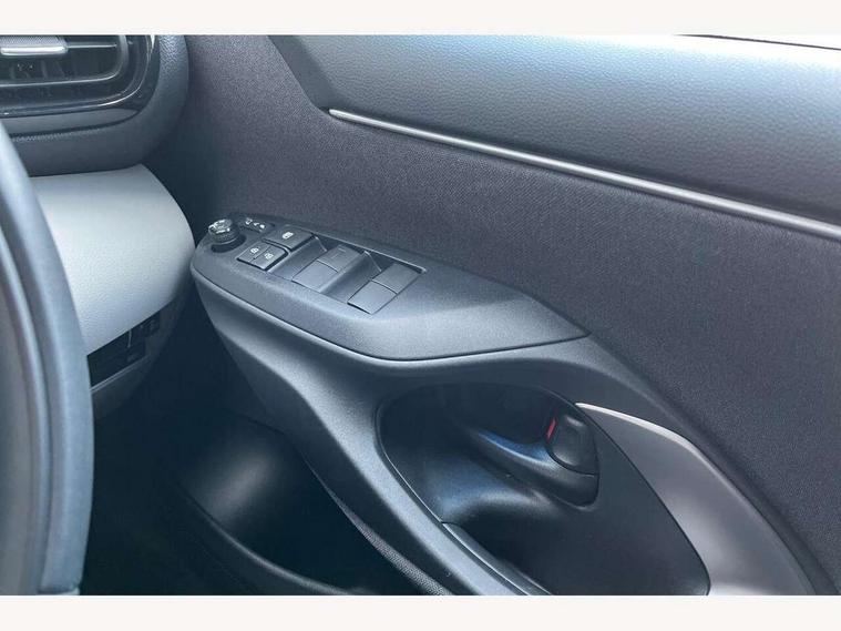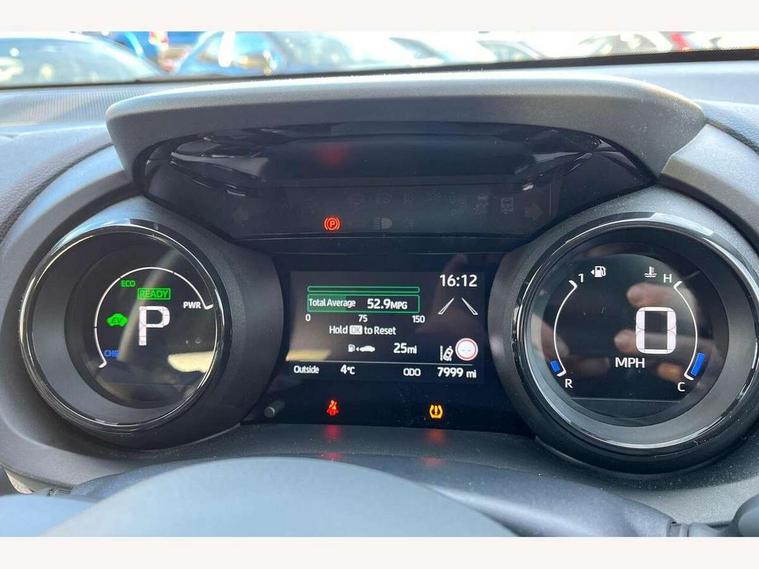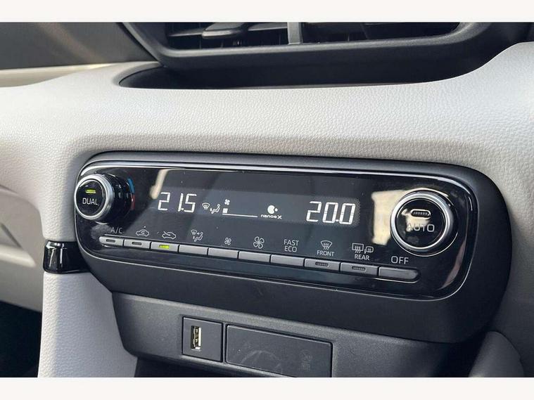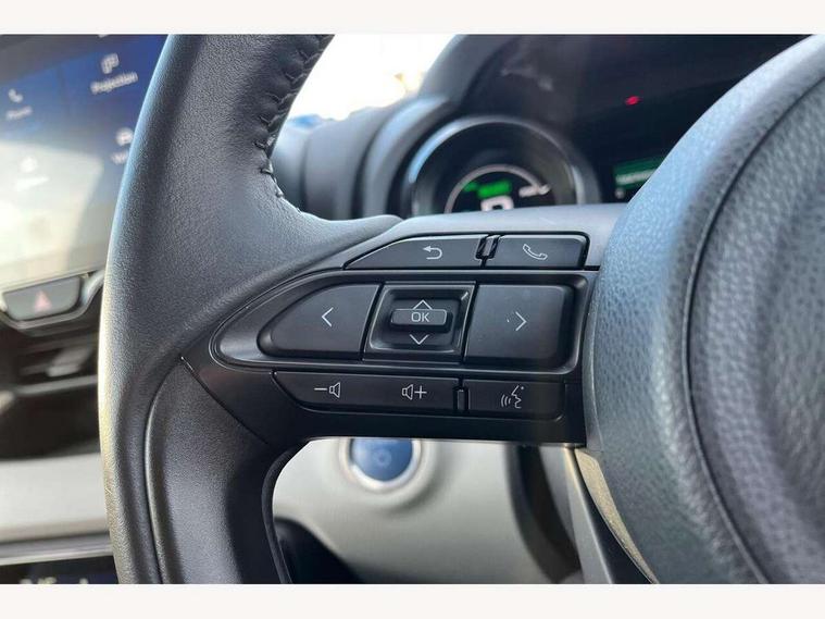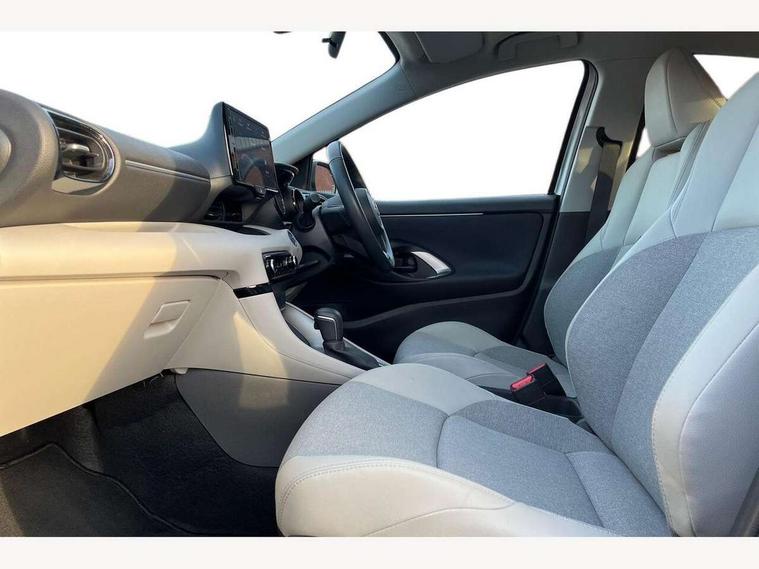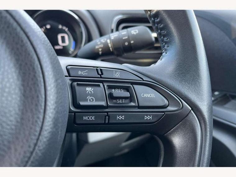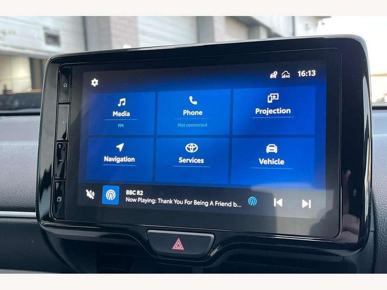 Adaptive cruise control, Adjustable speed limit with speed warning, Blind spot monitoring, Bluetooth connectivity, Colour binocular inspired displays with digital speedometer, E-call, Electric power steering, Hybrid energy display, Multi information display switches on steering wheel, Reversing camera, Smartphone integration with Apple CarPlay and Android auto, Tailgate, Touch 2 navigation system, Voice recognition, Vehicle Stability Control (VSC), 6 speakers, 9" HD multimedia display touch screen with Toyota smart connect, USB connection, Acoustic windscreen glass, Auto windscreen wipers, Automatic headlights, Automatically retractable door mirrors, Body coloured door mirrors, Electric adjustable heated door mirrors, Follow me home headlights, Front auto power windows with anti jam protection, Full LED rear lights, LED daytime running lights, LED front fog lights, LED front light guide, LED Headlights, LED High mounted stop lamp, LED Indicators, LED rear light guide, Manual headlight levelling, Painted chequered front grille, Rain sensor, Rear auto power windows with anti jam protection, Rear privacy glass, Rear side wing doors, Rear spoiler, Rear wiper, Satin lower front grille, Shark fin antenna, Turning signal integrated indicators in door mirrors, Variable front intermittent wipers, 3 adjustable rear headrests, 3 seat bench in 2nd row, 3 spoke leather steering wheel, 60/40 split folding rear seat, Active headrests, Adjustable boot height, Coat hooks in rear grab handles, Cup holders (2 front & door), Data Communication Module (DCM) connected services, Dual zone automatic air conditioning, Fabric seat with partial synthetic leather upholstery, Front armrest, Front sport seats, Glovebox, Grey roof lining, Height adjustable driver's seat, Height adjustable passenger seat, Isofix seat fixing, Leather gearshift, Map pockets on the backs of the front seats, Pollen filter, Shopping bag hooks, Single front passenger seat, Tilt/telescopic steering column, Parking pack - Yaris, 3 point seatbelts on all rear seats, ABS+EBD+Brake assist, Electronic parking brake, Emergency brake light system (EBS), Front passenger airbag on/off switch, Front seatbelt reminder, Hill start assist control (HAC), Rear child proof door locks, Rear seat belt reminder, Supplemental Restraint System (SRS) 8 airbags: Driver & passenger's airbags, dual side curtain airbags, side impact airbags, front centre airbag, Toyota Safety Sense 2, Precollison + Night time Pedestrian & Cyclist Detection, Lane Trace Assist, Auto High Beam, Intelligent ACC & Road Sign Assist, Tyre pressure warning system, 2x Master key, Alarm/immobiliser, Keyless smart entry with push button start, Remote AC via MyT, Remote locking via MyT, Remote powered central double locking doors, Satin chrome interior styling, Soft touch instrument panel, Space saver spare wheel,