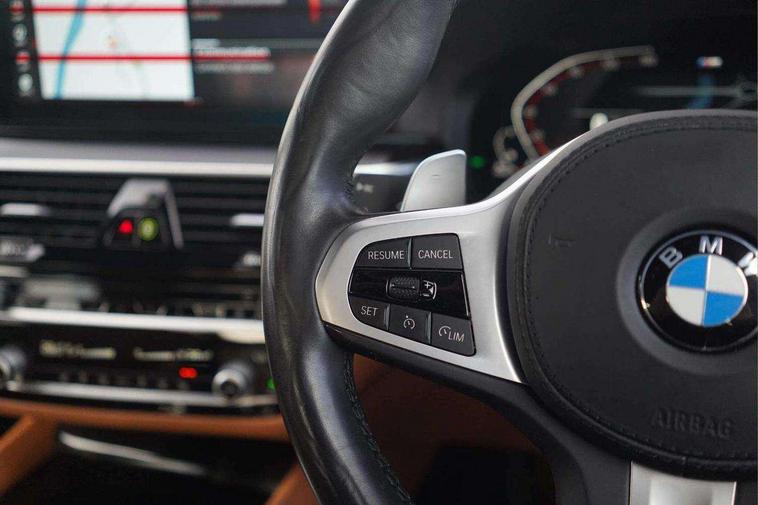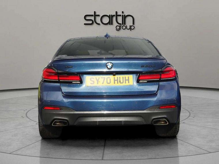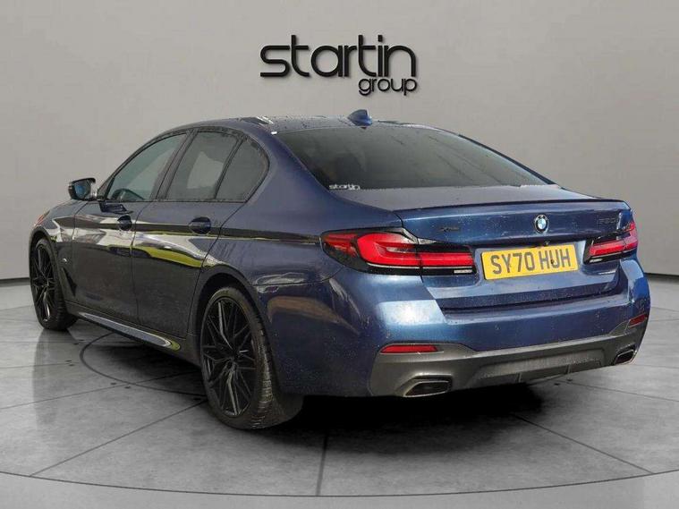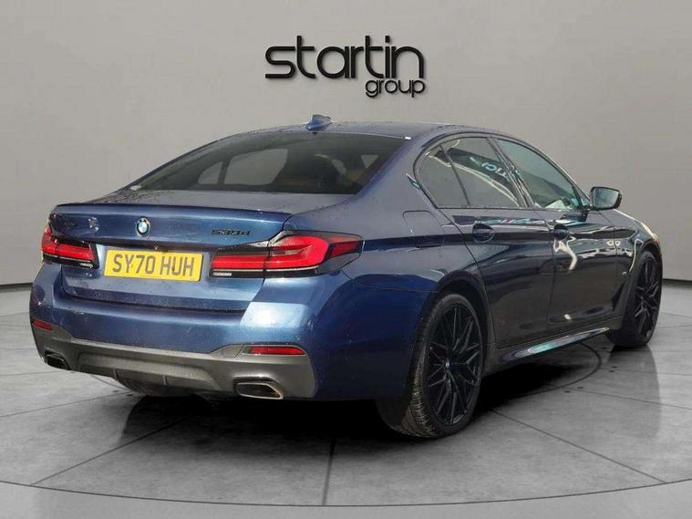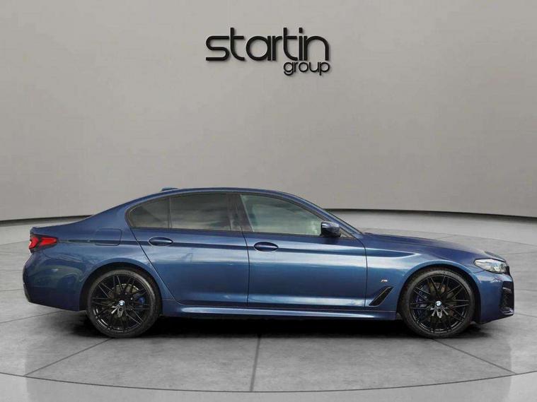32GB hard disc drive (HDD) memory, Active Guard, BMW ConnectedDrive online services, BMW Live Cockpit Professional sat nav system with 12.3" instrument display and high resolution control display, BMW Teleservices, Brake pad wear indicator, Cruise control with brake assist, Driving experience switch, Electric Power Steering (EPS) with Servotronic, iDrive touch controller with shortcut buttons, Intelligent emergency call, Multifunctional instrument panel, Oil sensor for level and grade, On board computer inc. average speed, fuel consumption, liquid crystal Info display, journey computer, outside temperature display, personal profile, On-board diagnosis - OBD, Powered by Operating System 7.0, Service interval indicator, Speed limiting function, Stop/start button, 48V Mild hybrid technology, Diesel particulate filter, Drive performance control with ECO PRO comfort + sport mode, Engine cover with twin turbo designation, M sport suspension, Steptronic sport transmission with gearshift paddle switches on steering wheel, DAB Digital radio, Favourite buttons, Acoustic glazing, All round anti-corrosion system, Automatically dimming rear view mirror, BMW Individual high gloss shadow line includes exterior mirror frame, window frame surround, B pillar finish, air breather in high gloss black, Body colour door handles, Body coloured bumpers, Door handle illumination, Dynamic brake lights with LED technology, Electric front and rear windows with fingertip open/close + anti-trap facility and comfort closing function, Electrically adjustable and heated exterior mirrors includes integrated direction indicators and automatic parking function, Follow me home headlight function, Heated windscreen washer jets, High gloss black active air stream kidney grille, Interior rear view electrochromatic mirror with automatic anti dazzle function, LED daytime running lights, LED third brake light, M designation on front side panels, left and right in chrome, Rain sensor with automatic headlight activation, Trapezoidal visible exhaust tailpipes, xDrive designation on tailgate, 12V power socket in front and rear, Armrest - front and rear integrated door trim, centre console includes storage compartment, rear centre includes 2 cupholders, Child seat ISOFIX attachment with rear outer seats includes top tether, Cup holders (2 front and 2 rear), Front and rear footwell lights, Front reading lights, Height and length adjustable steering column and activation via lateral lever on the steering column, Illuminated M door sill finishers, Lockable glove compartment with light, M specific pedals, M specific velour floor mats, Multifunction controls for leather steering wheel, Rear headrests, Three spoke sport M leather steering wheel, Ambient lighting pack - 5 Series, Connected package professional - 5 Series, Expanded exterior mirror pack - 5 Series, M Aerodynamic pack - 5 Series, 3x3 point rear seatbelts, Airbags - driver/front passenger, rear and side, first and second row seats head airbags, front passenger seat airbag deactivation + knee airbag, Anti-lock braking system (ABS), Automatic Stability Control (ASC), Brake assist function, Brake energy regeneration, Cornering brake control (CBC), Crash sensor activating central locking release, hazard warning lights, fuel cut off and interior lighting, Deformation zones - front and rear with door reinforcements and bumpers up to 2.5 mph, DSC - Dynamic Stability Control, Dynamic brake control, Dynamic Traction Control - DTC, Electromechanical parking brake with automatic drive away release and auto hold function, Electronic brake force distribution, Engine drag torque control, Front and rear brake discs with interior ventilation, Front head restraints with anti-whiplash, Hill start assist, M Sport brakes in high gloss blue painted brake callipers with M designation, Mechanical child proof lock on rear doors, Passive protection for pedestrians, Side impact protection, Three point seat belts for all four seats, Two tone horn, Tyre pressure indicator, Warning triangle and first aid kit, Alarm system (Thatcham 1) with remote control and electronic engine immobiliser, Locking wheel bolts,
