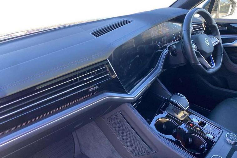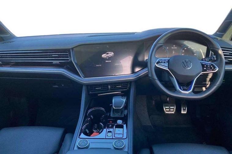 15" Screen Top infotainment system Premium (MIB3), Adaptive cruise control, Advanced driver attention and drowsiness monitor, Driver profile selection, Dynamic road sign display, E-Sim card for online connectivity, eCall emergency system, Innovision cockpit, Intelligent park assist, Mobile phone interface with inductive charging, Multi-colour Active Info display, Park Assist - Sensor controlled steering aid to assist parallel or bay parking, PAS, Warning signal and warning light for front and rear seatbelts not fastened, Wireless app connect, Adaptive chassis control, Air suspension, Charging cable - Mode 2 / 10-amp / 2.3 kW, Charging cable - Mode 3 / 32-amp / 7.2 kW, Standard electronic engine sound actuator, DAB Digital radio, Diversity antenna for AM/ FM reception, We Connect and We Connect Plus functionality, Automatic coming/leaving home lighting function, Automatic headlights, Black door mirrors, Black style comfort bumpers, Dynamic headlight range control with dynamic cornering light, Electric front tilt/slide panoramic sunroof and fixed rear sunroof, Electrically power adjustable, heated, folding, auto dimming, front passenger exterior door mirror lowering function, External USB type C socket and charging sockets, Gloss black roof rails, HD LED Matrix beam plus digital headlight projection with variable light distribution, Headlight washers, Heat insulating darkened glass in side and rear windows, Heated windscreen washer jets, Highway light, LED 3rd brake light, LED daytime running lights, LED rear combination lamp with variable lighting functions and special styling, Poor weather light, Rear exhaust tailpipe, Rear fog light with back up light on both sides, Rear light bar and illuminated logo, Rear side wing doors, Rear wiper, Stainless steel door sill protection, 12V socket in centre console, 3 rear headrests, 3 seat bench in 2nd row, 30 colours options interior ambient lighting, 4 zone climate control, Additional Interior Lighting, Airbag label on sun visor and B-pillar, Brushed stainless steel pedals, Door and side trim panel with Leather quilting, Double sun visors with illuminated vanity mirrors, Front + rear carpet mats, Front centre armrest, Illuminated scuff plates in door apertures, Leather wrapped multifunction sports steering wheel, heated, with touch control and shift paddles, Mechanical rear seat release, Power adjustable lumbar support in front, Power seats in front, right side with memory features and seat cushion depth adjustment, Puglia leather upholstery with "R" ergoComfort, Rear seat backrest and split folding with center armrest, Single front passenger seat, Extra acoustics pack - Touareg, Memory pack plus - Touareg, 3 point seatbelts, outer rear with ECE lable, ABS, Child locks on rear doors, Curtain airbags, Disc brakes in front blue with R-Logo, Disc brakes in rear blue, Driver and front passenger safety-optimised head restraints, Driver/Front Passenger airbags, Extended pedestrian protection measures, Front assist, Front seat side impact airbags, Generative braking with start and stop system, Height adjustable 3 point front seatbelts with pre tensioners, Passenger airbag deactivate switch, Three 3 point rear seatbelts, Two tone horn, Tyre pressure loss indicator, Warning triangle and first aid kit, Alarm system with interior protection, Easy open and close sensor controlled luggage compartment opening and closing with remote unlocking, Keyless Access Keyless locking and starting system with SAFELOCK, Aluminium decorative inserts, Black decorative trims, Gloss black decorative inserts in centre console, 285/35 R22 106Y XL Low rolling resistance tyres, Tool kit, Tyre mobility kit including compressor and sealing foam,