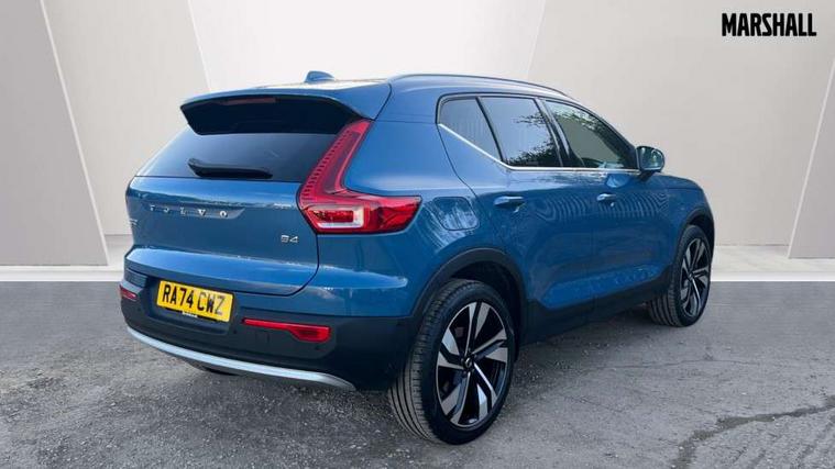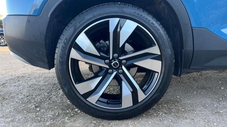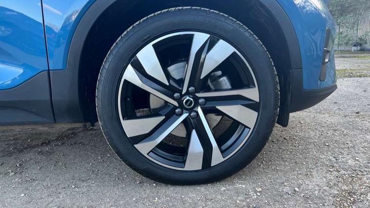 12.3" Progressive Driver Display, 360 degree surround view parking camera with side proximity sensors, 9" centre console portrait touch screen, Adjustable steering wheel force, Android auto (Wired), Apple carplay (wired), Bluetooth handsfree system, Driver alert control, Driver assistance (pilot assist and adaptive cruise control), Driver awareness - Blind spot information system with steer assist, cross traffic alert with autobrake and rear collision warning and mitigation, E-call, Front park assist, Google automotive services - Enabled entertainment apps, navigation with google maps, voice recognition with google assistant, Hands free power tailgate, Intelligent speed assistance, Lane keeping aid, Oncoming Lane Mitigation, Rear park assist, Speed sensitive steering, Volvo cars services with app - Driving journal, emergency and breakdown call, engine remote start, remote door locking/unlocking and vehicle dashboard, Wireless/Inductive Mobile Phone Charging, Automatic transmission with start/stop and manual change functions, Dynamic chassis, DAB Digital radio, Premium Sound by Harman Kardon, Dolby Pro Logic II Surround Sound, Dirac Unison, 12 speakers/600W and subwoofer, Steering wheel mounted remote controls, Active bending pixel LED headlights with adaptive shadow technology, Active high beam incorporating daytime running lights, Adaptive brake lights with high level LED brake lights, Auto dimming feature for exterior door mirrors, Auto dimming interior mirror, Automatic headlamp levelling, Dark tinted windows - rear side windows and rear screen, Front aluminium tread plates, Front and rear electric windows, Headlight cleaning system, High gloss black front and rear skid plate, High gloss black front bumper deco, High gloss black mesh front grille with high gloss black surround, High gloss black window trim, Home safe and approach lighting, Integrated roof rails in high gloss black, LED front fog lights with cornering function, Power glass tilt and slide panoramic sunroof with sun curtain, Puddle lights, Rain sensor with automatic windscreen wiper activation, Rear side wing doors, Rear wiper, Roof antenna, Roof spoiler, Visible VIN plate, 12V socket in front tunnel console and luggage compartment, 2-Zone electronic climate control with CleanZone air quality system and pollen filter, 3 seat bench in 2nd row, 3 Spoke tailored steering wheel with chrome trim, 60/40 versatile split folding rear seat, Centre console cupholders and storage, Flexible load floor and grocery bag holder, Floor mats, Front cabin courtesy lights, Front door pocket, front cupholder, ambient front door, rear reading, rear courtesy, instrument panel and tailgate lighting, Front footwell illumination, Front headrests, Front reading lights, Front seat cushion extensions, Front side step illumination (under door), Glovebox bag hook, Heated front seats, Height/reach adjustable steering column, High gloss centre tunnel deco, Illuminated glovebox, Illuminated luggage compartment, Illuminated vanity mirrors + ticket holder, Integrated waste bin, Isofix attachments on outer rear seats, Load cover, Load protection net, Multi directional lumbar support for driver and passenger seat, Power driver seat with memory + exterior mirrors memory, Power folding rear headrests, Power passenger seat, Rear armrest with cupholders, Single front passenger seat, Underfloor cargo storage, Climate pack without heated front seats - XC40, 3x3 point rear seatbelts, City safety with steering support with Pedestrian + cyclist + front collision warning with full auto brake and rear auto brake, Driver and passenger airbags, Drivers knee airbag, Electronic parking brake with auto hold, First aid kit, Front and outer rear seatbelt reminder and pretensioners, Front seats SIPS airbags, Hill descent control, Hill start assist, Inflatable curtain, Passenger airbag cut-off device, Power child locks on rear doors, Road sign information display, Run off Road Protection, SIPS (Side Impact Protection System), Slippery road and hazard light alert, Stability and Traction Control with Spin control, Engine Drag Control and Corner Traction Control, Tyre pressure monitoring system, Vehicle deceleration control with Anti-lock Brake System, Electronic Brake Distribution and Emergency Brake Assist, Warning triangle, WHIPS whiplash protection system - front, 2 x Key integrated remote control central locking including with deadlocking system and auto open/close windows and sunroof, Anti-theft alarm including immobiliser/volume sensor + level sensor, Keyless drive includes keyless entry and keyless start, Locking wheel nuts,