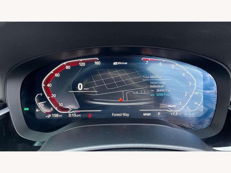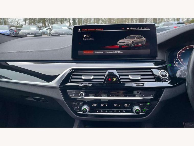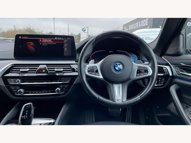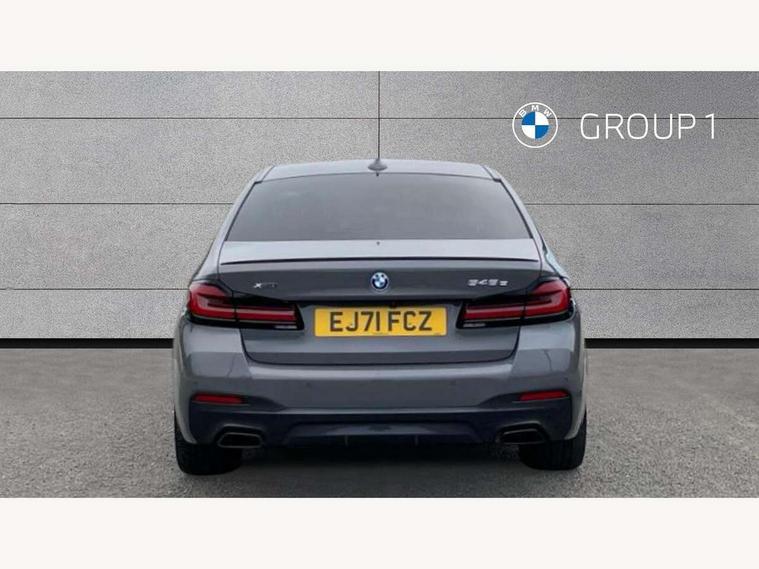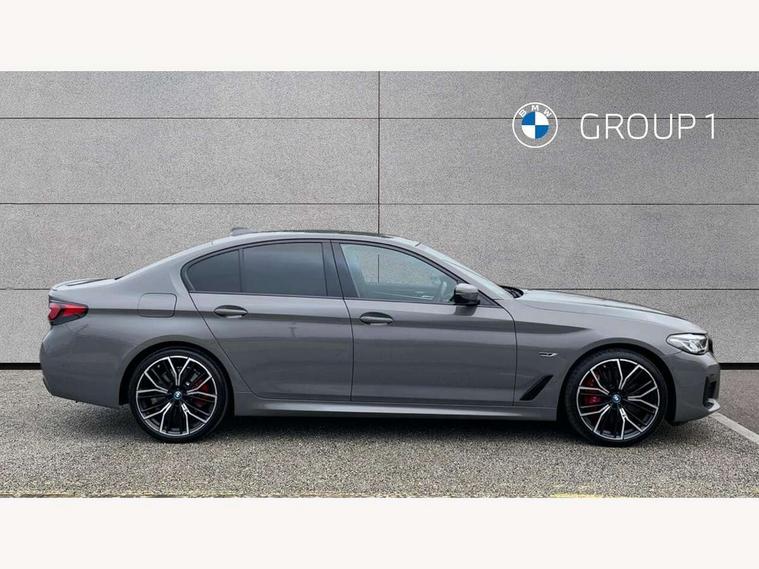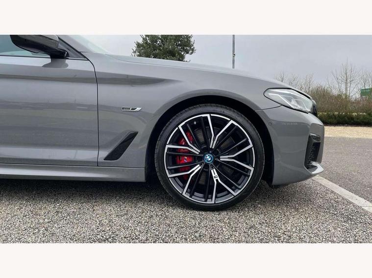 32GB hard disc drive (HDD) memory, Active Guard, BMW Live Cockpit Professional sat nav system with 12.3" instrument display and high resolution control display, BMW Teleservices, Brake pad wear indicator, Cruise control with brake assist, Digital Instrument display with hybrid specific functions, Driving experience switch specific to 545e xDrive, Electric Power Steering (EPS) with Servotronic, Electronic display of drivetrain information and battery range and temperature, iDrive touch controller with shortcut buttons, Intelligent emergency call, Multifunctional instrument panel, Oil sensor for level and grade, On board computer inc. average speed, fuel consumption, liquid crystal Info display, journey computer, outside temperature display, personal profile, On-board diagnosis - OBD, Powered by Operating System 7.0, Service interval indicator, Speed limiting function, Stop/start button, 5 metre standard charge cable, AC Fast charge cable, Charging flap in front side panel - left, Drive performance control with ECO PRO comfort + sport mode, eDrive exterior sound, Electric motor, Engine cover with twin turbo designation, Standard Charging cable (Mode 2) for home socket, Steptronic transmission with gearshift paddles on steering wheel, DAB Digital radio, Favourite buttons, "Electrified by i" exterior badging on charging flap, Acoustic glazing, All round anti-corrosion system, Aluminium radiator, Automatic windscreen wipers and automatic headlight, Automatically dimming rear view mirror, BMW Individual high gloss shadow line includes exterior mirror frame, window frame surround, B pillar finish, air breather in high gloss black, BMW roundel with BMW i blue surround on steering wheel, wheel centre caps, tailgate and bonnet, Body colour door handles, Body coloured bumpers, Door handle illumination, Dynamic brake lights with LED technology, Electric front and rear windows with fingertip open/close + anti-trap facility and comfort closing function, Electrically adjustable and heated exterior mirrors includes integrated direction indicators and automatic parking function, Folding exterior side mirror with auto- dimming, Follow me home headlight function, Heated windscreen washer jets, High gloss black active air stream kidney grille, LED daytime running lights, LED third brake light, M designation on front side panels, left and right in chrome, Trapezoidal visible exhaust tailpipes, xDrive designation on tailgate, 12V power socket in front and rear, 2 cup holders in front, Armrest - front and rear integrated door trim, centre console includes storage compartment, rear centre includes 2 cupholders, Child seat ISOFIX attachment with rear outer seats includes top tether, Front and rear footwell lights, Front reading lights, Height and length adjustable steering column and activation via lateral lever on the steering column, Illuminated charging socket with visual display of charge status, Lockable glove compartment with light, M door sill finishers, M specific pedals, M specific velour floor mats, Multifunction controls for leather steering wheel, Rear headrests, Stationary cooling, Three spoke sport M leather steering wheel, Ambient lighting pack - 5 Series, Connected package professional - 5 Series, M Aerodynamic pack - 5 Series, Acoustic protection for pedestrians, Airbags - driver/front passenger, rear and side, first and second row seats head airbags, front passenger seat airbag deactivation, Anti-lock braking system (ABS), Automatic Stability Control (ASC), Brake assist function, Brake energy regeneration, Cornering brake control (CBC), Crash sensor activating central locking release, hazard warning lights, fuel cut off and interior lighting, Deformation zones - front and rear with door reinforcements and bumpers up to 2.5 mph, DSC - Dynamic Stability Control, Dynamic brake control, Dynamic Traction Control - DTC, Electromechanical parking brake with automatic drive away release and auto hold function, Electronic brake force distribution, Engine drag torque control, Front and rear brake discs with interior ventilation, Front head restraints with anti-whiplash, Hill start assist, M Sport brakes in high gloss blue painted brake callipers with M designation, Mechanical child proof lock on rear doors, Side impact protection, Three point seat belts for all four seats, Two tone horn, Tyre pressure indicator, Warning triangle and first aid kit, Alarm system (Thatcham 1) with remote control and electronic engine immobiliser, Locking wheel bolts,