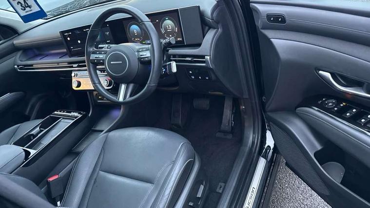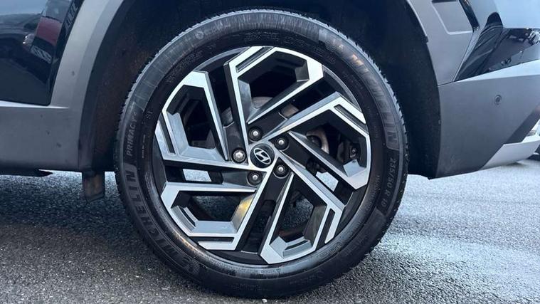 12.3" LCD display with driver's supervision instrument cluster, 12.3" widescreen navigation with bluelink and mapcare, Blind spot view monitor, Bluetooth system, Cruise control - smart adaptive speed control with stop and go function, Digital clock, Drive mode selector, Driver attention warning, E-call, Emergency stop signalling system, Forward Collision Avoidance Assist (FCA) - Car, Pedestrian and Cycle, Forward Collision Avoidance Assist Junction Turning (FCAJX), Front and rear parking sensors, Front, rear and side parking distance warning, Highway Driving Assist (HDA), Hyundai road side assistance, Intelligent speed limit assist, Lane follow assist, Lane keep assist, Over the air updates(OTA), Parking collision avoidance assist (PCA), PAS, Rear camera and guidance parking system, Rev counter, Smart power tailgate, Surround view monitor, Tailgate open warning light, Trip computer, Trip odometer, Voice recognition, Water temperature gauge, Windscreen washer fluid sensor and warning indicator, Wireless Apple CarPlay/Android Auto, Wireless phone charging pad, 2 front and 2 rear USB-C ports, DAB Digital radio, Krell premium audio system with 8 speakers and subwoofer, Steering wheel mounted audio/phone controls, Adjustable intermittent front windscreen wipers with aero wiper blade, Auto dimming rear view mirror, Automatic defog system, Automatic headlights with dusk sensor, Automatic windscreen wipers with rain sensor, Black wheel arches, Body colour bumpers, Body colour door mirrors with integrated indicators, Body colour exterior door handles, Electric tilt/slide panoramic sunroof, Electrically adjustable, heated and power folding door mirrors, Follow me home headlights, Front and rear electric windows with anti-trap mechanism and one touch control, Front fog lights, LED 3rd brake light, LED daytime running lights, LED rear lights, Matrix LED headlights, Positioning Lights - LED, Privacy glass - Rear windows and tailgate, Rear side wing doors, Rear wash/wipe with intermittent wipe setting, Roof rails, Tinted glass with windscreen shade band, Trailer stability assist, 12V power outlets in front console and luggage compartment, 3 seat bench in 2nd row, 40/20/40 split folding rear seat, 64 colours interior ambient lighting, Adjustable head restraints (Up and down), Cupholders in rear armrest, Door courtesy lights, Driver and passenger sunvisors with illuminated LED vanity mirrors, Driver's seat electric adjustments, Driver's seat memory, Front and rear door pockets, Front armrest with storage box, Front centre console and door bottle holders, Front passenger's seat electric adjustments, Heated front seats, Heated rear seats, Heated steering wheel, Height/reach adjustable steering column, Illuminated/air conditioned glove compartment, ISOFIX child seat anchorage points attached on outer rear seats, Leather upholstery, Leather wrapped steering wheel and gear knob, Luggage compartment lighting, Luggage cover, Luggage hooks, Luggage net, Map and reading lights, Rear seat remote folding function, Rear side window sunblind, Reclining rear seats, Retractable load cover, Single front passenger seat, Sunglasses holder, Three zone climate control, Touch sensitive climate controls with temperature dials, TUCSON branded metal door scuff plate, Underfloor boot compartment, Ventilated front seats, Trailer wiring package - Tucson, 3x3 point rear seatbelts, Active bonnet, Airbag - Front, front side, curtain and centre front airbags, Anti-lock brake system (ABS), Brake assist function, Childproof rear door locks, Curtain airbag roll over sensor, Downhill brake control, Electric parking brake, Electronic stability control, Front and rear seatbelt reminder, Front passenger airbag deactivation switch, Front seatbelt pretensioners, Hill start assist control (HAC), Multi-Collision braking, Outer rear seatbelt height adjustment, Seatbelt height adjustment for front seats, Traction control, Tyre pressure monitoring system with individual tyre pressure display - TPMS, Vehicle stability management, Deadlocks, Immobiliser, Locking wheel nuts, Remote control central locking, Smart key with keyless entry and engine start/stop button, Speed sensitive auto door locking, Thatcham category 1 alarm, 19" Alloy wheels, Tyre repair kit,