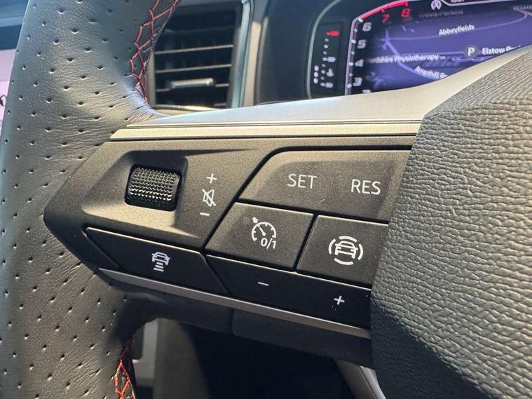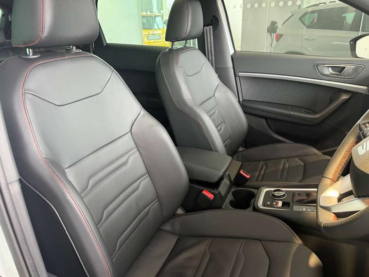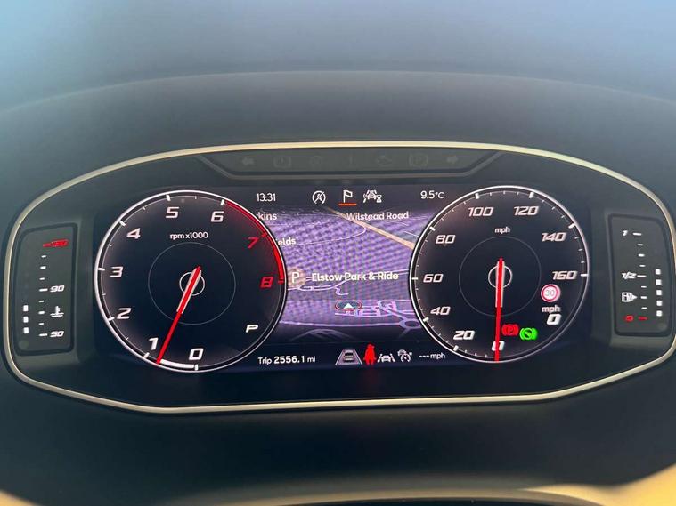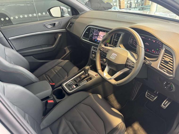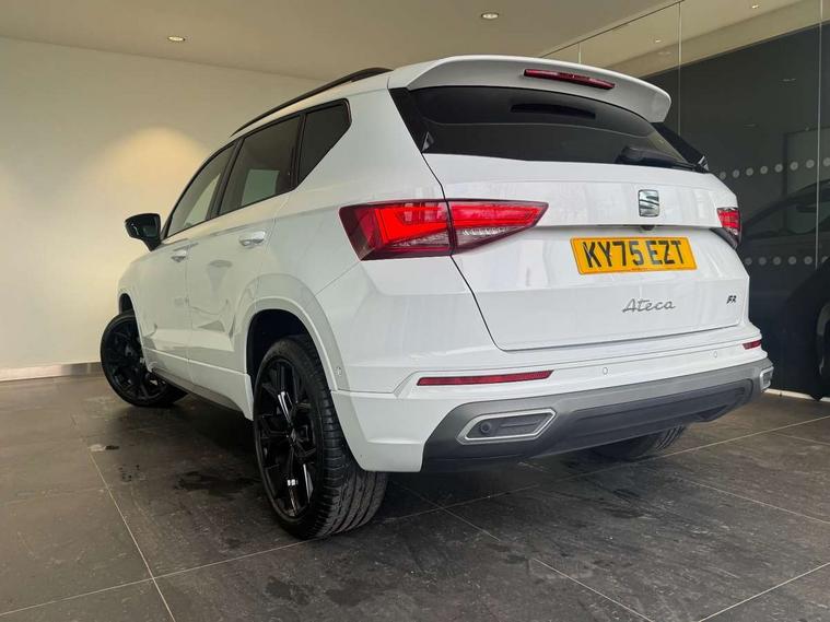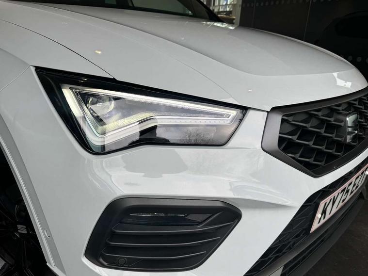 10" Digital cockpit, E-call, Electric tailgate with virtual pedal, Outside temperature gauge, Progressive power assisted steering, SEAT drive profile with driving experience button - Normal, Sport, Eco and Individual mode, gearshift, steering and throttle response, Self parking functionality (includes front and rear parking sensors), Start/stop system, Top view camera with rear view camera, Trip computer, wired and wireless full link smartphone integration, Wireless phone charger, Steering wheel mounted audio/phone controls, Black roof rails, Black side window trim, Body colour bumpers, Body coloured wheel arch surrounds, Chrome front grille frame, Dark tinted rear windows, Daytime running lights, Door mirrors with welcome light silhouette, Dynamic headlight range control with self adjusting whilst driving, Electric adjustable/heated/folding door mirrors, Front and rear electric windows, Full LED headlamps with lens and LED front fog lamps with cornering function, Illuminated aluminium front door sill, LED 3rd brake light, LED rear tail lights with dynamic indicators, Rear exhaust tailpipe, Rear fog lights, Rear side wing doors, Rear spoiler, Rear wash/wipe, Variable front intermittent wipers, 12v socket in front, 3 seat bench in 2nd row, 60/40 split folding rear seat, Aluminium pedals, Black greenhouse interior roof, Dual zone climate control, Electric adjustable driver seat with memory function, Front and rear head restraints, Front centre armrest, Front seat back storage pockets, Heated front seats, Height adjustable passenger seats with lumbar adjustment, ISOFIX points in outer rear seats with top tether anchorage points, Leather sports steering wheel and gear knob, Leather upholstery with front comfort seats, Rear armrest and easy back seat release mechanism from boot, Single front passenger seat, Steering wheel mounted gearshift paddles, Convenience pack - Ateca, Interior lighting pack - Ateca, Navigation system pack with DAB - Ateca, Safety and driving pack (L) - Ateca, Safety and driving pack with attention and drowsiness assist - Ateca, 3x3 point rear seatbelts, ABS, Traction control system (TCS), Electronic stability control (ESC) and Electronic differential lock system (XDS), Airbags - Driver and front passenger airbag with deactivation, front side, two curtain and driver's knee airbags, Electric parking brake with auto hold function, Front and rear seatbelt reminder, Hill hold control, Manual rear child locks, Single tone horn, Tiredness recognition system, Tyre pressure monitoring system, Alarm, Keyless entry, Locking wheel bolts, Remote central locking, Chrome interior detailing, 19" Exclusive alloy whelels 36/10 in glossy black,