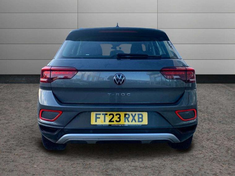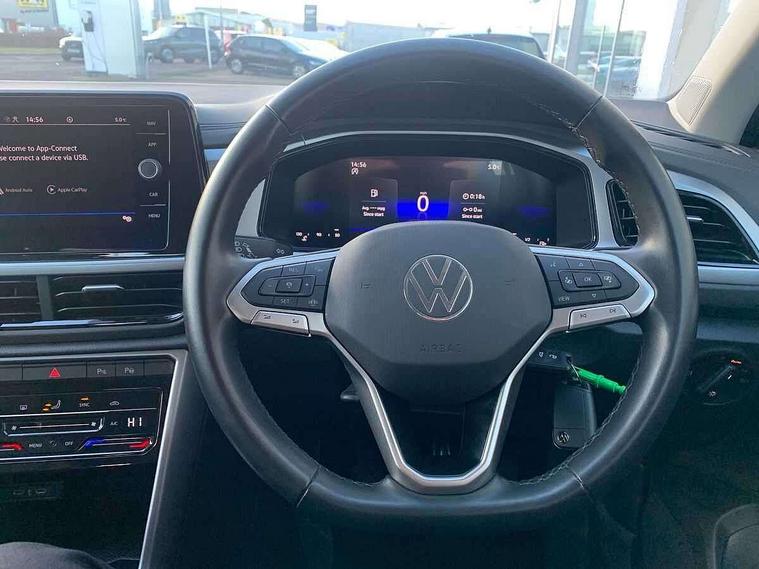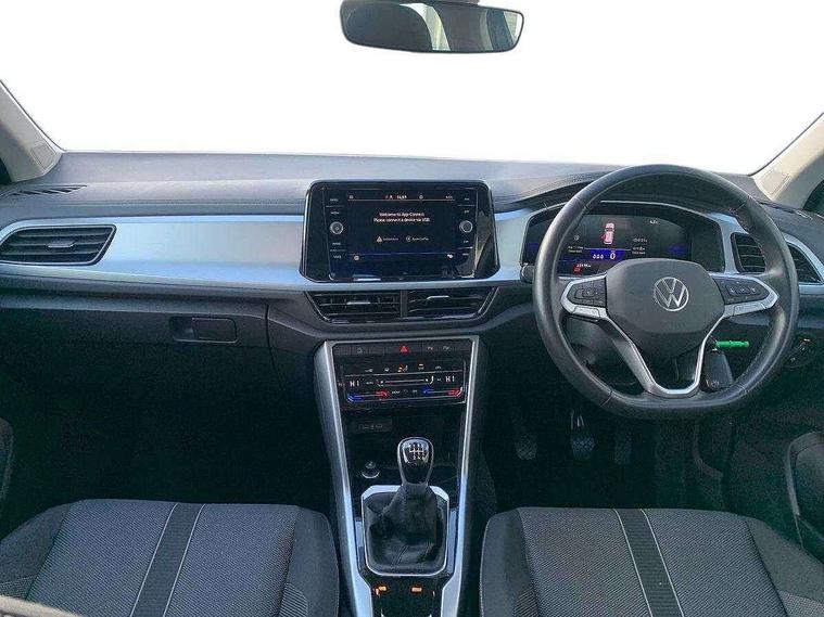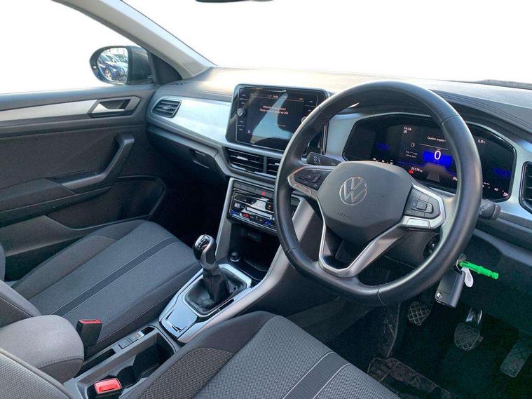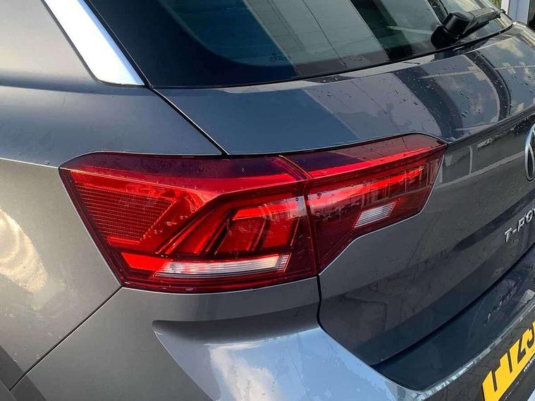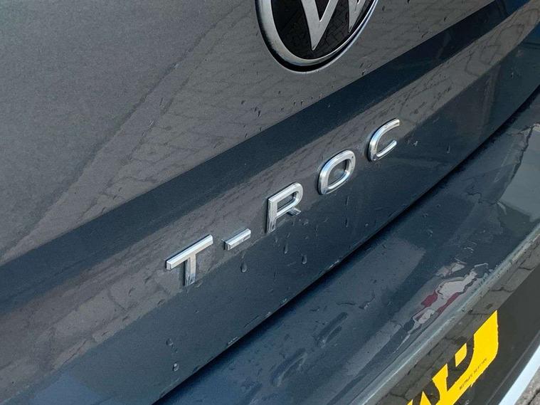 Bluetooth mobile phone interface, Driver alert system with fatigue detection, Driver tips and journey analysis, Emergency call service, Lane keeping system Lane Assist, Modified key software - reduce switch off time for key status change to Long no motion, Online services, Park assist including front and rear parking sensors, Power assisted speed sensitive steering, Service interval indicator, Tailgate/trunk lid release from outside, Think blue trainer driver tips and journey analysis, Warning sound and light for front seatbelts unfastened, Wireless app connect, Battery regeneration during braking, Front shock absorption, Rear shock absorption chassis with increased ride height, Start/stop function with battery regeneration, DAB Digital radio, Diversity antenna for FM reception, Music playback - MP3, WMA and AAC files, Premium USB cable in choice of either Apple or Android smartphone compatibility, SD card slot, Simultaneous pairing of 2 compatible mobile devices, Title and cover art display, We Connect and We Connect Plus functionality, 3rd brake light, Auto dimming interior rear view mirror, Automatic hazard lights activation under emergency braking, Automatic headlight control with LED separate daytime running lights with coming/leaving home function, Black roof rails, Body coloured bumpers and radiator grille with chrome trim and front fog lamps with chrome bezel, Body coloured exterior mirror housings and door handles, Extended roof spoiler, Exterior mirrors aspherical on driver side, convex on front passenger side, External USB type C socket and charging sockets, Front windscreen wiper with intermittent wipe and 4 position delay, Heated rear window, LED rear combination lamps, LED rear number plate lights, LED tail lamp rear comination lamps, Power windows with comfort operation and circuit breaker, Rain sensor, Rear exhaust tailpipe, Rear fog light on one side and reversing lights on both sides, Rear side wing doors, Rear wash/wipe with intermittent wipe setting, Remote electrically foldable door mirrors, puddle lights and reverse activated passenger's door mirror, 12V power socket in centre console, 3 rear head restraints, 3 seat bench in 2nd row, 4 load lashing points in luggage compartment, Air care climatronic air conditoning system with active combination filter and 2-zone temperature control, Ambient lighting with mirror logo projection, Cloth upholstery, Door and side trim panel in cloth, Drawer under drivers seat, Driver/front passenger seat height adjustment, Front centre armrest, Front comfort sports seats, Front cupholders x 2, Front reading light, Instrument lighting, white adjustable panel illumination, Interior light delay, Isofix child seat preparation, Leather gearshift handle, Load-through provision with cup holder when folded down ('Unsplit rear seat bench, split folding backrest, with centre armrest), Luggage compartment lighting, Lumbar support for driver's and front passengers seat, Non-folding front passenger seat backrest, Single front passenger seat, Storage compartment in left and right luggage area, Storage compartment in rear doors, Storage compartments in driver and front passenger doors, Sunvisors with illuminated vanity mirrors, Variable boot floor, height adjustable and removable, Driver assistance pack without proactive passenger protection - T-Roc, 3 point height adj front seatbelts + pretensioners, 3 point seatbelts in outer rear with ECE label, ABS, Child locks on rear doors, Driver and front passenger airbag with front passenger airbag deactivation, Driver and front passenger safety-optimised head restraints, Drivers seatbelt reminder, Electronic parking brake, Electronic Stability Control (ESC) inc EDL (Electronic Differential Lock) and ASR (Traction Control), Front and rear passengers curtain airbag system including front side airbags, Front assist with city emergency braking and pedestrian monitoring, Front disc brakes, Front seat side impact airbags, Hill start assist, Predictive pedestrian protection, Rear disc brakes, Single tone horn, Tyre pressure loss indicator, Volkswagen roadside assistance, Alarm with interior protection, Anti-theft alarm system with interior monitoring, backup horn, and towing protection, Remote central locking with SAFELOCK, radio remote control with 2 remote control folding keys, Pewter matt decorative inserts for intrument panel, centre console and door panels at the front, Trims for alloy wheels,