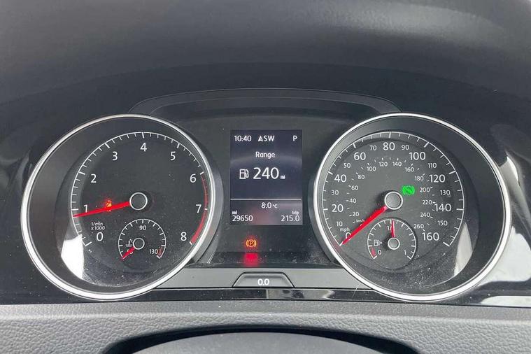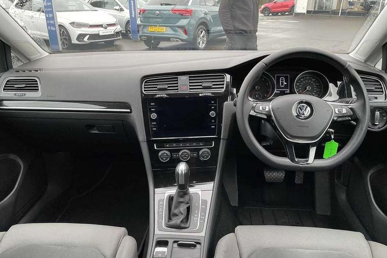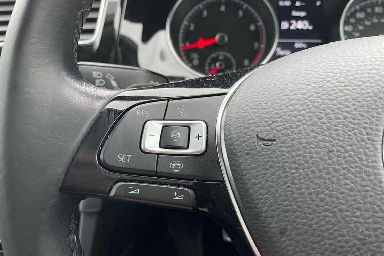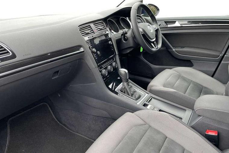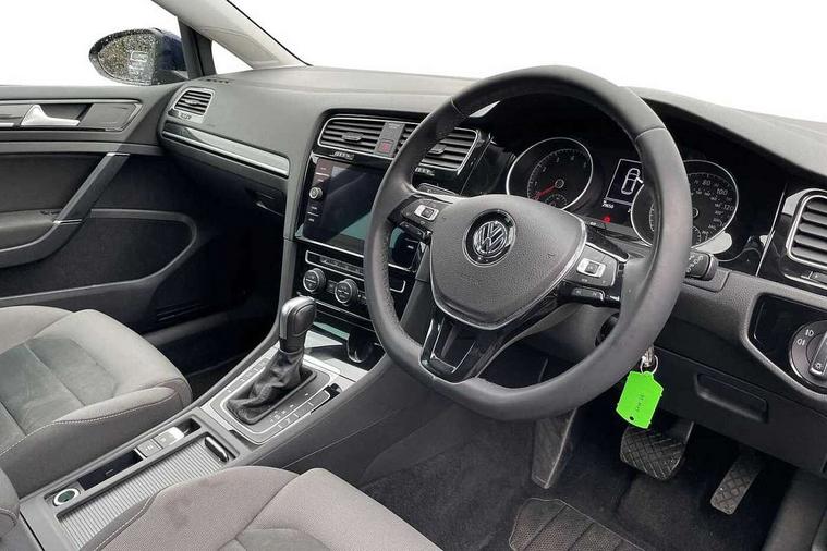 'Lights On' Reminder warning buzzer, ACC - Adaptive cruise control with front assist, forward collision warning, distance monitoring, city emergency brake and speed limiter, Bluetooth telephone and audio connection for compatible devices, Brake pad wear indicator warning light, Driver alert system, Driving Mode Selection with four preset modes - Eco, normal, sport or individual modes, Multifunction computer with visual gear change recommendation for fuel consumption, Power assisted speed sensitive electro-mechanical steering, Push tank flap, Speed limit display, Speedo, rev counter, electronic odometer, trip, service interval display, exterior temperature and fuel gauge, Stop/start system, Think blue trainer driver tips and journey analysis, Warning buzzer and light for front seatbelts unfastened, Battery regeneration during braking, XDS electronic differential lock, Composition media system, DAB Digital radio receiver, Driver Personalisation profile selection, MP3/WMA compatability, Multi device interface (MDI) via USB connection, Premium USB cable in choice of either Apple or Android smartphone compatibility, SMS Functionality, Title and cover art display, USB and SD card connectivity, Volkswagen media control, Black front air intake and radiator grille with chrome insert, Black rear diffuser, Body colour bumpers, Body colour door handles, Body colour door mirrors with integrated indicators, Chrome trimmed front air intake surrounds, Dusk sensor + automatic driving lights, Electric front windows, Electric rear windows, Electrically adjustable and heated door mirrors, Fully galvanised body, Heated rear windscreen, High level 3rd brake light incorporating LED Technology, LED front fog lights with static cornering light function, Range adjustable headlights via infotainment system with LED daytime running lights, Rear fog lamp, Rear number plate lights incorporating LED technology, Rear tinted glass 65% light absorbing from B pillar backwards, Rear window aerial, Rear window wash/wipe with intermittent wipe, Reflectors in all doors, Tailgate with integrated rear roof spoiler, Windscreen wipers/ intermittent wipe + 4 position delay, 12V socket in luggage compartment, 3 rear headrests, 4 load lashing points in luggage compartment, 60/40 split folding rear seat backrest, Bag hook in luggage compartment x 2, Climate control - 2 zone electronic air conditioning with automatic air recirculation and allergy filter, Cooled glovebox, Cover for storage compartment in centre, Dust/pollen filter, Front + rear carpet mats, Front centre armrest with storage compartment and two rear air vents, Front seat back storage pockets, Grab handles front x 2, rear x 2 with integrated coat hooks, Height and reach adjustable steering wheel, Illuminated vanity mirrors, Instrument lighting white adjustable panel illumination, Interior light delay, Isofix preparation for 2 rear child seats, Load through provision with rear centre armrest and cupholders x2, Luggage compartment lighting, Overhead storage box, Pearl grey headlining, Storage box in luggage compartment, Storage compartment in roof console with cover, Storage compartments in centre console, Storage compartments in front doors, Storage compartments in rear doors, Stowable luggage compartment cover, Sun visors, Variable boot floor, height adjustable and removable, Ambient lighting pack - Golf, Convenience Pack - Golf, Mirror pack - Golf, Winter pack - Golf, 3 rear three point seatbelts, Airbags - Driver's and front passenger's, curtain airbag, Driver's knee, front side impact and passenger's airbag deactivation switch, Anti-lock Braking System (ABS) with Hydraulic Brake Assist (HBA), Automatic post collision braking system, Child locks on rear doors, Driver/Passenger optimised head restraints, Electronic parking brake with auto hold, Electronic stability control (ESC) including Electronic differential lock (EDL) and ASR (Traction control) with deactivation via infotainment system, Front ventilated disc brakes and rear disc brakes, Pre crash preventive occupant protection, Three point height adjustable front seatbelts with tensioners, Tyre pressure loss indicator, Alarm with interior protection and deactivation via infotainment system, Electronic engine immobiliser, Chrome plated air vent surround, Chrome plated electric mirror adjustment switch surround, Chrome-plated light switch surround, Piano black decorative inserts in centre console, Tumbler decorative inserts, Steel space saver spare wheel,