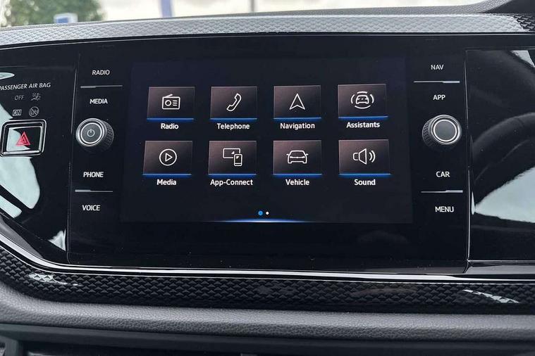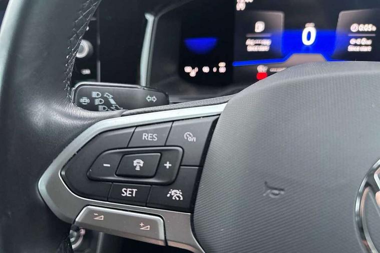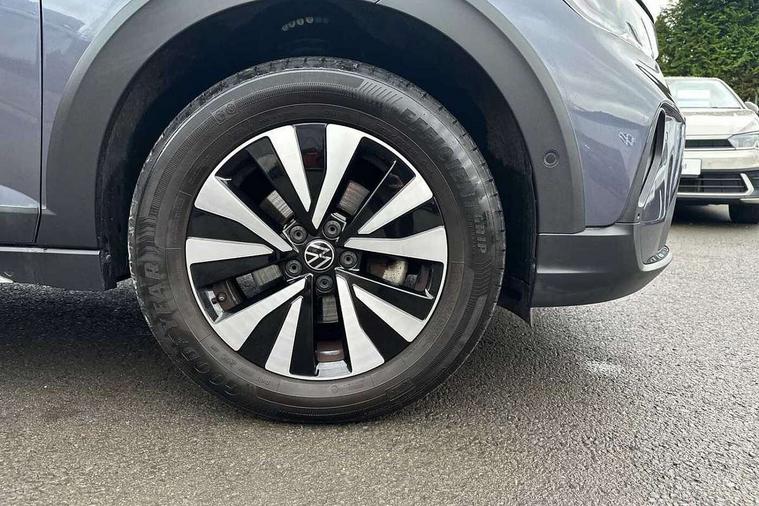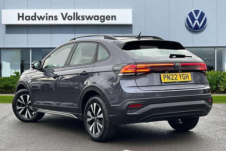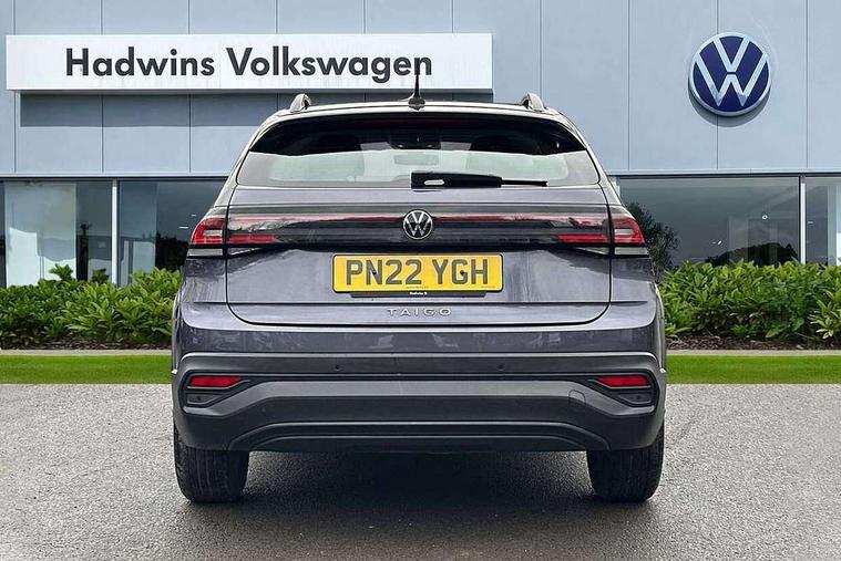 App-Connect including App-Connect Wireless, Driver alert system, e-Call (emergency call), Power Steering, Travel assist including emergency assist, Washer fluid level indicator, Wireless Charging including Bluetooth, Start-stop system with battery regeneration (recuperation - energy recovery during braking), Digital radio reception (DAB+), Diversity antenna for FM reception, WeConnect plus, Ambient lighting with logo projection, Aspherical driver's exterior mirror, Auto headlights, Body coloured bumpers, Body coloured exterior mirror housings and door handles, Electric windows, External USB type C socket and charging sockets, Front fog lamps with cornering function, Headlight range control, Heat insulating glass windscreen, LED headlamps, LED rear combination lamp, LED third brake light, Left convex exterior mirror, Power folding adjustable/heated exterior mirrors and front passenger exterior mirror lowering function, Rear fog light on one side, reversing light on both sides, Rear side wing doors, Rear wash/wipe with intermittent wipe setting, 'Slash/ Austin' Cloth upholstery, 12V socket in centre console, 2 front reading lights, 3 rear head restraints, 3 seat bench in 2nd row, Black carpets, Child seat anchor for child seat system i-Size, 2x top tether and child seat anchor in front on front passenger side, Door and side trim panels in titan black, Driver and front passenger seat height adjustment, Front centre armrest, Handbrake lever handle in leather, Height and reach adjustable steering wheel, Leather trimmed gear knob, Leather wrapped multifunction steering wheel, Luggage compartment floor, Luggage compartment light, Lumbar support for driver's and front passengers seat, Seat covers in titanium black, Single front passenger seat, Split folding backrest with centre armrest and unsplit rear seat bench, Storage compartment under front seats, Sun visors with illuminated vanity mirrors, Chrome Package - Taigo, Drivers assistance pack - Taigo, Light and Sight pack including High beam assist - Taigo, 2 x 3-point seatbelts/outer rear seats with ECE label, 3-point seat belts in front with pretensioner and height adjustment, 3-point seatbelt for centre rear seat, Driver and front passenger airbags with front passenger airbag de-activation, front side and curtain airbags, Driver and front passenger safety-optimised head restraints, Electronic stability control, Extended and predictive pedestrian/ cyclist protection, Front and rear disc brakes, Front curtain and side airbags with center airbag, Hill start assist, Manual rear child locks, Single tone horn, Tyre pressure loss indicator, Anti-theft alarm system with interior monitoring, backup horn, and towing protection, Anti-theft wheel bolts, Lava stone black gloss/matt decorative inserts in dash and front door panels, Low rolling resistance tyres,