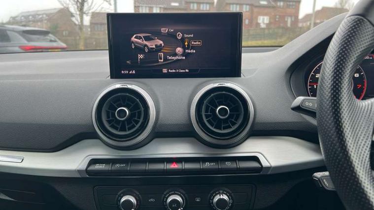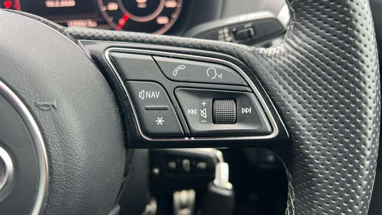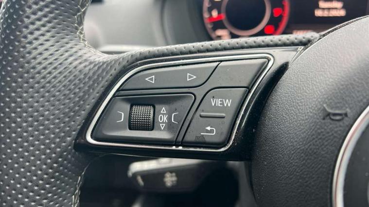 Aluminium interior element, Matt brushed aluminium trim inlays, Anti theft alarm, Anti theft wheel bolts, 2 x SDXC card reader, 8 passive loudspeakers, DAB Digital radio, DVD Drive, 3x3 point rear seatbelts, 6 airbags - Front, curtain and front side airbags, Electromechanical parking brake, Electronic stabilisation control including ABS, ASR and EDL, Hill hold assist, Pre-sense front with pedestrian recognition, Seatbelt monitoring, Tyre pressure warning light, Warning triangle and first aid kit, Auto dimming rear view mirror, Black window trims, Body colour door mirrors, Electrically adjustable, folding, auto dimming and heated door mirrors with integrated LED side indicators, Front windscreen with grey tinted sunband, LED headlights with LED rear lights, S Line badges on the front wings, S Line body styling - front and rear bumpers, side skirts, radiator grille, rear diffuser insert and front air intakes, Wheel arch trims in manhattan grey, 4-way electric lumbar support for front seats including seat height adjustment for both front seat, 60/40 split folding rear seat bench, Black cloth headlining, Electronically operated child locks, Front and rear head restraints, Front centre armrest, Front/rear floor mats, Height/reach adjust steering wheel, Illuminated door sill trims with S logo, ISOFIX child seat mounting for front passenger with airbag deactivation and outer rear seat including top tether attachment point for outer rear seats, Stainless steel pedals, Tool kit, Audi connect navigation and infotainment includes innovative services, Audi connect remote and control connects your vehicle to your smartphone, Audi drive select, Audi drive select with efficiency, Audi smartphone interface, Audi virtual cockpit, Automatic start/stop system with recuperation, Bluetooth interface includes bluetooth audio streaming, Cruise control, MMI navigation plus with MMI touch, Power operated tailgate, Progressive steering, Rear parking sensors,