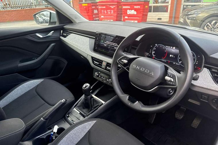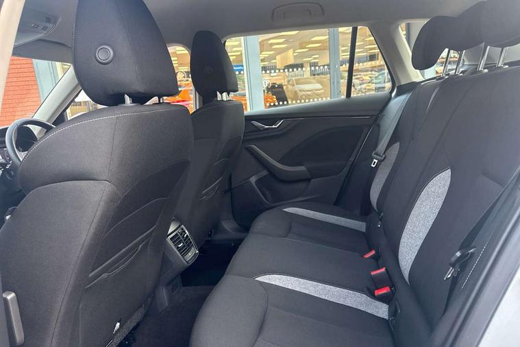 Advanced driver attention and drowsiness monitor, Bluetooth system, E-call, Front assist system, PAS, Rear parking sensors, Rear view camera, Service indicator, Speed limiter, Traffic sign recognition, Virtual cockpit with 10.25" display, Wireless smartlink, 4 USB C ports, 8 Speakers, 9.2" Skoda navigation display, DAB Digital radio, Auto dimming rear view mirror, Automatic headlight control with coming home and leaving home feature, Black roof rails, Body colour bumpers, Body colour door mirrors and handles, Chrome grille surround, Front and rear electric windows, Full LED headlights, Heated rear window, LED brake lights, LED daytime running lights, LED front turning lights, LED high beam, LED low beam, LED third brake light, Rear LED fog light, Rear side wing doors, Rear wiper, Ticket holder inside windscreen, 12V socket in luggage compartment, 3 seat bench in 2nd row, Black hotstamping, Cargo elements, Chrome inner door handles, Driver and passenger sun visors with vanity mirror, Dual zone climate control, Front and rear roof lights, Front centre armrest, Front head restraints, Glove compartment with illumination, Height adjustable driver seat, Height adjustable front passenger seat, Ice scraper, Inner circulation control with pollen filter, ISOFIX on front passenger seat, Isofix preparation for back seats, Krepp recycled decor inserts, Leather gearknob and handbrake lever, Loft cloth upholstery, Manual lumbar support for front seats, Net package and top tether hooks in boot space, Net under rear shelf, Overhead glasses storage compartment, Pocket on the back of both front seats include mobile phone pockets, Rake/reach adjustable steering wheel, Reading lights, Satin black door inserts, Single front passenger seat, Textile floor mats, Third rear headrest, Top tether for front passenger seat, Umbrella in driver's door, 3x3 point rear seatbelts, Airbags - driver and front passenger, Disc brakes, ESP, Extended and predictive pedestrian/cyclist protection, Front passenger airbag deactivation switch, Front side airbags with curtain airbags, Hill hold control, Manual leather parking brake, Manual rear child locks, One tone horn, Seatbelt reminder for driver an co-driver, Traction control, Tyre pressure monitor, Anti-theft alarm system with interior monitoring, backup horn, towing protection and remote central locking with SAFE system, Anti-theft wheel bolts, Electronic engine immobilizer,
