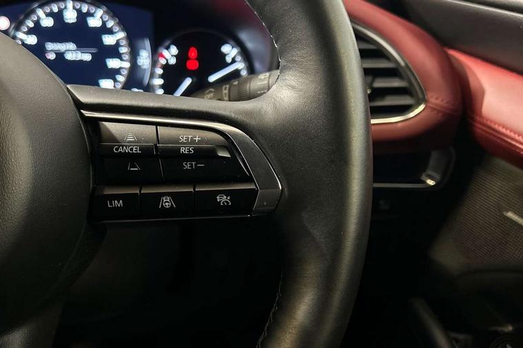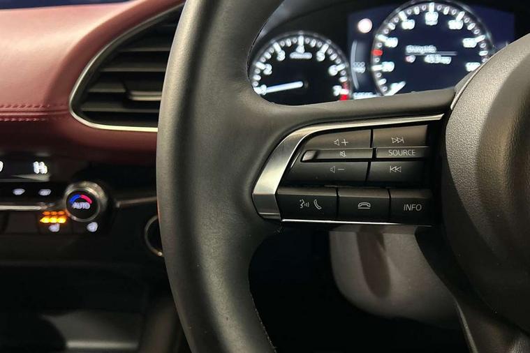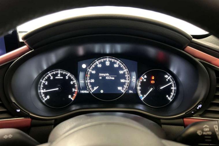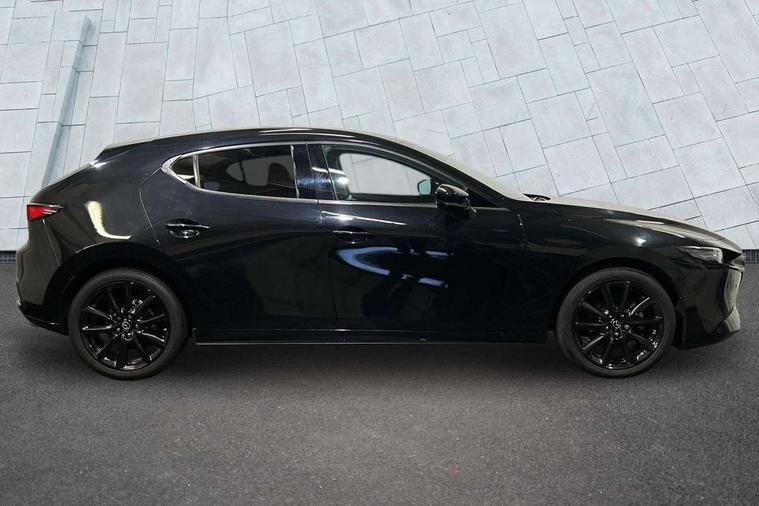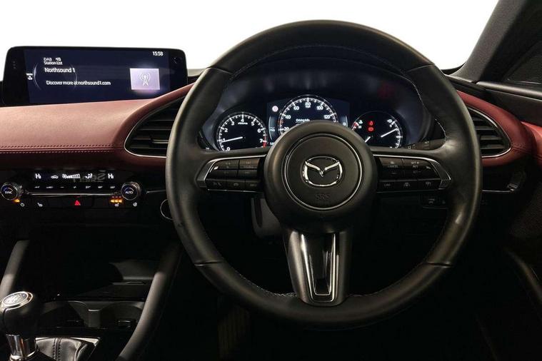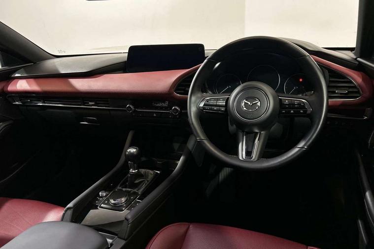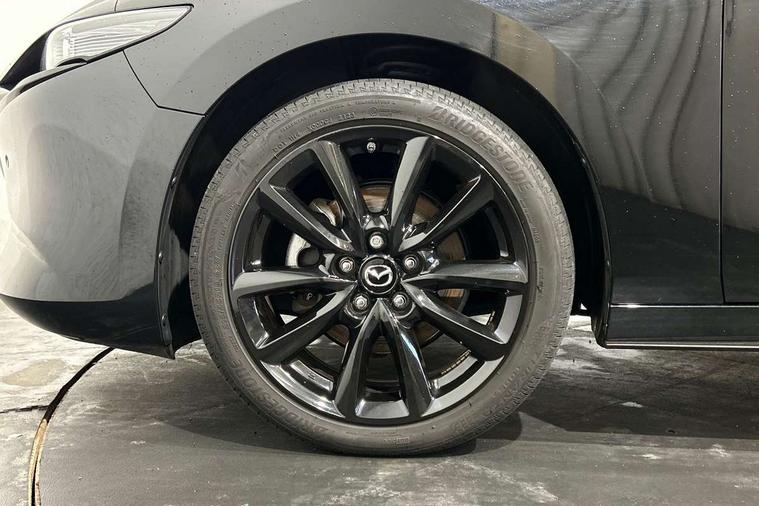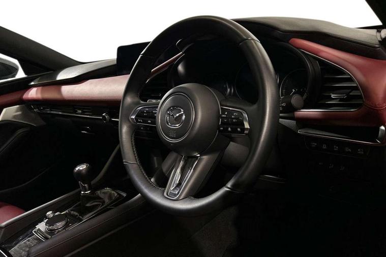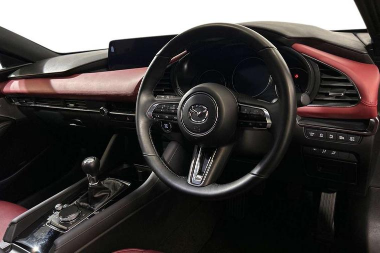 10.25" display with Mazda Connect infotainment, 360 View Monitor, 7" colour TFT display, Audio transfer from bluetooth devices, Blind spot monitoring with rear cross traffic alert, Colour active driving display inc Windscreen projected, Traffic Sign Recognition, turn-by- turn navigation and Mazda Radar Cruise Control information, Cruising Traffic Support, Digital instrument cluster, Driver attention alert system, Driver monitoring system, E-call with GPS, Emergency stop signalling system, Engine start/stop button, Front and rear parking sensor with audible and visual warning, Front Cross Traffic Alert, Integrated bluetooth with steering wheel mounted controls, Intelligent speed assist, Lane keep assist system (LAS) with Lane departure warning system (LDWS), Mazda connected services, Mazda Navigation System with european mapping, Mazda Radar Cruise Control, Mobile App interface, Multimedia Commander, PAS, Service indicator, Tailgate, Traffic sign recognition (TSR), Trip computer, Wireless Apple CarPlay/Android Auto, Wireless charging, i-stop, 2 USB-C ports in the front, Mazda Multimedia System with AM / FM / DAB radio with 12 Speaker Bose sound system, bose centerpoint, bassmatch+audiopilot technology, Adaptive LED Headlights, Auto dimming driver's door mirrors, B-pillar garnish in piano black, Body coloured door mirrors, Coming/leaving home lighting function, Dark metallic finish signature wing, Door mirrors with adjustable memory and tilt-down function when reversing, Dual chrome tailpipes tip, Dusk sensing headlights, Electric front/rear windows with one touch/auto up/down, Electrically adjustable, heated auto power folding door mirrors, Frameless auto dimming interior rear view mirror, Front body coloured bumper with black lower bezel, Front kodo turn signal, Front wiper de-icer, Gloss black finish front grille, Gloss black rear roof spoiler, LED auto headlight levelling, LED indicator lights, LED third brake light, Power tilt and slide sunroof, Privacy glass with dark tinting on rear side windows and rear window, Rain sensing front wipers with adjustable sensitivity and speed, Rear colour coded bumper with gloss black lower moulding, Rear fog lights, Rear side wing doors, Signature LED daytime running lights, Signature LED rear combination lights, Speed adjustable rear wash wiper with intermittent wipe, 12v electrical power outlet, 3 seat bench in 2nd row, 60/40 split fold down rear seats, Chrome interior trim accents with steering wheel centre bezel, surround of engine start / stop button and glove box handle, Dark roof headlining, ceiling and pillars, Dark vinyl leather door panel inserts, Driver's seat power slide, recline, height, seat tilt and lumbar adjustment with head up display and driver door mirror memory, Driver, front passenger and two rear door pockets, Driver, Front passenger and two rear grab handles with coathooks, Driver/passenger sunvisors + vanity mirrors (drivers side with ticket holder), Dual zone climate control air conditioning, Folding rear centre armrest with two cup holders, Front and rear courtesy lamps, Front armrest, Front centre storage with two cupholders, Front head restraints, Front passenger seatback pocket, Front passengers seat manual slide, recline and height adjustment, Gear shift indicator, Heated front seats with 3 stage setting, Heated steering wheel, Illuminated glovebox, ISOFIX child seat anchorage points attached on outer rear seats, Leather upholstery, Leather wrapped gear shift knob, Leather wrapped steering wheel, LED interior light, LED light in luggage compartment, Power outlet in luggage compartment, Roof mounted sunglasses holder, Single front passenger seat, Three height adjustable rear head restraints, Tilt/height adjustable steering wheel, 3 point ELR front seatbelts with pretensioners, 3 rear 3 point seatbelts with ELR, Anti-lock braking system (ABS), Drivers knee airbag, DSC - Dynamic Stability Control, Dual stage driver and single stage passenger airbags, EBD - Electronic brakeforce distribution, Electronic parking brake with auto disengage function and auto hold function, Front and rear curtain airbags, Front passenger airbag cut-off switch, Front side airbags, Front smart city brake support, G-Vectoring control plus, Hill launch assist, Intelligent Traction Control system, Manual child lock in rear doors, Mild Hybrid system with regenerative braking, Rear crossing smart brake support, Rear smart city brake support, Seatbelt reminder for driver/front passenger and rear seats, Tyre pressure monitoring system (TPMS), Auto door lock when driving, Remote central locking + deadlocks, Smart keyless entry, Thatcham accredited alarm and immobiliser, 18" Black alloy wheels, Emergency tyre repair kit,