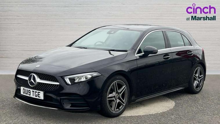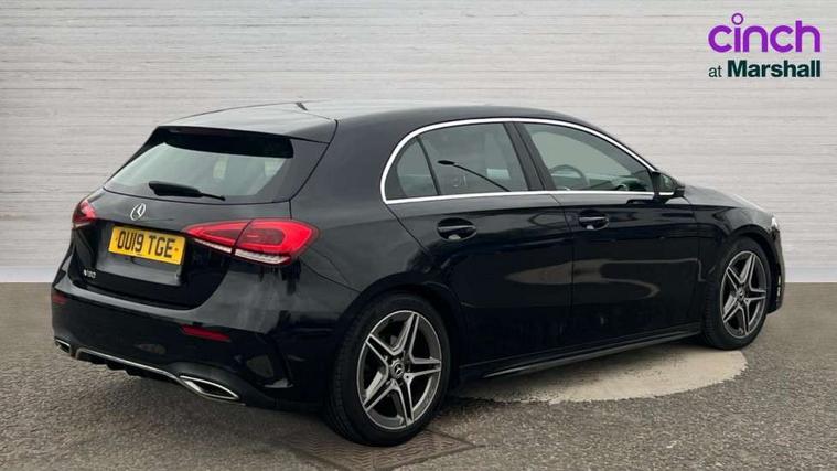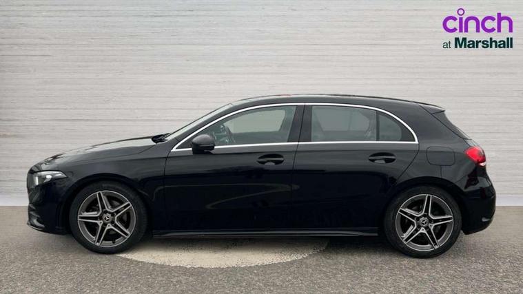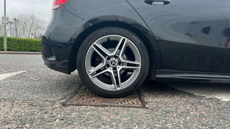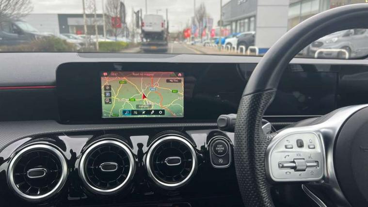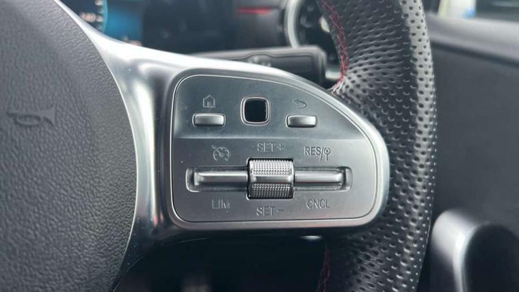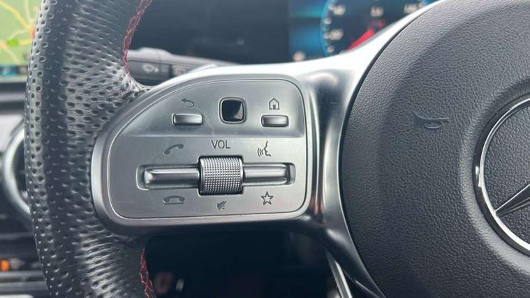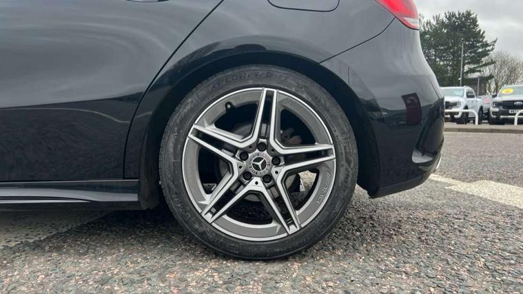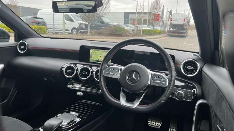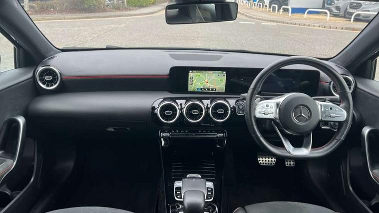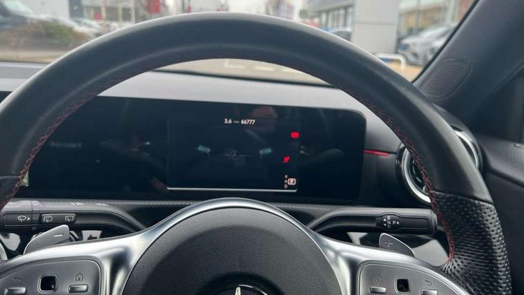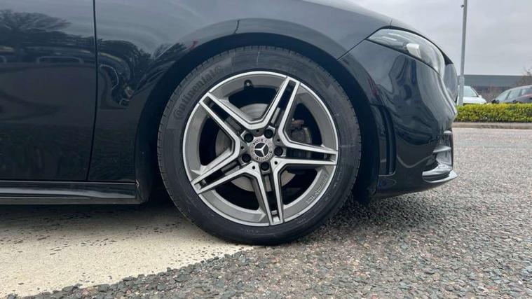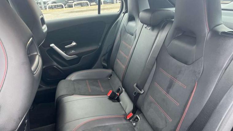 180 degree rear view camera with parking guidelines, 7" colour screen in instrument panel, 7" touchscreen media display, Active lane keep assist, Attention assist, Brake pad wear indicator warning light, Cruise control + speed limiter, Direct steering, Direction indicators with lane change function, DYNAMIC SELECT with a choice of driving modes (ECO, Comfort, Sport, Sport+ and Individual), Fluid level warning indicator for fuel, oil, coolant and washer fluid, Hard-disk navigation, Lamp failure indicator, Mercedes me connect including emergency call system, accident recovery, breakdown management and maintenance, Outside temperature gauge, Radio aerial integrated into roof spoiler, Service indicator (ASSYST), Speed sensitive power steering, Stop/start system, Trip computer, Voice activation, Lowered comfort suspension, DAB Digital radio, Dual bluetooth interface, 2 USB ports (type C), MBUX multimedia system with DAB digital radio and touchpad including satellite navigation, Active aerodynamics with AIRPANEL in the front apron, Adaptive brake lights, AMG front, rear apron and side skirts, Blue tinted glass, Body colour bumpers, Body colour door handles, Body colour side skirt, Body coloured door mirrors, Chrome beltline trim, Diamond radiator grille with chrome pins and silver louvre + chrome insert, Electric adjustable and heated door mirrors with integrated LED side indicators, Electric front windows, Electric rear windows, Exhaust system - Twin trapezoidal tailpipes in polished stainless steel, Headlamp assist automatic headlamp activation, Heated glass rear windscreen + timer control, LED high performance headlamps with integrated LED daytime running lights, LED tail lamp, LED third brake light, Rain sensor windscreen wipers, Rear fog lights, Rear wiper, 12V socket, 3 Spoke flat bottom leather multi function steering wheel with perforated leather in grip area, 40:20:40 split folding rear seats, Air vents surround and cruciform nozzle in silver chrome, AMG floor mats with red stitching, Artico man-made leather/Microfibre Dinamica upholstery with red contrast stitching, Auto Mercedes-Benz child seat recognition sensor, Black roof lining, Brushed stainless steel sports pedals with rubber studs, Controller on centre console with chrome surround, Cup holder and stowage compartment lighting, Front centre armrest with storage compartment, Front door sills with Mercedes Benz lettering, Front doors with ambient and signal light, Front footwell lights, Front reading lamps, Front seat backs luggage nets, Front seat cushion length adjustment, Front signal exit lamp, Front vanity lights, Gearshift paddles on steering wheel, Handle recess/closing light, Height/reach adjustable steering column, Illuminated glovebox, ISOFIX Child seat top tethers and anchor fixings, Load securing rings in luggage compartment, Luggage compartment cover, Manual height adjustable front seats, Oddments tray lighting, Rear head restraints, Rear Reading Lamps, Seat occupancy sensor for front passenger seat, Sports seats with integrated headrests, Storage compartment under load area floor, Sunvisors with illuminated vanity mirrors, Touchpad, Touchpad illumination, Twin front cupholders, Two zone thermotronic luxury automatic climate control, Seat comfort pack - A Class, 3 rear 3 point seatbelts, ABS with Brake Assist, Active bonnet, Active brake assist includes forward collision warning system with autonomous braking, Adaptive brake assist with hold function and hill start assist, Black seatbelts, Brake calipers with Mercedes-Benz lettering + perforated brake discs, Childproof locks manually operated for rear doors and electrically operated for rear power windows, Crash responsive emergency lighting, Driver and passenger head and side airbags, Drivers knee airbag, Dual stage driver/passenger airbags, Electronic parking brake, ESP curve dynamic assist, ESP with ASR, Front and rear seatbelt reminder, Tyre pressure monitoring system, Warning triangle and first aid kit, Window airbags, Alarm system/interior protection/immobiliser, Keyless Go, Remote central locking and crash sensor with emergency opening function, 18" AMG 5 twin spoke light alloy wheels in titanium grey with highsheen finish, Tirefit sealant kit,