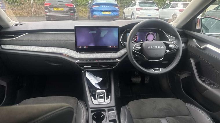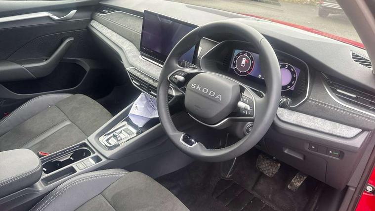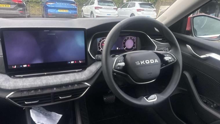 1x USB Typc C port in rear view mirror, 4x USB Type C ports - 2x in front centre console and 2x in rear (45W), Drive mode selection, Driver fatigue sensor, eCall emergency system, Electro-mechanical power steering, Front assist system, Traffic jam assist, Traffic sign recognition, Turn Assist, Virtual Cockpit - 10.25" digital display, Voice control system, Wireless charging (15W) with cooling function, Wireless SmartLink for Apple CarPlay and Android Auto, 13" touchscreen display with navigation, DAB Digital radio, Aero front windscreen wipers with intermittent function, Auto dimming rear view mirror, Body colour bumpers, Body colour door mirrors and handles, Chrome grille surround, Chrome roof rails, Chrome strip in lower front bumper, Chrome window surrounds, Electric front and rear windows, Heated rear windscreen, High level third brake light, Ice scraper in fuel cap, LED daytime running lights, LED Headlights, Logo projection in front doors, Rain and light sensors, Rear fog light on one side, Rear privacy glass, Rear side wing doors, Rear spoiler, Rear window wiper, 12 volt socket in boot, 3 rear headrests, 3 seat bench in 2nd row, 4 foldable roof handles, Front head restraints, Heated front seats, Illuminated glovebox, Interior door handles in dark chrome, Jumbo Box storage, Luggage compartment lighting x2 lights, Mechanical rear seat release from boot, Single front passenger seat, Steering wheel in black leather with black stitching, Storage compartments in left and right of boot, Sun visors with mirrors, Sunglasses storage, Ticket holder, Umbrella in door panel, Unsplit rear bench seat, split folding backrest with centre armrest with cupholder, Comfort package - Octavia Estate, Simply clever package premium - Octavia, 3x3 point rear seat belts, Alarm with interior monitoring, tilt sensor and back up horn, Curtain airbags and front side airbags, Driver and front passenger airbags, Drivers knee airbag, Electronic parking brake, ESC including ABS, EBV, MSR, ASR, EDS, HBA, DSR, Front central airbag, Hill hold assist, ISOFIX on front passenger seat and outer rear seats, Passenger airbag deactivate switch, Three point seat belts in front and rear, Two tone horn, Tyre pressure monitor, Visual and acoustic seat belt reminder, Warning reflectors in front door, Anti-theft wheel bolts, Keyless start/stop, Remote central locking, Chrome air vent surrounds,