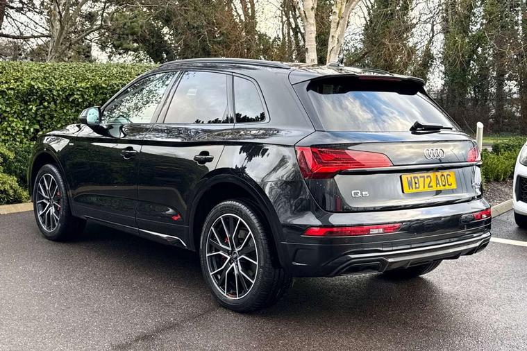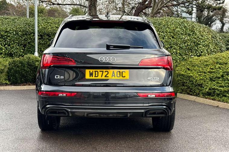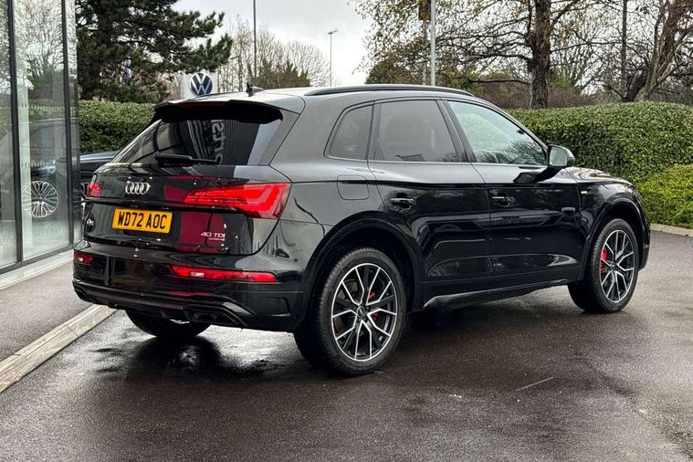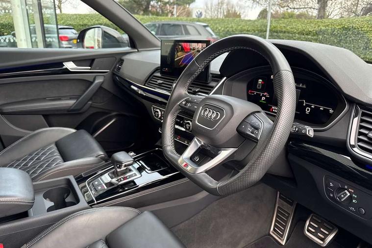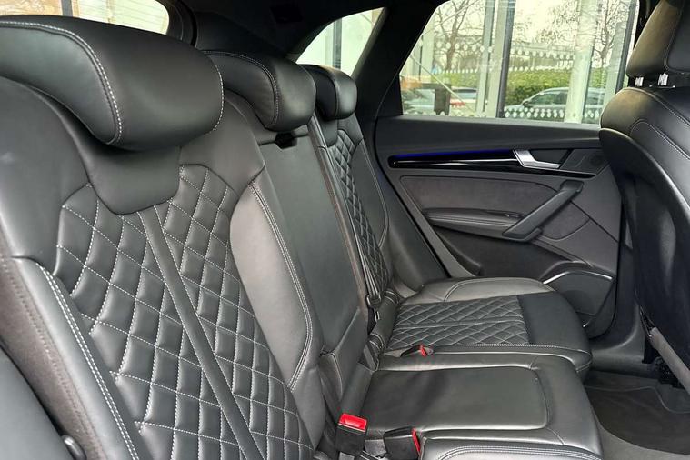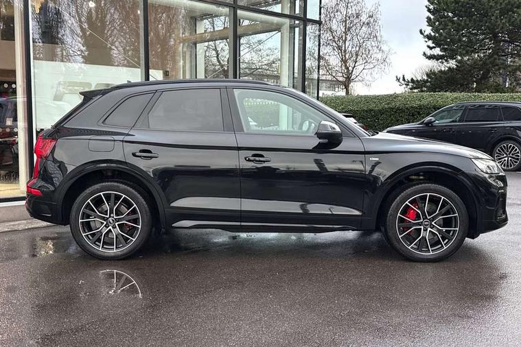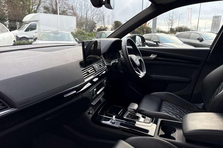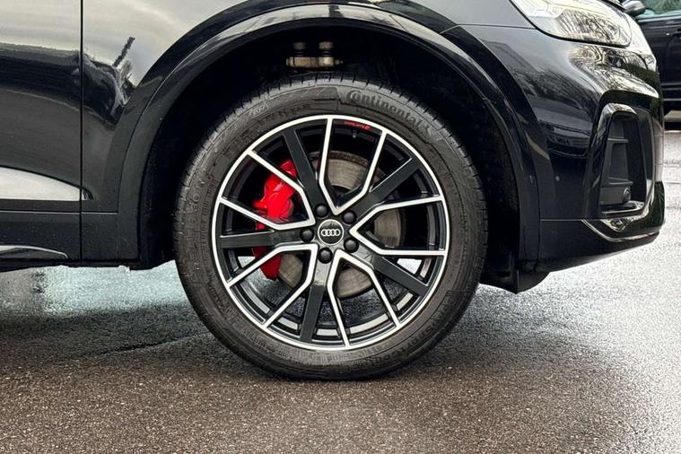 Audi connect safety and service (e-call), Audi connect with Amazon Alexa Integration, Audi drive select, Audi virtual cockpit plus with 12.3" screen and three different layout designs, Audi wireless smartphone interface, Automatic start-stop system with coasting functionality and efficiency programme, Bluetooth interface, Electro - mechanical power assisted steering, MMI navigation plus with 10.1" touch screen, Power tailgate, Reversing camera, Service interval indicator, Voice control system with Audi hotword activation "Hey Audi", Diesel particulate filter, Quattro on demand, S line sports suspension, 2 x USB charging port with aux input socket, DAB Digital radio, Acoustic windscreen, Audi matrix LED headlights with dynamic front and rear indicators, Audi rings at front and rear in black, Audi rings decal on rear doors, Auto dimming door mirrors, Auto dimming rear view mirror, Automatic headlight adjustment, Automatic headlights and windscreen wipers, Black roof rails, Body colour bumpers, Body colour underbody protection, Chrome plated exhaust trims, Daytime running lights, Door sills in Selenite silver, Electric adjustable/heated/folding door mirrors, Front air inlet surrounds in titanium black, Front and rear electric windows, Headlight washers, High gloss black B pillar trims and triangular rear door trim, High level LED brake light, Rear chrome trim strip below lights, Rear privacy glass and rear side windows, Rear side wing doors, Rear wiper, Roof bars, S Line rear spoiler, 3 rear headrests, 4 way electric lumbar support for driver and front passenger, 40:20:40 split folding 3 rear bench seat in 2nd row with rear centre armrest, Black cloth headlining, Comfort front centre armrest, Contrast stitching on seats, steering wheel and gear lever gaiter, Deluxe 3 zone electronic climate control, Electrically adjustable front seats, Fine Nappa leather upholstery with diamond pattern contrast stitching + front sport seats with S embossed logo, Front/rear floor mats, Gear lever in black leather, Heated front seats, Height adjustable front head restraints, Height/reach adjustable steering column, Illuminated door sill trims with S logo, ISOFIX child seat mounting and top tether, Luggage compartment cover, Rear seat bench plus, Removable luggage compartment floor, Single front passenger seat, Stainless steel pedals, Sunvisors with vanity mirrors, Black styling package - Q5 Edition 1, Extended interior upholstery pack - Q5, Extended LED Interior multi coloured Lighting Pack - Q5, 3 point seatbelts on all seats, 6 airbags - Driver, front passenger, curtain and side airbags, Electrically operated child locks on rear doors, Electromechanical parking brake, Electronic stabilisation control including ABS, ASR and EDL, Front and rear brake calipers painted in red, Front passenger airbag deactivation, Hill descent control, Hill hold assist, Multi collision brake assist, Pop-up bonnet for pedestrian protection, Pre sense city, Seat belt force limiter, Seatbelt monitoring, Tyre pressure warning, Warning triangle and first aid kit, Anti theft alarm, Anti-theft wheel bolts, Keyless Go access/ignition system, Remote central locking, Piano black finish inlay,