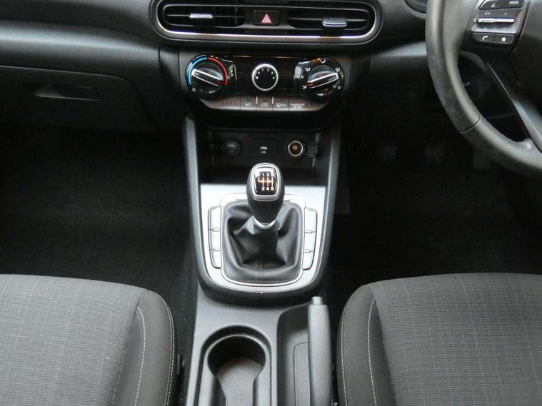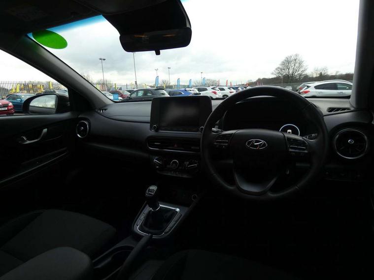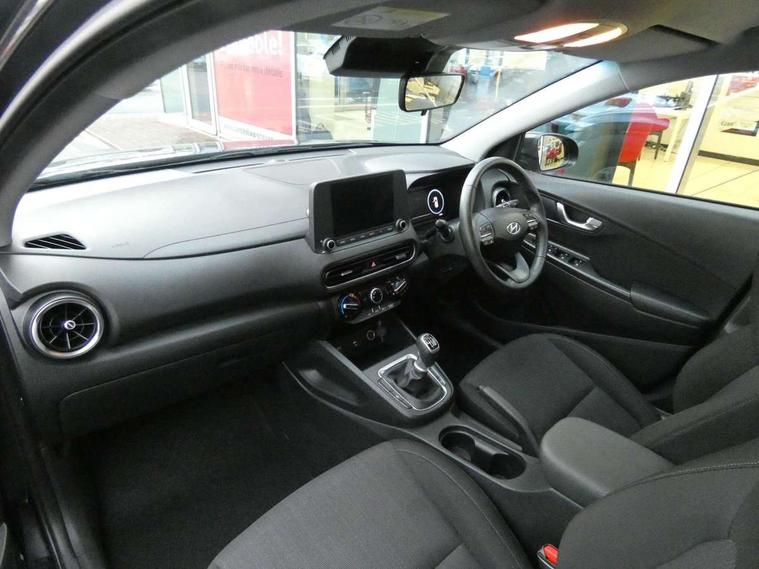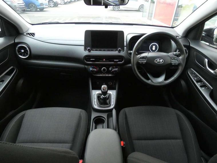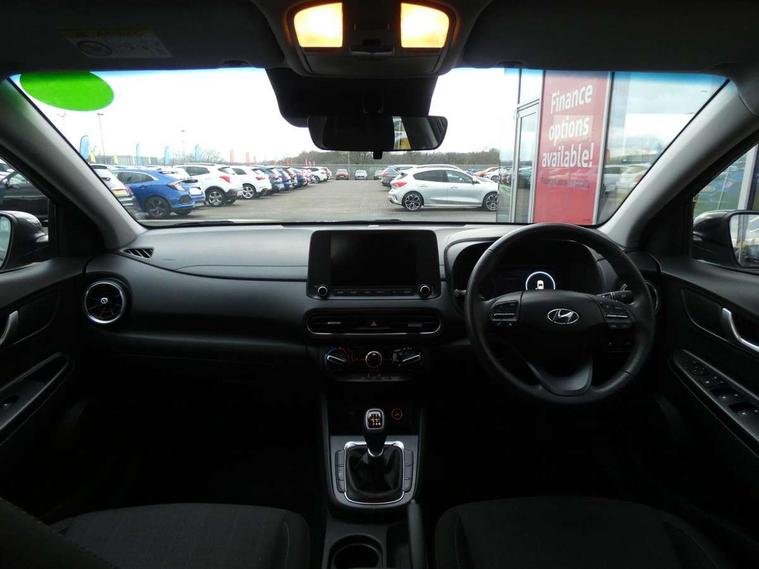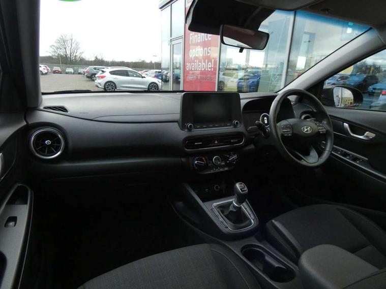 8" Touchscreen display audio + smart device integration, Bluetooth connectivity, Cruise control + speed limiter, Digital clock, Driver attention warning, Driver supervision instrument cluster with 10.25" LCD display, eCall emergency call system, Forward collision avoidance assist with pedestrian detection, Lane follow assist, Lane keep assist, Leading vehicle departure alert (LVDA), Parking system with rear camera and guidance system, PAS, Phone connection with apple carPlay and android auto, Rear parking sensor, Roadside assistance, Tailgate, Windscreen washer fluid sensor and warning indicator, 6 speed intelligent manual transmission, 6 speakers (2 front, 2 tweeters, 2 rear), Front USB ports, RDS and Digital DAB, Steering wheel mounted audio/phone controls, Automatic headlights with dusk sensor, Body colour door mirrors and handles, Door mirror integrated indicators, Electric front/rear windows with drivers one touch/anti-trap, Electrically adjustable and heated door mirrors, Halogen headlights, Halogen rear lights, LED daytime running lights, Positioning Lights - LED, Rain sensor, Rear roof spoiler with integrated LED brake light, Rear side wing doors, Rear wiper, Roof rails, Tinted glass with front door glass and windscreen with shade band, Variable front intermittent wipers, 12V power outlet in front console, 3 seat bench in 2nd row, 60/40 split folding rear seat, Adjustable head restraints, Air conditioning, Centre interior light, Cloth upholstery, Door scuff plate, Driver's seat height adjustment, Driver/passenger sunvisors and illuminated vanity mirrors, Front interior light, Front passenger seat manual adjustments, Height/reach adjustable steering column, Isofix rear child seat fastenings, Leather wrapped steering wheel and gear knob, Luggage compartment lighting, Luggage hooks, Metal paint effect interior door handles, Parcel shelf, Rear centre console with air vents, Single front passenger seat, Sunglasses holder, Vertical adjustment rear head restraints, Trailer wiring package - Kona, Airbags - front, front side and curtain airbags, Anti-lock brake system (ABS), Childproof rear door locks, Downhill brake control, EBD + Brake Assist, Electronic stability control, Fasten seatbelt reminder, Fixed 3 point for second row centre passenger seatbelt, Front seatbelt pretensioners, Height adjustable front seatbelts, Hill start assist control (HAC), Manual parking brake, Passenger airbag deactivate switch, Rear seat alert, Traction control, Tyre pressure monitoring system, Alarm/immobiliser, Deadlocks, Folding key, Locking wheel nuts, Remote central locking, 17" Alloy wheels,