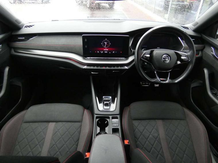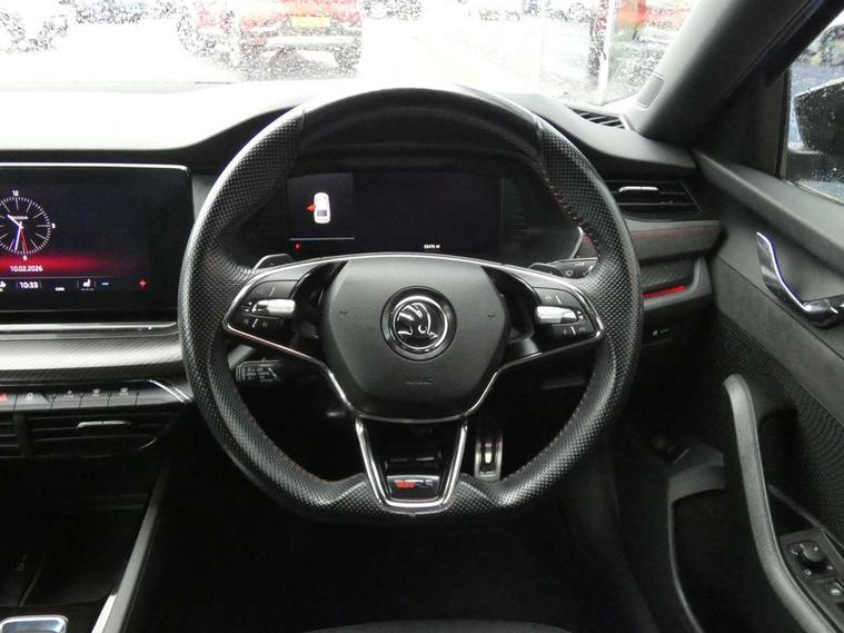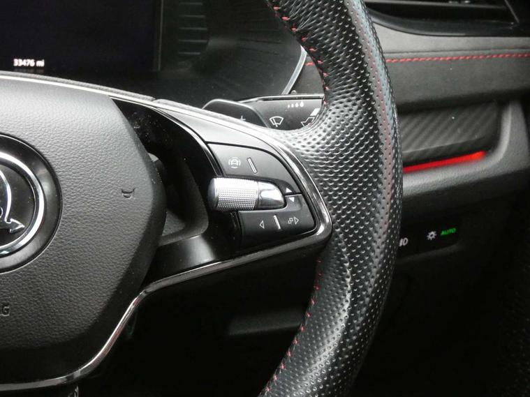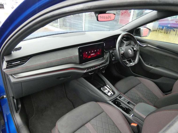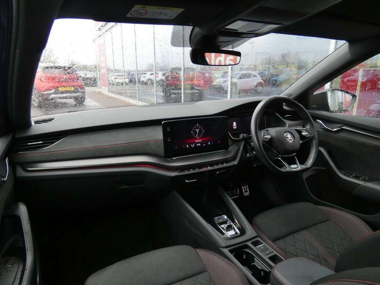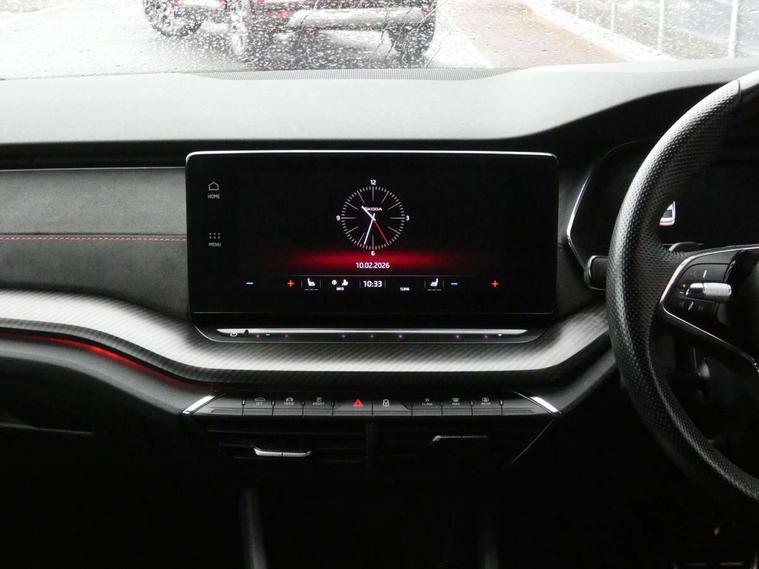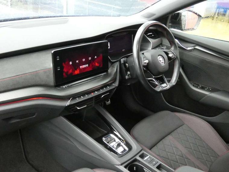 1x USB Type C port in rear view mirror (charging only), 2x USB Type C ports in rear of front centre armrest (charging only), Bluetooth system, Columbus satellite navigation with 10" touchscreen display, Driver fatigue sensor, eCall emergency system, Front and rear parking sensors with manoeuvre assist, Front assist system, Progressive dynamic steering, Speed limiter, Turn Assist, Virtual Cockpit - 10.25" digital display, Virtual pedal with electrically operated boot door (Rear LED lights (high functionality), dynamic indicators, Voice control system, Wireless SmartLink for Apple Car Play, Electronically controlled limited slip differential, Front and rear stabilizers, 2x USB Type C ports (for charging and data transfer), 8 Speakers, DAB Digital radio, Aero front windscreen wipers with intermittent function, Auto dimming rear view mirror, Body colour door handles, Chrome exhaust tailpipes, Door sills with vRS logo, Electric front and rear windows, Exterior gloss black sports styling including front grille, side strip, window surrounds, door mirror and badging, Full LED Matrix headlights with AFS, rear LED lights (high functionality) and dynamic indicators and cornering front fog lights, Headlight washers, Heated rear windscreen, High level third brake light, Ice scraper in fuel cap, LED daytime running lights, Rain and light sensors, Rear fog light on one side, Rear privacy glass, Rear side wing doors, vRS bumpers and lip spoiler, 3 rear headrests, 3 seat bench in 2nd row, 4 foldable roof handles, Aluminium pedals, Black headlining, Black microsuede padded dash panel with red contrast stitching, Chrome inner door handles, Front centre armrest, Front head restraints, Heated front seats, Illuminated glovebox, Leather trimmed gearshift lever, Luggage compartment lighting x1 light, Mechanical rear seat release, Parcel shelf - folding, Single front passenger seat, Sunglasses storage, Textile floor mat set, Three spoke leather sports multifunction steering wheel with paddles, Ticket holder, Umbrella in door panel, Unsplit rear bench seat and split folding backrest, LED interior light pack - Octavia, 3 point front/outer rear seatbelts+pre-tensioners, Alarm with interior monitoring, tilt sensor and back up horn, Automatic door unlocking in case of crash, Automatic fuel cut off in case of crash, Automatic warning lights in case of emergency braking, Curtain airbags and front side airbags, Driver and front passenger airbags, Drivers knee airbag, Electronic parking brake, ESC including ABS, EBV, MSR, ASR, EDS, HBA, DSR, Front and rear disc brakes, Front central airbag, Hill hold control, Hill start assist, ISOFIX on front passenger seat and outer rear seats, Manual rear child locks, Passenger airbag deactivate switch, Pro active services, Red brake calipers, Two tone horn, Tyre pressure monitor, Visual and acoustic seat belt reminder, Warning reflectors in front door, Door locks with immobiliser, Keyless entry and start/stop including rear doors, Remote central locking, Carbon optic decorative inserts, Gloss black air vent surrounds, 19" Altair anthracite alloy wheels,