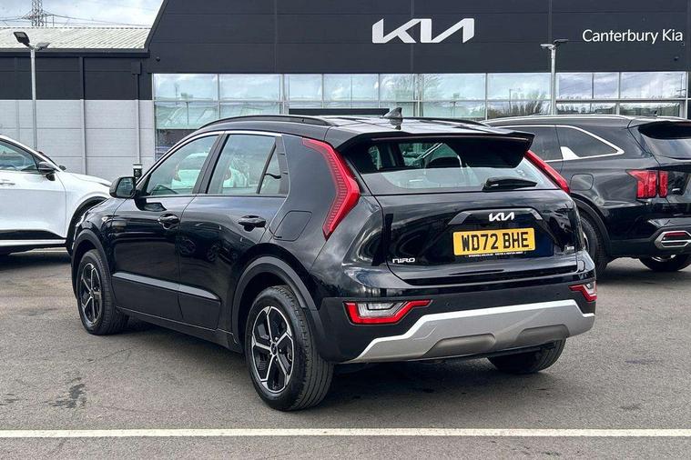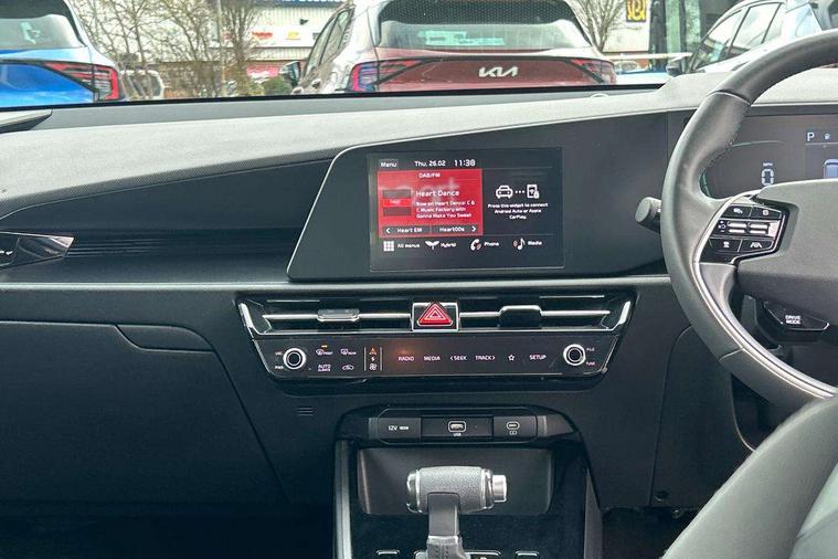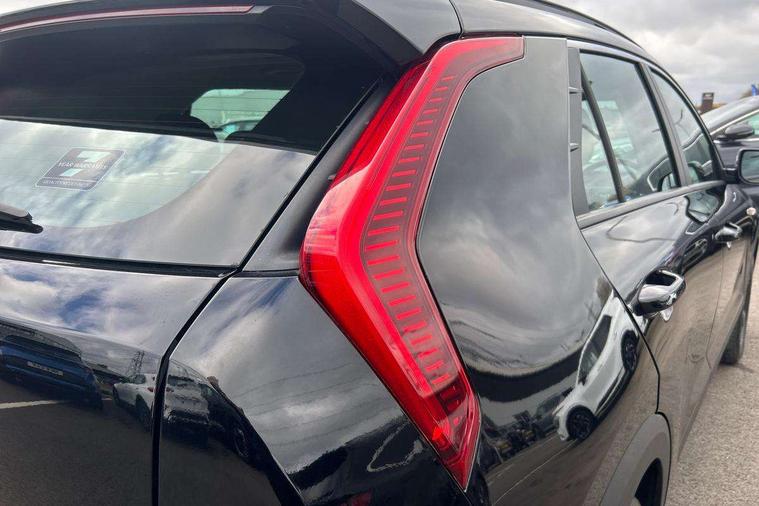 4.2" supervision colour cluster display, 8" touch screen, Adaptive smart cruise control function (SCC) with stop and go, Apple car play/Android Auto with voice control, Drive mode select (Eco, sport), E-call, Emergency stop signalling system, Forward Collision-Avoidance Assist (FCA) 1.5 - City/Pedestrian/Cyclist/Junction turning, Lane Following Assist (LFA), Lane keep assist, Motor driven power steering, Rear parking sensors, Reversing camera with dynamic guide lines, Speed limit assist, Tailgate, Trip computer with distance/fuel consumption/average speed, Sports H-Matic Automatic, 'Shark fin' mobile antenna, 2 type C USB ports on front seats, 2 USB ports in centre console including 1 type C, 6 speakers, Bluetooth with music streaming, DAB Digital radio, Steering wheel mounted controls, Acoustic windshield, All round electric windows with drivers auto up/down function, Auto dimming rear view mirror, Automatic defog system, Automatic headlight control system, Black beltline mouldings, Black embossed cladding, Body colour bumpers, Body colour door mirrors, Body colour exterior door handles, Dual LED headlights (low and high projection), Electric heated door mirrors, Front and rear silver skid plates, Heated rear window with timer, LED daytime running lights, LED rear combination lights, LED third brake light, Manual folding door mirrors, Rain sensor, Rear fog lights, Rear side wing doors, Rear spoiler, Rear wiper, Roof rails, Solar glass rear windows and tailgate, Solar glass windscreen, Welcome and follow-me home light functionality, Windscreen Washer Level Warning, 12V socket in front, 12V socket in luggage compartment, 3 seat bench in 2nd row, 60/40 split/folding 2nd row of seats, All-round height adjustable headrests, Artificial leather centre console storage box, Artificial leather steering wheel, Bulb overhead console, 2nd row and luggage lamp, Centre console cupholder, Cloth upholstery, Driver seat manual adjustment, Driver/passenger sunvisors with illuminated vanity mirrors, Dual zone automatic air conditioning, Front and rear door storage, H-Matic gear selection, Illuminated glovebox, Interior door lock/unlock function, ISOFIX Child seat top tethers and anchor fixings, Luggage area load cover, Luggage board, Metal paint interior door handles, Passenger seat height adjuster, Rear armrest, Single front passenger seat, Tilt/telescopic adjustable steering wheel, Towing pack - Niro, 3 point seatbelts on all seats, ABS, Automatic unlocking of doors in case of impact, Centre side front airbags, Curtain and side airbags, Drivers knee airbag, Dual shell horn, Electric parking brake with auto hold function, Electronic stability control, Front passenger airbag deactivation, Height adjustable front seatbelts, Hill start assist control (HAC), Manual rear child locks, Rear seat alert system, Traction control, Tyre pressure monitoring system, Alarm system and engine immobiliser, Deadlocks, Locking wheel nuts, Remote central door locking with fold away key, Visible vehicle identification number, Warranty - 7 Years/ 100, 000 miles, Graphite paint centre fascia, 16" alloy wheels, Tyre mobility kit,