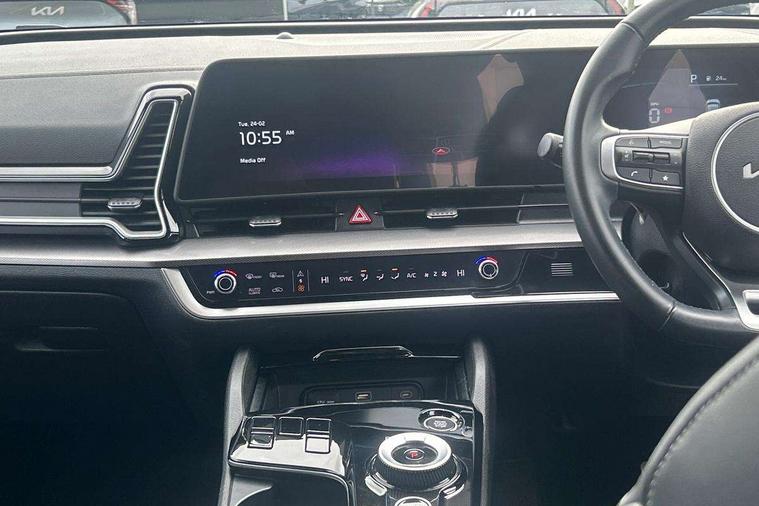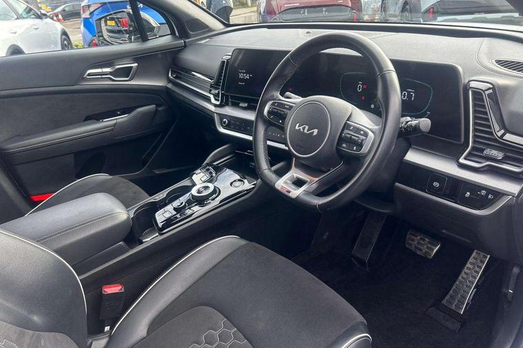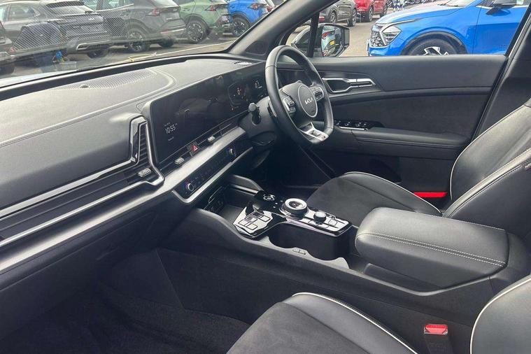 12.3" Display with navigation, 4.2" supervision colour cluster display, Apple car play/Android Auto with voice control, Drive mode selector, E-call, Forward collision avoidance assist (FCA) - city/pedestrian/cyclist/junction covering, Front and rear parking sensors, Highway Driving Assist (HDA), Intelligent speed limit assist, Kia Connect (UVO), Lane Following Assist (LFA), Lane keep assist, Low washer fluid warning, Rear view monitor, Reversing camera system integrated into centre fascia screen, Smart cruise control with stop and go functionality, Speed sensitive power steering, Trip computer, Windscreen washer level indicator, Intelligent Stop and Go, 6 speaker audio system, Bluetooth audio streaming, DAB Radio with MP3, Rear USB port, Steering wheel mounted audio controls, USB C type charging ports on centre console, USB C type charging ports on side of front seats, USB port for connection of a media device, All round electric windows with drivers and front passenger auto up/down function, Automatic headlight control system, Automatic window defogger, Backlite glass heated with timer, Black bumpers, Body colour exterior door handles, Body colour radiator upper garnish and door garnish, Electrically adjustable/heated/folding door mirrors with LED indicators, Front and rear chrome skid plates, Gloss black door mirrors, Gloss black radiator grille, Gloss black side sill and wheel arch body mouldings, Glossy black roof rack, High beam assist, Interior electrochromic mirror, LED daytime running lights, LED front fog lamps, LED headlamps (low and high beam - MFR type), LED High mounted stop light, LED rear combination lamp, Rain sensing wipers with aero blades, Rear fog lamp, Rear privacy glass, Rear side wing doors, Rear spoiler, Rear wiper, Satin finished beltline, Silver coloured inserts to bumpers, Tinted rear glass, Trailer stability assist, 12V power socket in front centre fascia and luggage compartment, 2nd row personal lamps, 3 seat bench in 2nd row, 3 x passenger assist grips, 40/20/40 split folding rear seat, All-round height adjustable headrests, Black headlining, Centre console storage box, Cupholders in rear armrest, D-Shaped sports leather steering wheel and perforated inserts with GT-Line logo, Door courtesy lamps, Drink holder at centre armrest, Driver and front passenger side sunvisors with illuminated vanity mirrors, Driver's seat manual height adjust, Drivers seat power lumbar support, Front and rear door storage, Front seat and rear pockets, Front/rear centre armrests, Gear shift indicator, Glovebox illumination, Heated front seats, Heated steering wheel, Interior door lock/unlock function, ISOFIX Child seat top tethers and anchor fixings outer rear seats, Luggage area light, Luggage area load cover, Luggage net with hooks, Metal paint interior door handles, Overhead console lamp, Paddle shift controls, Rear cabin light, Rear coat hooks, Single front passenger seat, Sports pedals, Suede leather upholstery, Three zone climate control, Tilt/telescopic adjustable steering wheel, Ventilation ducts to rear compartment, Active front headrests, All round 3-point seatbelts, Anti-lock braking system (ABS), Dual front side airbags, Dual horn, Electronic parking brake, Electronic stability control with downhill brake control, Front passenger airbag cut-off switch, Front seatbelt pretensioners + load limiters, Height adjustable front seatbelts, Hill start assist control (HAC), Impact sensing auto door unlocking, Multi collision brake assist, Rear door child safety locks, Rear seat alert system, Traction control, Twin curtain airbags, Twin front airbags, Tyre pressure monitoring system, Advanced anti-theft system including immobiliser and alarm, Door deadlocks, Engine Start/Stop Button with Smart Entry System, Locking wheel nuts, Speed sensitive auto door locking, Visible vehicle identification number, Aluminium pattern finish centre fascia and door garnish, 19" GT-Line alloy wheels, Tyre mobility kit,