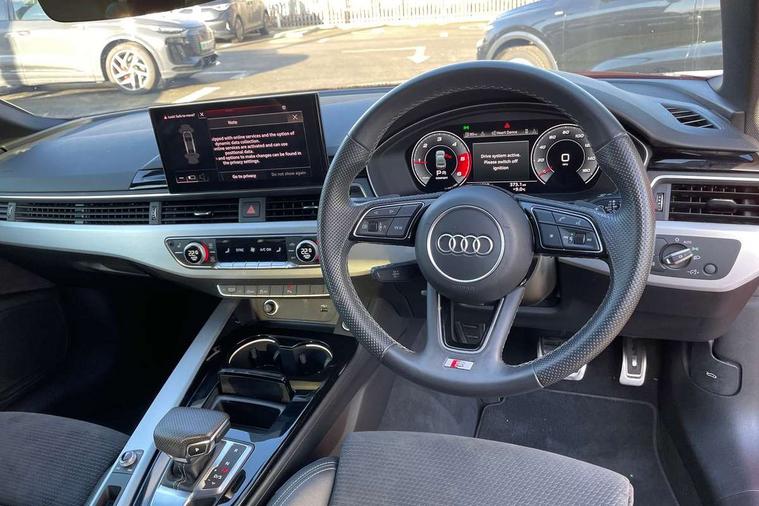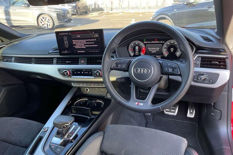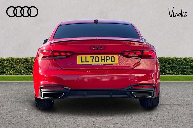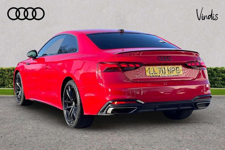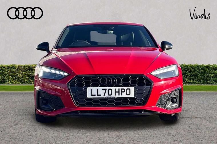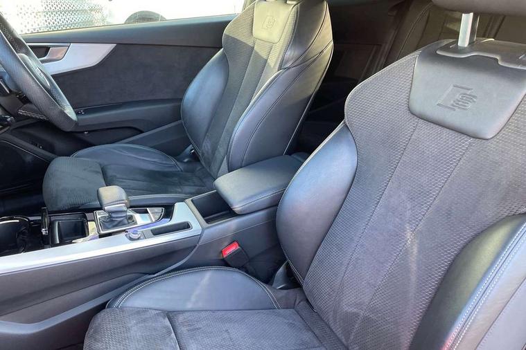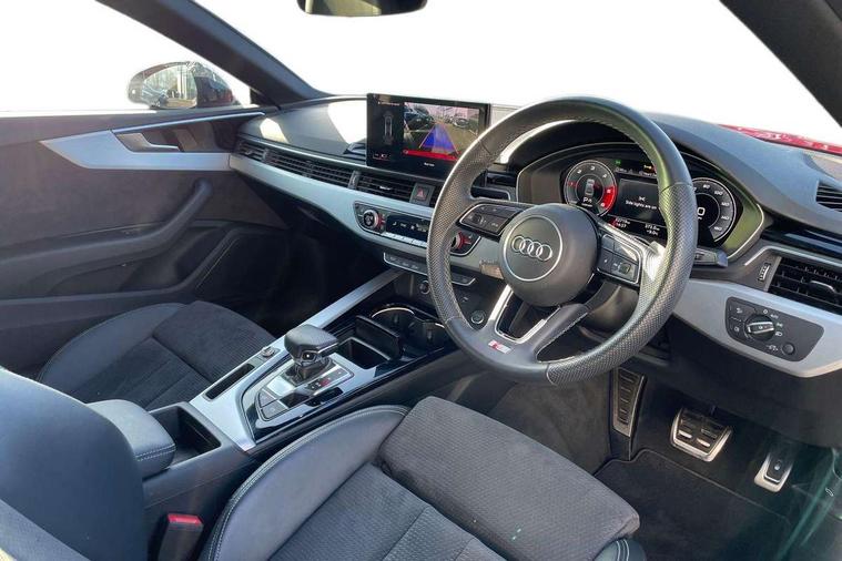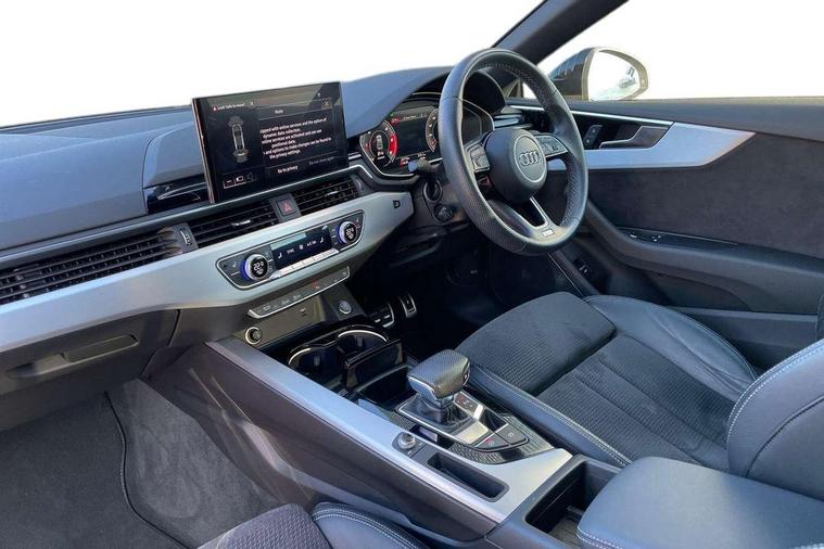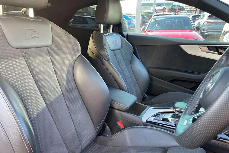 Audi connect safety and service (e-call), Audi drive select (Auto, Comfort, Dynamic, Efficiency and Individual), Audi parking system plus with front and rear sensors, Audi phone box with wireless charging, Audi smartphone interface, Audi virtual cockpit - 12.3" full colour digital instrument cluster, vehicle/engine speed, Radio/media information+Driver assistance systems, Automatic start-stop system with coasting functionality and efficiency programme, Bluetooth interface, Electric boot lid release, Electro-mechanical power steering, Email, calendar and text messages displayed via MMI, MMI nav+ with MMI touch - 10.1" high resolution MMI display, touch sensitive, 3D map, route/country info, dynamic route guide, personal route assist, Rear view camera, Service interval indicator, Voice control system, Diesel particulate filter, Sports suspension lowered by 23mm, 8 passive loudspeakers, CD player, DAB digital radio reception, Two additional USB ports for rear passenger in rear centre console, Two SDXC card slots, Audi matrix LED headlights with LED rear lights + dynamic front and rear indicators, Auto dimming rear view mirror, Body colour bumpers, Body colour door handles, Body colour front spoiler lip, Body colour side sill trim, Body coloured door mirrors, Electric adjustable heated door mirrors, Electric folding door mirrors, Electric front windows, Front fog lights, Honeycomb structure radiator grille in grained matt black, Matt aluminium silver tailpipe trim, Privacy glass, Rain and light sensors, S line badges on front wings, S line front and rear bumpers with side skirts, S Line rear diffuser in matt titanium black with trim strip in matt aluminium silver, Side air inlets in grained matt black with matt aluminium silver inlay, Towbar preparation, Windscreen with acoustic glazing, 4 way electric lumbar support for driver and front passenger, 40/20/40 split folding 2 seater rear seat bench with rear centre armrest, Adjustable steering column, Black cloth headlining, Black perforated leather gearknob, Contrast stitching on seats, steering wheel and gear lever gaiter, Deluxe 3 zone electronic climate control, Front centre armrest, Front head restraints, Front/rear floor mats, Heated front seats, Illuminated door sill trim with S logo, ISOFIX child seat mounting and top tether, Luggage compartment mat, Manual seat adjustment, Rear headrests, Stainless steel pedals, Sunvisors with vanity mirrors, LED interior light pack - A5/RS5, 2 x 3-point rear seatbelts, 6 airbags - Driver, front passenger, curtain and side airbags, Electromechanical parking brake, Electronic Stabilisation Control (ESC) including ABS, ASR and EDL, Front passenger airbag deactivation, Height adjustable front seatbelts, Hill hold assist, Multi collision brake assist, Pop-up bonnet for pedestrian protection, Seatbelt monitoring, Tyre pressure warning, Variable restraint system, Warning triangle and first aid kit, Anti theft alarm system, Anti theft wheel bolts, Immobiliser, Keyless Go, Remote central locking, Matt brushed aluminium inlays, Tool kit, Tyre repair kit,