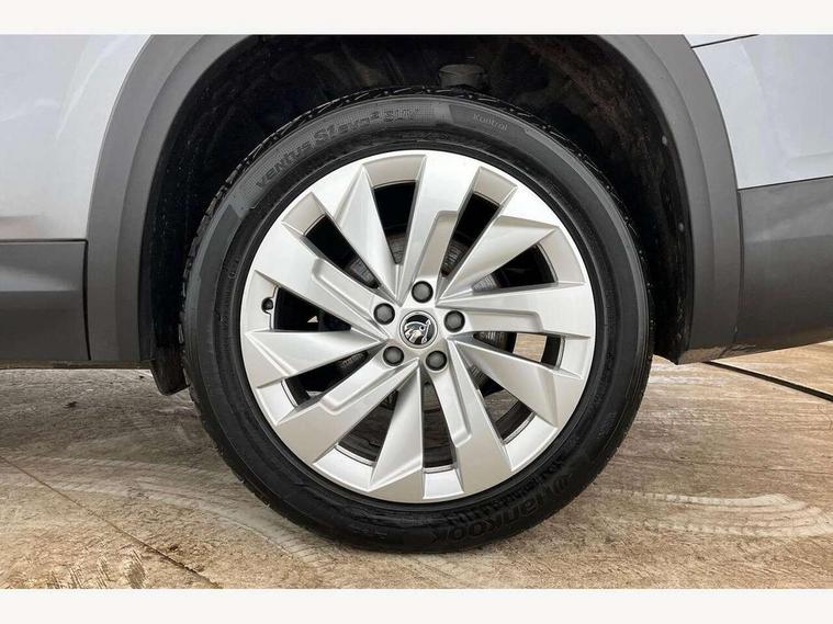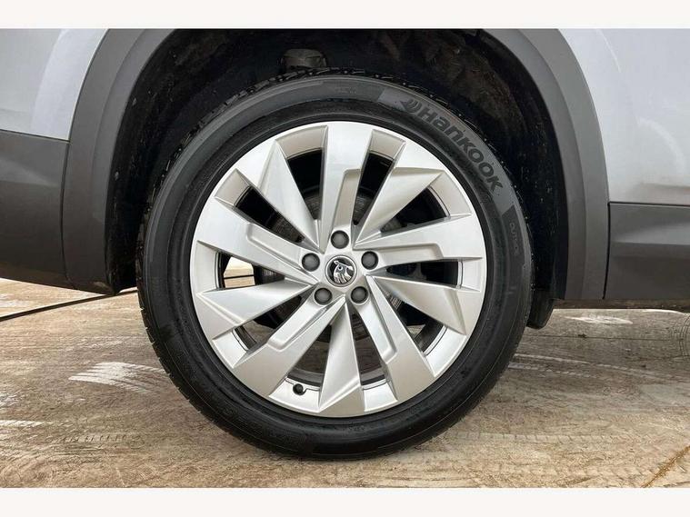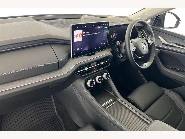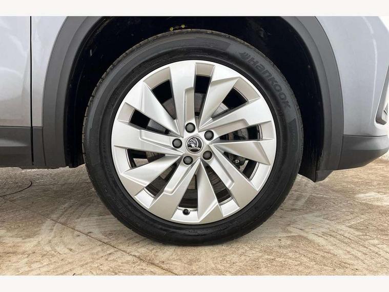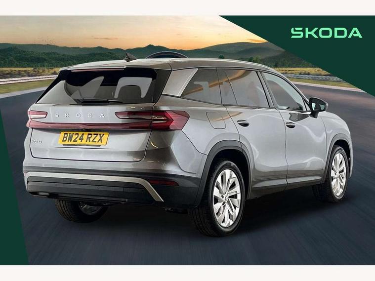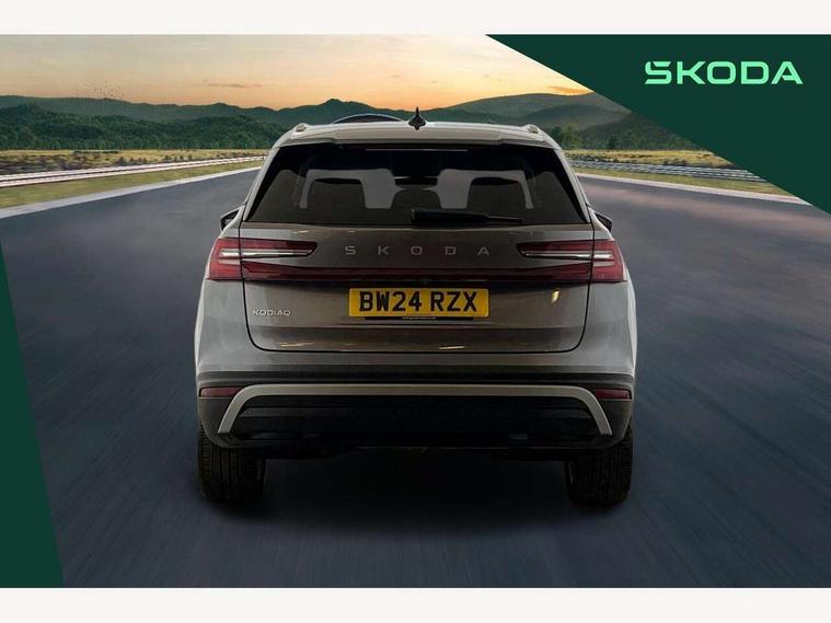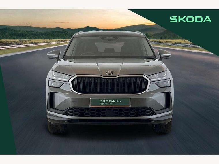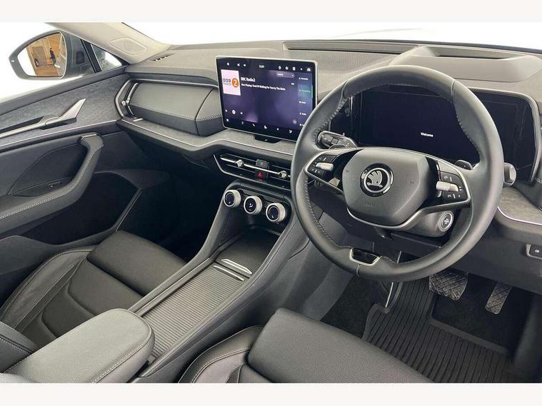 13" satellite navigation touchscreen display, Blind spot detection with door exit warning, Bluetooth system, Drive mode selector, Driver alert with fatigue sensor, Driver drowsiness alert system, Dry display cleaner, e call+, Front cross traffic assist, Lane assist, PAS, Rear traffic assist, Tailgate unlocking from outside, Traffic sign recognition, USB C Port x 2 in front centre console, Virtual Cockpit - 10.25" digital display, Voice control system, Wireless charging for two smartphones (15W) with cooling function, Wireless SmartLink for Apple CarPlay and Android Auto, Stop/start function, 2x USB-C in the rear, DAB Digital radio, Aero front windscreen wipers with intermittent function, Auto dimming rear view mirror, Black wheel arch surrounds, Body colour bumpers, Body colour door mirrors and handles, Cornering light and poor weather light, Electric folding /adjustable/separted heated/folding door mirrors, auto dimming with boarding sports and memory function, Electric front and rear windows, Heat insulating glass in windshield, Heated rear window, Ice scraper in fuel tank cap, Invisible tailpipe, LED daytime running lights, LED rear fog light, LED third brake light in rear spoiler, Light assistant with automatic headlight control and coming home feature, Logo projection in door mirrors, Privacy glass, Rear side wing doors, Rear spoiler, Rear window wiper, Safety reflectors on front and rear doors, Window control switches with black trim, Windscreen wipers with rain sensor, Without engine designation, 1.5l bottle holder points in all door, 12V socket in boot, 1x centre rear reading light, 2 seat bench in 3rd row, 3 configurable smart dials with 32mm coloured display, 3 seat bench in 2nd row, 4 foldable roof handles with rear coat hooks, Automatic gear selector on steering wheel, Chrome interior door handles, Driver/front passenger reading lights, Fabric headlining, Fixed bench 40:60:40 split folding backrests, Front and rear floor mats, Front centre armrest with jumbo box storage compartment, cup holder and 12V socket, Front courtesy lights, Height adjustable front headrests, Interior ambient lighting, Isofix child seat fittings in outer rear seats and front passenger with top tether, Manually adjustable steering column, Pollen filter, Rear centre armrest with cupholders, Rear seat boot backrest release, Retractable luggage compartment cover, Single front passenger seat, Sliding trunk cover, Small Bags on the inner sides of the front backrests, Storage pocket including mobile phone pockets on the backs of the front seats, Sunvisors with illuminated vanity mirrors, Three rear height adjustable headrests, Ticket holder on A Pillar, Tri zone climate control, Umbrella in door panel x1 made from sustainable materials, Upper and lower glovebox with card holder and coin compartment, USB C port by rear view mirror for charging only (15W), Exterior styling package - Kodiaq, Auto door release and activation of warning lights in the event of an accident, Driver and front passenger airbag with knee airbag and front passenger airbag deactivation, Electric child locks, Electronic parking brake, ESC (incl. ABS+EMD+MSR+ASR+EDL+HBA+DSR+RBS+ESBS+MCB+TSA+XDS), Front assist with braking reaction to vehicles, pedestrians and cyclists, Front disc brakes, Fuel cut off safety device, Height adjustable front 3 point seatbelts + pretensioners, Hill hold control, Junction assist with automatic emergency braking, Rear disc brakes, Safety vest holder in door, Seat belt reminder for all seats, Three point rear seat belts, Two tone horn, Tyre pressure monitor, Anti-theft wheel bolts, Immobiliser, Remote central locking with 2 keys, Black/grey fabric with green cross stitching on dashboard, Swan feathers grey dashboard and door decorative inserts, Breakdown kit,