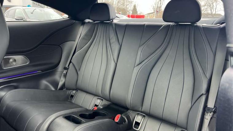 5G Communications module, Active lane keeping assist, Attention assist, Bluetooth connection, Car wash mode, DYNAMIC SELECT with a choice of driving modes (ECO, Comfort, Sport, Sport+ and Individual), eCall emergency call system, Fingerprint scanner, Fluorescent jacket for driver, Fully digital 12.3" driver display screen, Hard-disk navigation, Head up Display, Hey Mercedes Voice activation, MBUX augmented reality for navigation, MBUX navigation premium, PAS, Passive person presence reminder, Portrait format 11.9" touchscreen central display with driver orientation, Remote services, Service indicator assist, Smartphone integration with Apple CarPlay and Android auto, Traffic sign assist, Wireless charging system for mobile devices in the front, 66 litre fuel tank, 9G TRONIC automatic transmission, Agility control sports suspension lowered by 15 mm, Integrated starter generator Gen 2, Petrol Particulate Filter (PPF), Sporty engine sound system, Burmester 3D surround sound system with sound personalisation, Digital radio, MBUX extended functions, MBUX multimedia system, Adaptive brake lights, AMG bodystyling, AMG Line exterior, AMG specific radiator grille with vertical struts in high gloss chrome and AMG logo, Auto headlights, Electric windows, Heat insulating dark tinted glass, LED 3rd brake light, LED Day time running light, LED digital light with adaptive highbeam assist plus, LED tail lights, Panoramic sliding sunroof, Rain sensor windscreen wipers, Rear boot, Variable front intermittent wipers, 2 individual rear seats, 2 rear head restraints, Ambient lighting premium, Ambient lighting with projection of brand logo, AMG floor mats, AMG line interior, Automatic child seat recognition sensor, Belt feeder, Black fabric roof liner, Climatised massage multicontour front seats, Folding rear seat backrests, Front headrests, Heated front seats, Heated steering wheel, Illuminated door sill panels with Mercedes Benz lettering, Instrument panel and beltlines in ARTICO manmade leather in nappa look, Leather upholstery, Multifunction sports steering wheel in nappa leather, Power height and reach adjustable steering column, Single front passenger seat, THERMATIC automatic climate control, Interior light pack - CLE, Keyless-Go comfort package - CLE, Memory seat pack - CLE, Mirror pack - CLE, Parking package with 360 degree camera - CLE, Stowage space package - CLE, USB package plus - CLE, Active bonnet, Adaptive brake system with hold function and brake drying function, Anti-lock braking system (ABS), Automatic front passenger airbag deactivation, Black seat belts, Braking system with larger brake discs on the front axle, Centre airbag, Dual front airbags, Electric parking brake, Electronic Stability Programme (ESP), First aid kit and warning triangle, Front and rear seatbelt reminder, Hill start assist, ISOFIX child seat attachment points with top tether in rear, Pedestrian protection, Rear side airbags, Seat occupancy sensor for rear seats, Tyre pressure monitoring system, Anti theft alarm system, Guard 360 degree vehicle protection plus, Increased anti-theft protection, Interior monitoring system, Black open pore aluminium lines wood trim with centre console in black fine structure, 20" AMG multi spoke light alloy wheels painted in black with high sheen finish - RVM, Tirefit,