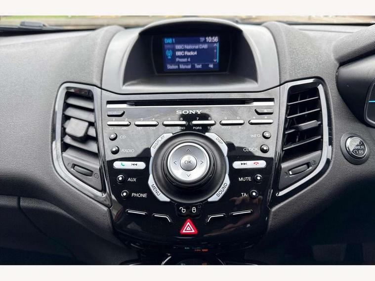 Cruise control, Electric power steering, Ford SYNC Bluetooth connection with voice control and USB port, Rear parking sensor, Rear view camera, SYNC Emergency Assistance, Trip computer, 8 Speakers, Auxiliary input socket, Sony DAB radio/CD player, Steering wheel mounted controls, Automatic headlights + automatic windscreen wipers + auto dimming rear view mirror, Body colour door handles, Body colour electric adjustable heated door mirrors, Body colour tailgate handle, Chrome beltline trim, Chrome surround for front fog lights, Chrome tailgate handle, Courtesy headlamp delay, Electric folding door mirrors with puddle lamps, Electric front windows/one touch facility, Electric rear windows, Front fog lights, LED daytime running lights, LED rear lights, Privacy glass, Quickclear heated windscreen, Rear wiper, Tinted glass, Upper front grille chrome surround, 3 spoke leather steering wheel, 60/40 split folding rear seat, Adjustable head restraints, Air conditioning + Electric Auto Temperature Control (EATC), Ambient lighting, Boot carpet, Centre console with armrest, Driver's lumbar support, Footwell illumination, Front and rear velour floor mats, Front map reading lights, Front seat and rear pockets, Heated front seats, Illuminated cup holders, Illuminated glovebox, Leather trimmed handbrake handle, Load area light, Luxury woven headliner, Manual seat adjustment, Pollen filter, Rake/reach adjustable steering wheel, Rear centre head restraint, Sports front seats, Stainless Steel Scuff Plates, Striping on seatbelts, 3 point seatbelts on all rear seats, ABS+EBA, Curtain airbags, Driver and passenger airbags, Drivers knee airbag, ESP + traction control, Front passenger airbag deactivation, Front side airbags, Hill start assist, Tyre pressure monitoring system, Immobiliser, Keyless entry with 'Ford Power' starter button, MyKey system, Perimeter alarm, Remote central locking, 16" multi-spoke alloy wheels,