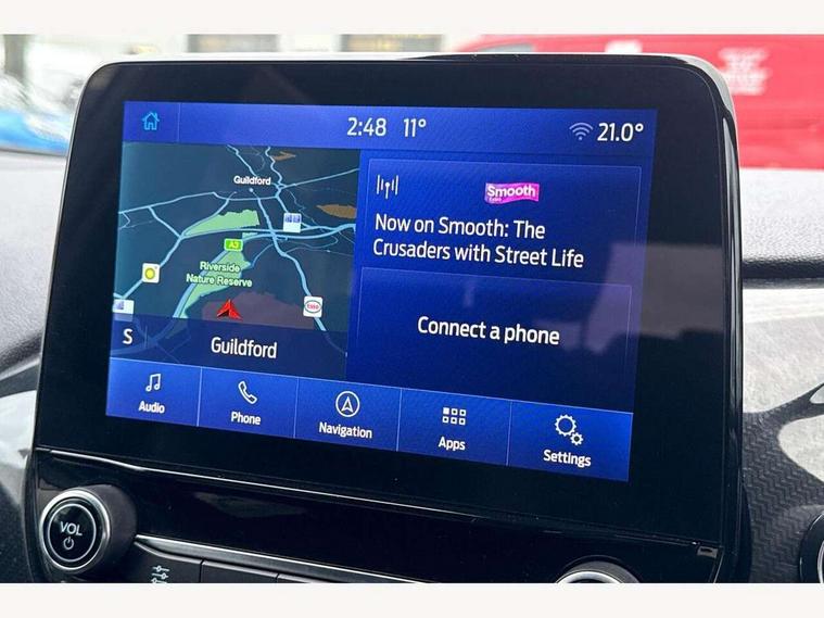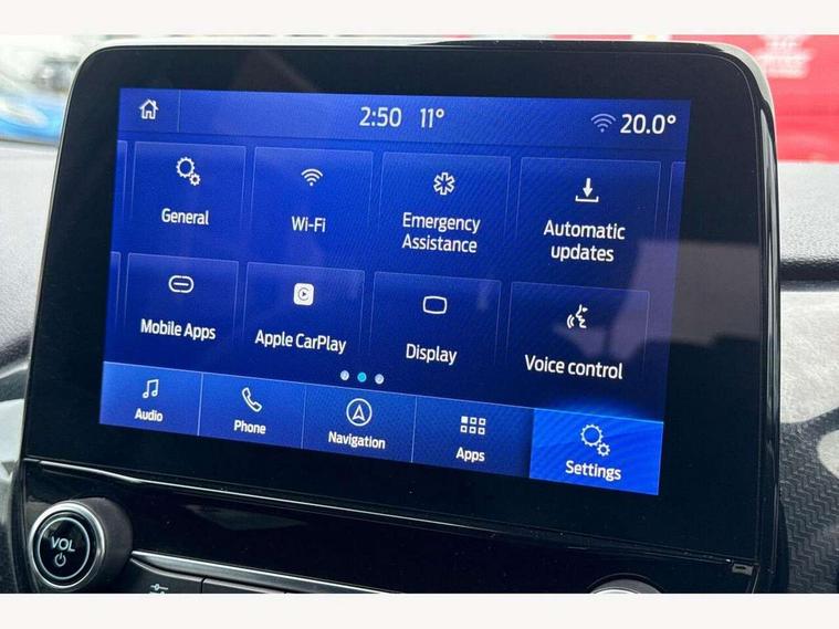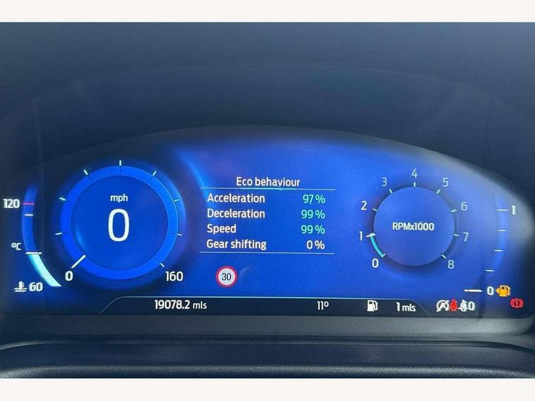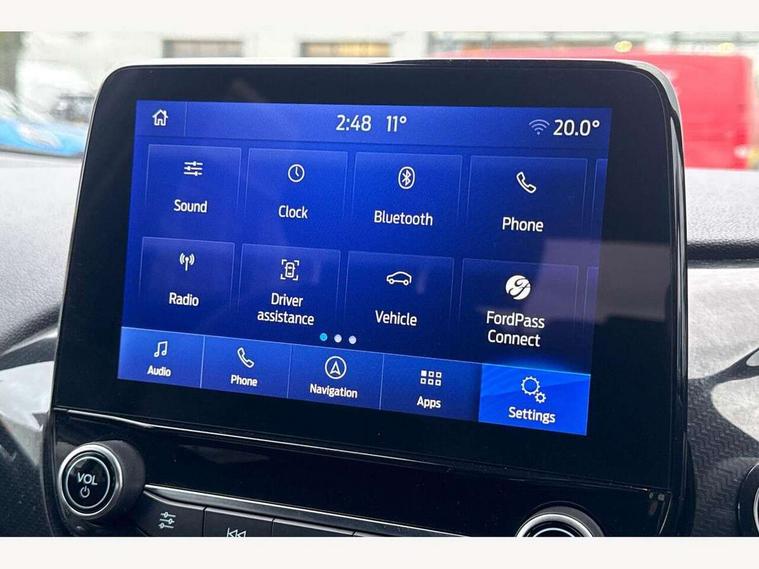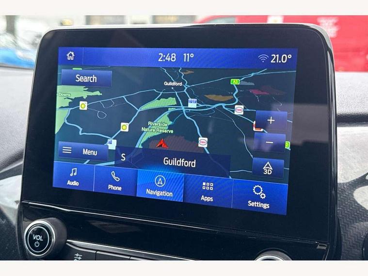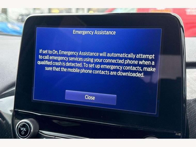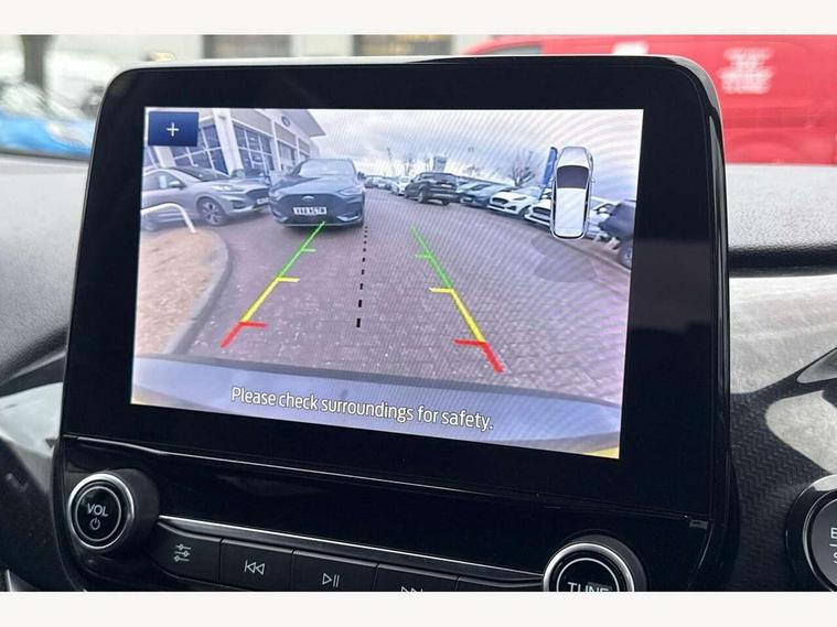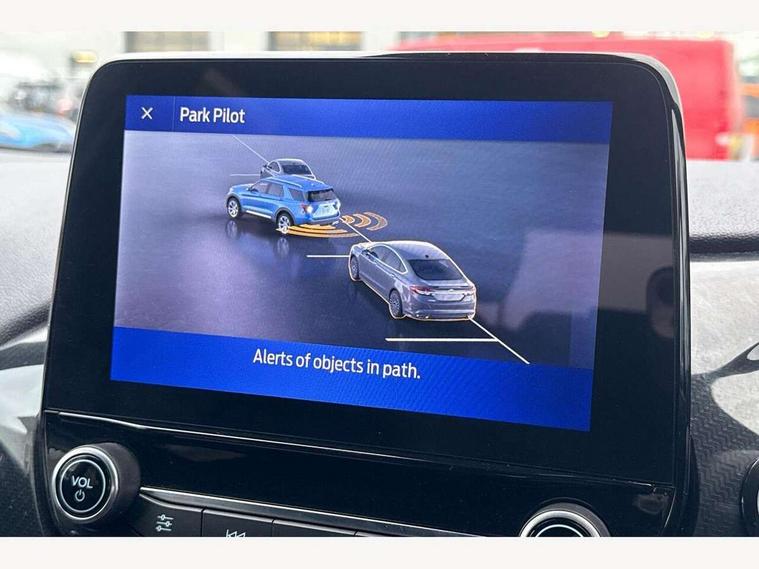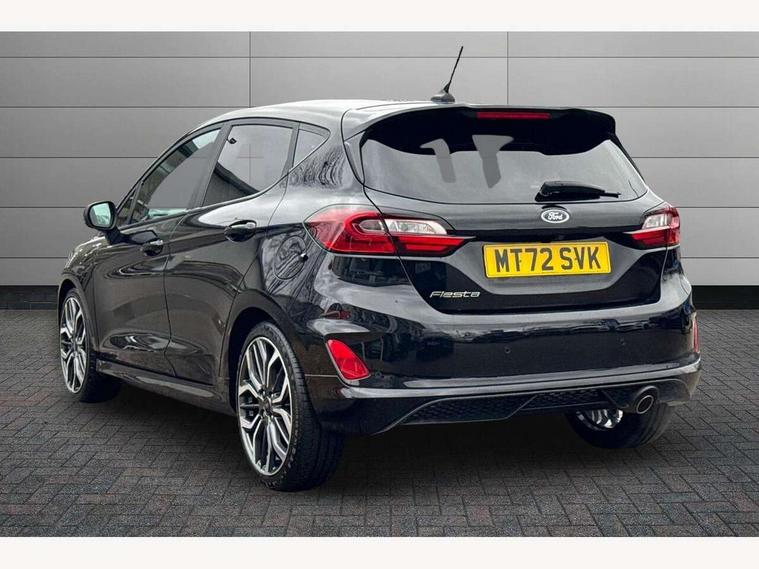Driver alert system, Electric power steering, Ford easy fuel, Lane keep assist, Lane keeping aid, Rear parking distance sensors, Rear view camera, Selectable drive modes (Normal, Sport, Track), Trip computer, Sports suspension, 3rd brake light, Auto high beam, Automatic headlights, Body colour bumpers, Body colour large rear spoiler, Body coloured electrically operated with side indicators, Electric front windows/one touch facility, Electric rear windows, LED rear lights, Quickclear heated windscreen, Rain sensing wipers and auto dimming rear view mirror, Rear privacy glass, Rear side wing doors, Rear wiper, Unique ST-Line grille, full bodystyling kit and large body coloured rear spoiler, 3 rear headrests, 3 seat bench in 2nd row, 4 way manually adjustable passenger seat, Adjustable head restraints, Black headlining, Centre console with opening armrest, 2x cupholders, 12v and USB, EATC - Electronic Auto Temperature control, Leather gear knob, Manual 4-way driver seat adjust, Premium floor mats, Sensico partial premium leather upholstery with red stitching, Sensico wrapped steering wheel, Single front passenger seat, Winter pack [GTBAB]- Fiesta, 3 point seatbelts on all rear seats, Electronic stability control with hill start assist, Front and rear seat belt warning, Manual child lock in rear doors, Tyre pressure monitoring system, Ford keyfree system with Keyless entry and keyless start, MyKey system, Remote central locking, Thatcham alarm with power door dead locks, 18" 5x2 spoke alloys with pearl grey machined finish,