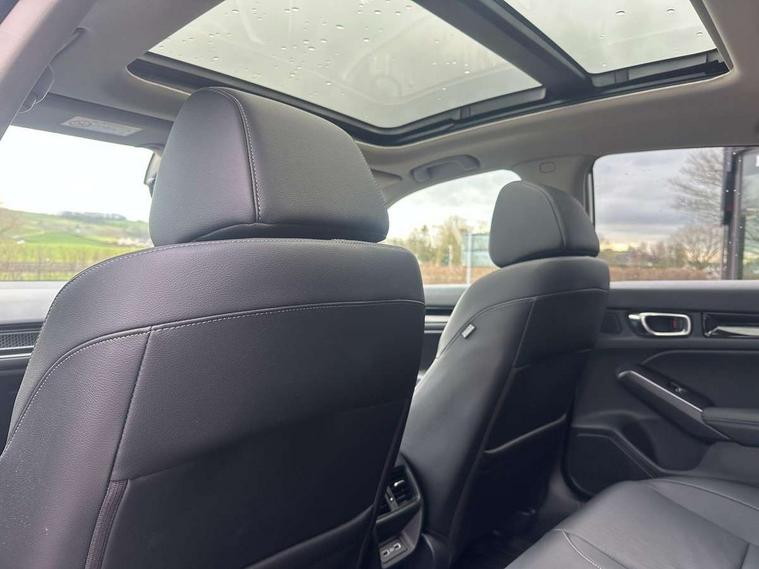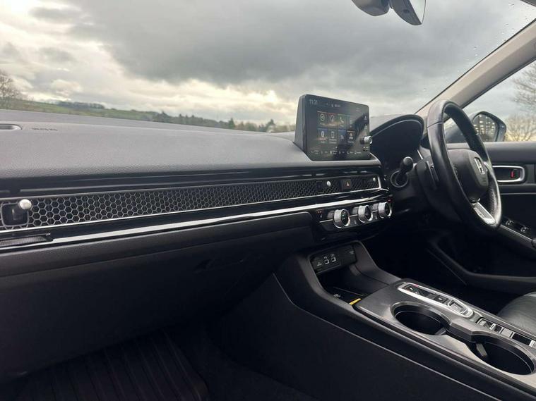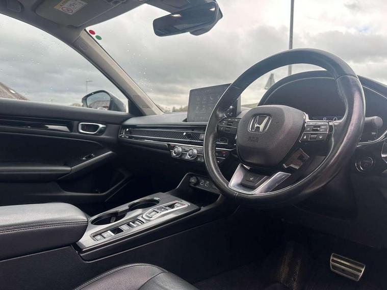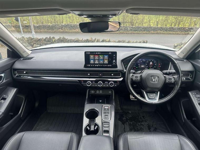 10.2" Multi information display, Adaptive cruise control, Adaptive motion for electric power steering, Adjustable speed limiter, Agile handling assist, BLIS (Blind Spot Information System) with Cross Traffic Monitor, Bluetooth hands free telephone connection, Driving modes, Economy mode, Electric power steering wheel with variable gear ratio steering, Emergency call service, Emergency stop signalling system, Forward collision warning, Front and rear parking sensors, Honda CONNECT with Navigation 9" touchscreen, AM/FM/DAB, Apple Carplay and Android Auto, live traffic info, Honda sensing, Idle stop, Intelligent speed limiter, Lane departure warning system, Lane keep assist, Low speed following, Power meter, Rear parking camera, Road departure mitigation, Smartphone wireless charging plate, Tailgate, Traffic jam assist, Traffic sign recognition, Wireless apple carplay, Vehicle stability assist, 'Shark fin' mobile antenna, 2x USB Front socket (1 data & 1 charge), Centre speaker, Digital Audio Broadcast (DAB) Tuner, Front tweeters, Premium BOSE audio system with 12 speakers, Steering wheel mounted audio controls, Subwoofer, Adaptive driving beam, Aspherical driver door mirrors, Auto dimming rear view mirror, Auto headlight adjuster, Auto headlights, Automatic coming/leaving home lighting function, Automatic rain sensing wipers, Body colour door handles, Body colour door mirrors, Chrome window garnish, Electric adjustable heated door mirrors, Electric front and rear windows, Electrically folding door mirrors, Headlight extension aluminium, High beam assist, High level LED brake light, LED daytime running lights, LED front fog lights, LED front turn type, LED Headlights, LED rear lights, Material finish grille, Panorama glass roof, Pop up hood, Privacy glass, Rear side wing doors, Rear wiper, Single hidden exhaust pipe, Variable front intermittent wipers, 3 seat bench in 2nd row, 4 way electric adjustable passenger seat, 60/40 split folding rear seat, 8 way electric adjustable drivers seat, Cargo accessory power socket, Cargo net hooks, Driver and front passenger seat armrests, Driver and front passenger seat electric lumbar adjustment, Driver's seat electric height adjustment, Driver/passenger front seatback pockets, Dual climate control air conditioning system, Front accessory power socket, Front map lights, Front/rear courtesy lights, Glovebox light, Heated front seats, Heated steering wheel, Hybrid emblem, Isofix points/i size, Leather steering wheel, Leather/synthetic leather upholstery, Meter Illumination white, Platinum chrome interior door handles, Rear air vents, Rear head restraints, Rear reading lights, Rear seat centre armrest, Single front passenger seat, Stainless steel sports pedals, Sunglasses holder, Sunvisors with illuminated vanity mirrors, Tilt/telescopic adjustable steering wheel, Tonneau cover, Trunk light, USB Rear number 2 x charge, White ambient roof light, 3x3 point rear seatbelts, ABS+EBD+Brake assist, Airbags - driver and front passenger, Airbags - Knee (AS), Airbags - Knee (DR), Anti-whiplash front headrests, Brake hold function, Collision mitigation braking system, Collision mitigation throttle control, Deflation detection system, Driver SRS airbag (single stage inflation), Electronic parking brake with auto hold, Front and rear curtain airbags, Front and rear seat belts with emergency locking retractor (ELR), Front centre airbag, Front side airbags, Hill start assist, Low speed brake system, Manual child lock in rear doors, Passenger airbag deactivate switch, Rear airbags, Regenerative braking/deceleration paddle control, Immobiliser, Mirrors and windows key fob, Remote central locking with 2 jack knife keys, Security alarm, Selectable door unlock, Smart entry + Smart start, Superlocking, Tilt sensors, Ultrasonic security sensor, 18" 2 tone black diamond cut alloy wheels, Tyre repair kit,