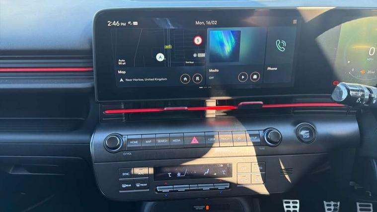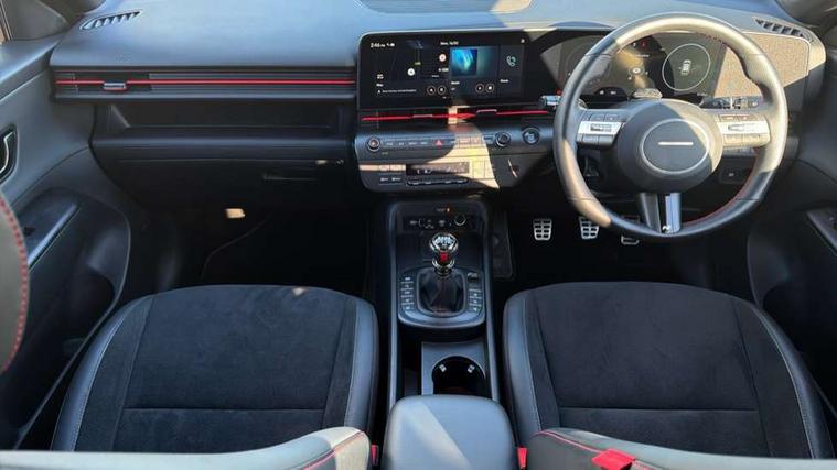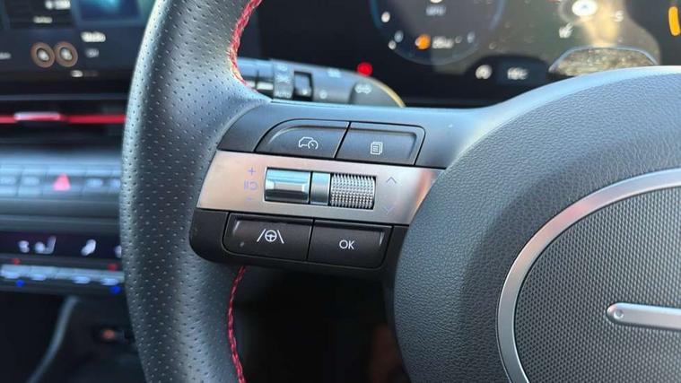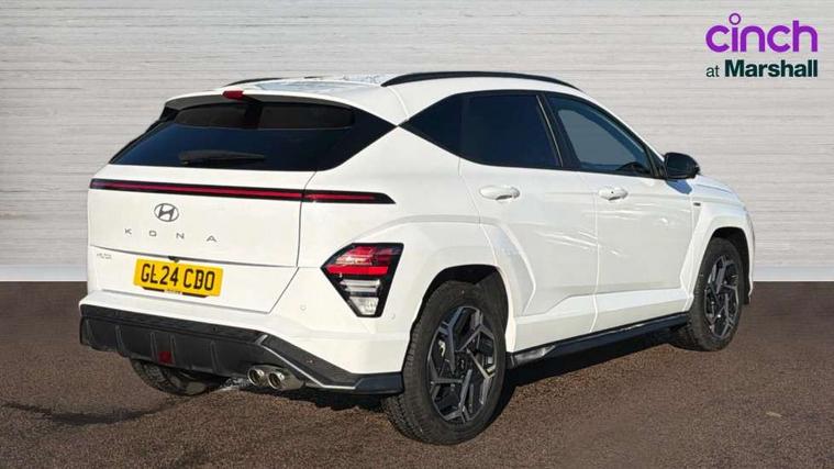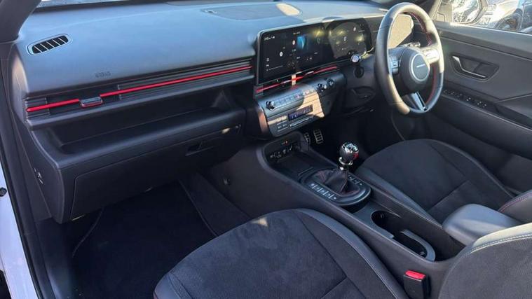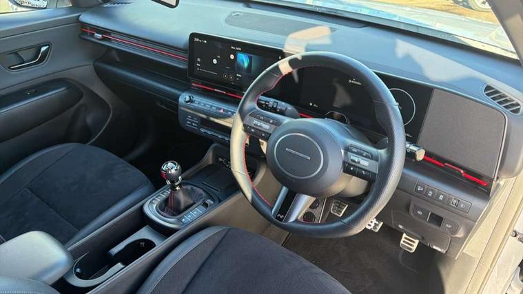 12.3" touchscreen centre console display satellite navigation with bluelink, live services and mapcare, Blind spot collision avoidance assist, Blind spot view monitor, Bluetooth connectivity with voice recognition, Cruise control, Digital clock, Driver status monitor (DSM), Driver supervision instrument cluster with 12.3" LCD display, eCall emergency call system, Feature on demand - Enabled, Forward collision avoidance assist (FCA 1.5) - Car, pededstrian, cycle and junction turning, Front parking sensor, Height adjustable power tailgate, Intelligent speed limit assist, Lane follow assist, Lane keep assist, Leading vehicle departure alert (LVDA), Parking Collision Avoidance Assist-Reverse (PCA-R), Parking distance warning - side, Parking system with rear camera and guidance system, PAS, Rear cross traffic collision avoidance (RCCA), Rear parking sensor, Roadside assistance, Safe exit warning (SEW), Surround view monitor, Windscreen washer fluid sensor and warning indicator, Wireless phone charging pad, Wireless Smartphone Integration includes Apple CarPlay and Android auto, 2 front USB C and 2 rear USB C charging points, Bose Premium Audio system with 7 premium speakers + subwoofer, DAB Digital radio, Steering wheel audio, phone and cruise controls, Auto dimming rear view mirror, Automatic headlights with dusk sensor, Automatic windscreen wipers with rain sensor, Body colour bumpers, Body colour exterior door handles, Body coloured wheel arch inserts, Door mirror LED indicator lights, Electric front windows with anti-trap mechanism and one touch control, Electric rear windows, Electrically adjustable and heated door mirrors, Gloss black door mirrors, Horizon centre LED DRL, LED daytime running lights, LED projector headlights, LED upper and lower rear lights, Power folding door mirrors, Privacy glass - Rear windows and tailgate, Rear roof spoiler with integrated LED brake light, Rear side wing doors, Rear wiper, Roof rails, Solar glass with front door glass and windscreen, Tinted glass in front and rear doors, Windscreen auto defog function, 12V power outlet in front console, 2 zone climate control, 3 seat bench in 2nd row, 40/20/40 split folding rear seat, Adjustable head restraints, Aluminium pedals, Ambient lighting, Driver and passenger front seat pockets, Driver's seat lumbar support, Driver/passenger manual seat height adjustment, Driver/passenger sunvisors and illuminated vanity mirrors, Floor mats, Heated front seats, Heated rear seats, Heated steering wheel, Height/reach adjustable steering column, Isofix rear child seat fastenings, Leather wrapped steering wheel and gear knob, LED centre interior light, LED front interior light, Luggage compartment LED lighting, Luggage net, Luggage shelf, Metal paint effect interior door handles, N Line Alcantara/leather upholstery, Parcel shelf, Rear centre armrest, Rear centre armrest with cupholders, Rear centre console with air vents, Single front passenger seat, Ventilated front seats, Vertical adjustment rear head restraints, N Line exterior design pack - Kona, Trailer wiring package - Kona, Airbag - front, front side, curtain and centre front airbag, Anti-lock brake system (ABS), Childproof rear door locks, Downhill brake control, EBD + Brake Assist, Electric parking brake, Electronic stability control, Fasten seatbelt reminder, Fixed 3 point for second row centre passenger seatbelt, Front seatbelt pretensioners, Height adjustable front seatbelts, Hill start assist control (HAC), Passenger airbag deactivate switch, Rear seat alert, Traction control, Tyre pressure monitoring system, Alarm/immobiliser, Deadlocks, Folding key, Locking wheel nuts, Remote central locking, Smart key with keyless entry and start/stop button, Five year annual vehicle health checks, 18" Alloy wheels, Temporary mobility kit (TMK),