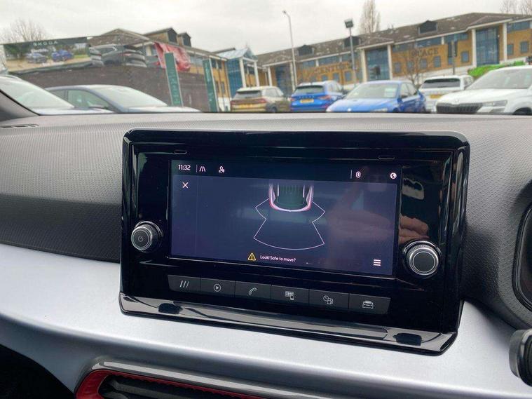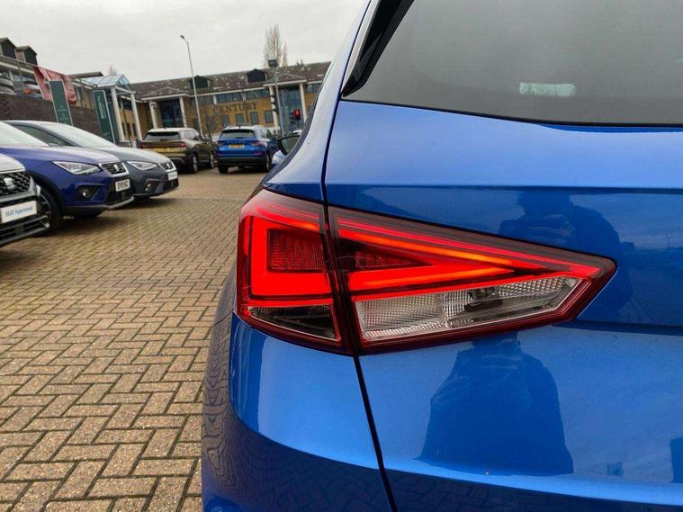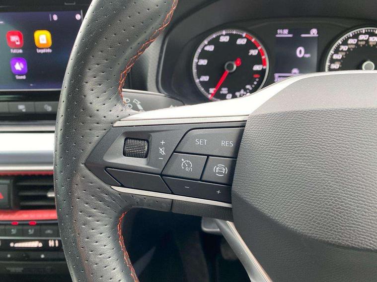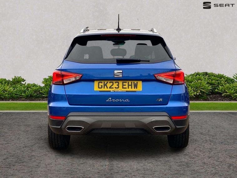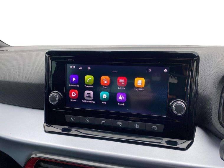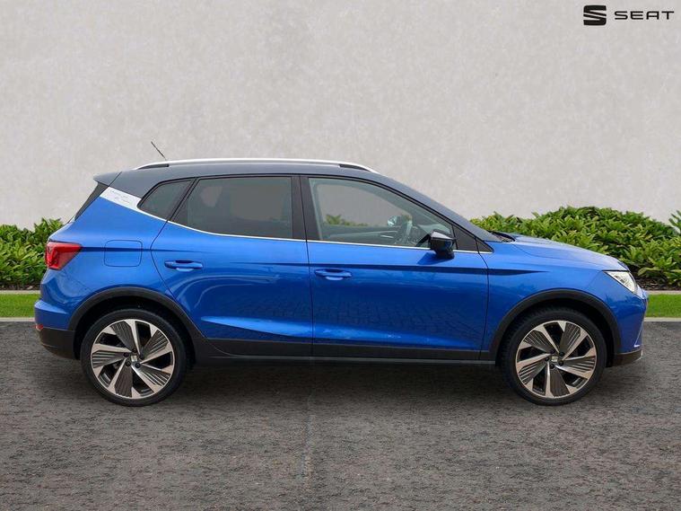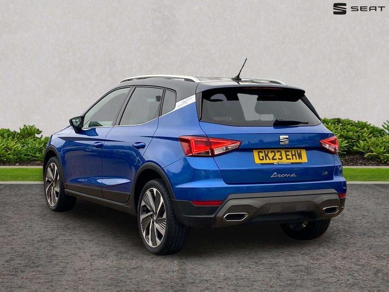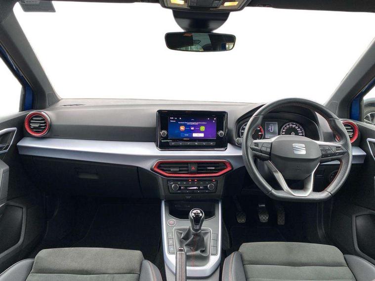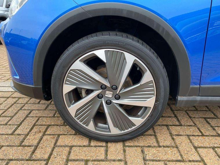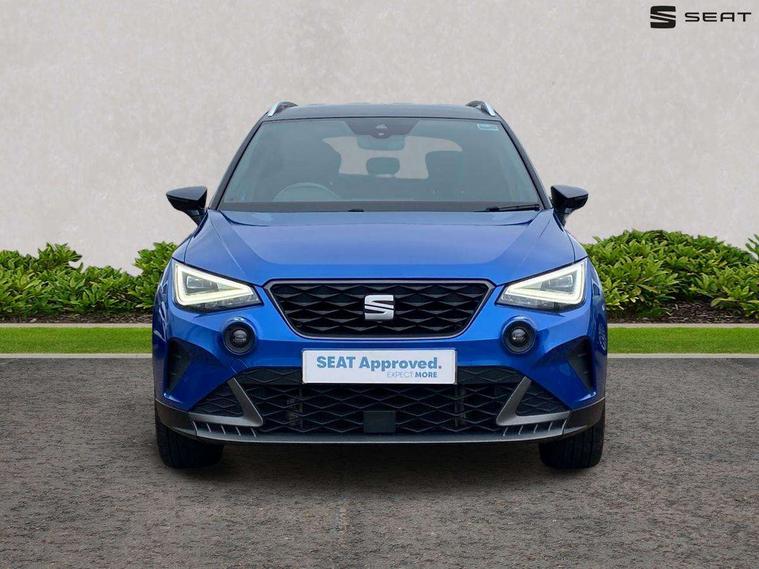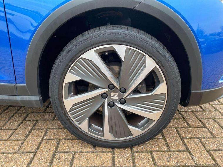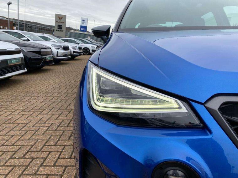 'Lights On' Reminder warning buzzer, Analogue cockpit with physical dials, Digital clock, E-call, Electric speed sensitive power steering, Full Link Smartphone Integration with Mirror Link, Apple Car Play, Google Android Auto with USB Type C cable for Apple and Android compatibility, Lane keeping system, Low fuel warning light, Outside temperature display, Rear parking sensor, RPM counter, Seat connect with safety, service and remote, SEAT Drive profile - Four different models normal-sport-eco-individual, steering response, throttle response, Trip computer, Wireless phone charger, Bluetooth interface for hands free and audio streaming, DAB digital radio and AM/FM radio, Media system with 8.25" colour touchscreen with USB port (type c), Steering wheel mounted audio controls, Anti theft roof antenna, Automatic activation of hazard warning lights, Body coloured bumpers, Body coloured door handle inserts, Chrome roof rails and window surrounds, Dark tinted rear windows, Dimming rear view mirror, Electric front/rear windows, Electrically adjustable and heated door mirrors, Front fog lights with cornering function and rear fog light, FULL LED automatic headlights with dynamic headlight range control, coming and leaving home, LED daytime running lights, LED rear tail lights and licence plate lights, Protective side mouldings, Rear side wing doors, Rear spoiler, Rear window wash/wipe, Roof colour door mirrors, Third brake light, Twin exhaust pipe styling hidden exhaust pipe, Visible VIN plate, Windshield wiper with intermittent control and potentiometer, 2 cupholders, 3 seat bench in 2nd row, 60/40 split folding rear seat, Aircare filter, Black interior roof, Double boot floor, Driver sunvisor with covered mirror + card holder, Dual zone climate control, Front comfort seats, Front courtesy light with 2x front and 2x rear reading lights, Gear shift indicator, Height adjustable front seats, Height/reach adjustable steering column, Illuminated boot, Instrument lighting with brightness control, Interior ambient lighting, Interior light in footwell, central console and door panel, ISOFIX points in outer rear seats with top tether anchorage points, Microsuede cloth upholstery, Passenger sunvisor with vanity mirror, Perforated flat bottomed leather steering wheel/gear knob/handbrake with red stitching and FR logo, Single front passenger seat, Two front and three rear height adjustable headrests, Interior chrome pack - Arona, 3 point seatbelts on all rear seats, ABS, Active front headrests, Child locks on rear doors, Driver and front passenger airbags with front passenger airbag de activation, front side and curtain airbags, Electronic stability control, Emergency Brake Assist (EBA) and front assist, Front and rear seatbelt reminder, Hill hold control, Multi-Collision braking, Tiredness recognition system, Traction control, Tyre pressure monitoring system, Alarm with back-up horn, Electronic engine immobiliser, KESSY Keyless entry and go, Locking wheel bolts, Remote central locking + deadlocks, Tow away protection, Titan black dashboard,