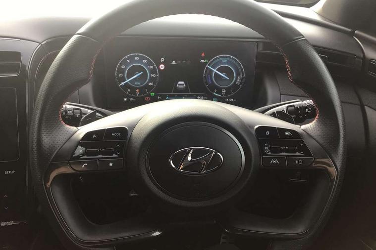 10.25" super vision instrument cluster, 10.25" touchscreen satellite navigation with mapcare and live services, Apple car play/Android Auto, Bluetooth system, Cruise control, Digital clock, Drive mode selector, Driver attention warning, E-call, Emergency stop signalling system, Forward Collision Avoidance Assist (FCA) - Car, Pedestrian and Cycle, Front and rear parking sensors, Intelligent speed limit assist, Lane follow assist, Lane keep assist, PAS, Rev counter, Reversing camera, Tailgate open warning light, Trip computer, Trip odometer, Voice recognition, Water temperature gauge, Windscreen washer fluid sensor and warning indicator, Wireless phone charging pad, Shift by Wire Gear Selector (SBW), 2 front and 2 rear speakers with 2 tweeters, DAB Digital radio, Steering wheel mounted audio/phone controls, USB connections in front and rear, Adjustable intermittent front windscreen wipers with aero wiper blade, Auto dimming rear view mirror, Automatic defog system, Automatic headlights with dusk sensor, Automatic windscreen wipers with rain sensor, Black headlamp bezels, Body colour bumpers, Body colour door mirrors with integrated indicators, Body colour exterior door handles, Body coloured wheel arches, Dark chrome effect radiator grille, Electrically adjustable, heated and power folding door mirrors, Follow me home headlights, Front and rear electric windows with anti-trap mechanism and one touch control, Front fog lights, Gloss black door frame moulding, High beam assist, High level third brake light, LED daytime running lights, LED rear lights, MFR - LED headlight with static bending light, N Line body coloured side mouldings, N Line design front grille, N Line Exclusive front and rear bumpers, N Line rear spoiler with fins, Positioning Lights - LED, Privacy glass - Rear windows and tailgate, Rear side wing doors, Rear wash/wipe with intermittent wipe setting, Roof rails, Silver front and rear skid plate, Sports twin tip exhaust and diffuser, Tinted glass with windscreen shade band, Trailer stability assist, 12V power outlets in front console and luggage compartment, 3 seat bench in 2nd row, 40/20/40 split folding rear seat, Adjustable head restraints (Up and down), Alloy pedals, Ambient lighting, Black headliner, Cupholders in rear armrest, Door courtesy lights, Driver and passenger sunvisors with illuminated LED vanity mirrors, Driver's seat electric lumbar support, Driver's seat manual height adjust, Dual zone climate control, Front and rear door pockets, Front armrest with storage box, Front door pocket bottle holders, Front passenger seat lumbar adjustment, Heated front seats, Height/reach adjustable steering column, Illuminated/air conditioned glove compartment, ISOFIX child seat anchorage points attached on outer rear seats, Leather wrapped steering wheel, Leather/suede upholstery, Luggage area underfloor compartment, Luggage compartment lighting, Luggage cover, Luggage hooks, Manual height adjustable front passenger seat, Map and reading lights, N Line logo on steering wheel, Reclining rear seats, Retractable load cover, Single front passenger seat, Sunglasses holder, 3x3 point rear seatbelts, Active bonnet, Airbag - Front, front side, curtain and centre front airbags, Anti-lock brake system (ABS), Brake assist function, Childproof rear door locks, Curtain airbag roll over sensor, Downhill brake control, Electric parking brake with auto hold function, Electronic stability control, Front and rear seatbelt reminder, Front passenger airbag deactivation switch, Front seatbelt pretensioners, Hill start assist control (HAC), Multi-Collision braking, Outer rear seatbelt height adjustment, Seatbelt height adjustment for front seats, Traction control, Tyre pressure monitoring system with individual tyre pressure display - TPMS, Vehicle stability management, Alarm, Deadlocks, Immobiliser, Locking wheel nuts, Remote control central locking, Smart key with keyless entry and engine start/stop button, Speed sensitive auto door locking, 19" Alloy wheels, Tyre repair kit,