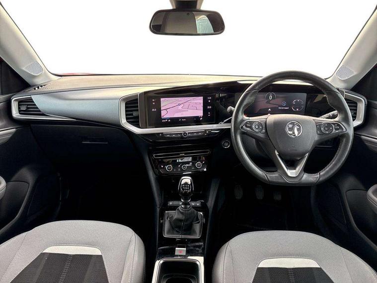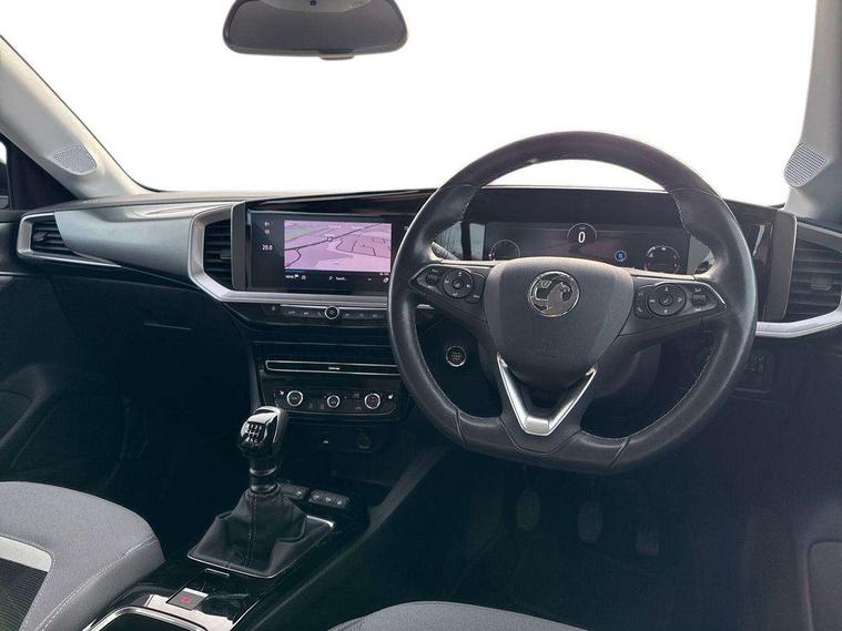 Automatic adaptive cruise control, Engine start/stop button, Front and rear parking distance sensors, Front camera system, Lane keep assist system (LAS) with Lane departure warning system (LDWS), Lights on audible warning, Multi function trip computer, Panoramic rear view camera, Power assisted speed sensitive steering, Side blind spot alert and flank guard, Smartphone integration compatible with Apple CarPlay and Android Auto, Speed sign recognition, Start/stop system, Vauxhall connect, 6 speed manual transmission, Chassis drive line front wheel drive, Electronic fuel system, Front chassis equipment, Rear chassis equipment, Standard chassis suspension system ride handling, Bluetooth A2DP audio streaming, Flexible Roof Mounted Radio Aerial, Front USB connection, Mobile phone portal - bluetooth connect, vehicle microphone, handsfree calls, SMS read out and reply, phone book access, Multimedia Navi pro infotainment with satellite nav, 10" colour touchscreen, 6 speakers, DAB radio, 12" instrument panel, Apple carplay/Android auto, Steering wheel mounted controls, Two rear USB sockets, Adaptive brake lights, Automatic lighting control with tunnel detection, Automatically dimming anti dazzle rear view mirror, Black door mirror housings, Black rear spoiler, Body colour door handles, Body colour front and rear bumpers, Chrome effect skid plates, Chrome effect upper window moulding, Electrically adjustable, heated and folding door mirrors, Electrically operated front and rear windows with safety auto reverse and one touch up/down facility, Hazard warning lights, Heated rear window+rear wash/wipe, High beam assist, LED daytime running lights, LED front fog lamps, LED side repeat indicators, LED tail lights, Manual headlamp level control, Rear foglight, Rear wiper, Reversing light, Solar heat absorbing windscreen and windows, Two speed rain-sensitive windscreen wipers with variable intermittent wipe, Windscreen and side window demist vents, 12V Accessory socket, 3 spoke flat bottomed leather steering wheel with satin chrome bezel, 4 speed fan with illuminated controls, 6 way manual adjustable driver fore/aft, up/down with reclining seatback, 6 way manual adjustable front passenger fore/aft, up/down with reclining seatback, Air recirculation system, Cabin particulate filter - removes dust, airborne particles and pollen, Centre console with two cup holders at front and one in rear, Chrome effect interior door handles, Door pockets with two litre capacity, Driver and passenger seat pocket, Driver and passenger sun visors with vanity mirror, Electronic climate control (ECC), Fabric/leather upholstery with jet black fabric side bolsters, Four adjustable facia vents, Four load restraint lashing eyes, Front centre armrest with storage, Front map reading lights, Front seat back storage pockets, Fully carpeted load area, Heated front seats, Heated steering wheel, Height adjustable front/rear head restraints, Illuminated load area, Interior courtesy light, Interior tailgate handle, Luggage compartment cover, Luggage compartment lighting, Reach + rake adjustable steering column, Twin gas assisted tailgate struts, 2x Isofix child seat fitting on outer rear seats, 3x3 point rear seat belts, Anti-lock braking system (ABS), Automatic emergency city braking, Child proof locks on rear doors, Cornering brake control, Deactivation switch for front passenger front and side impact airbags, Drag torque control, Driver and front passenger airbags, front seat side impact airbags, full size curtain airbags, Driver drowsiness alert system, Electronic brake force distribution, Electronic Stability Programme (ESP), Emergency brake assist, Forward collision alert at all speed, Hill start assist, Inertia reel lap and diagonal seatbelts for all seats, Seatbelt unfastened audible warning and warning light, Straight line stability control, Traction control, Tyre pressure monitoring system, Electronically protected audio equipment, Freewheeling door locks, Immobiliser, Key left in ignition audible warning, Keyless entry and start, Locking wheel nuts, Remote control ultrasonic security alarm system, Visible vehicle identification number, Atlantis black trim inserts of front doors, Black facia with silver trim insert, Instrument panel bar in Light Gravel, 17" bi colour alloy wheels,