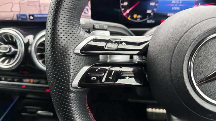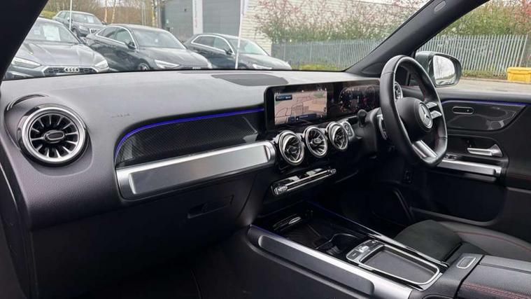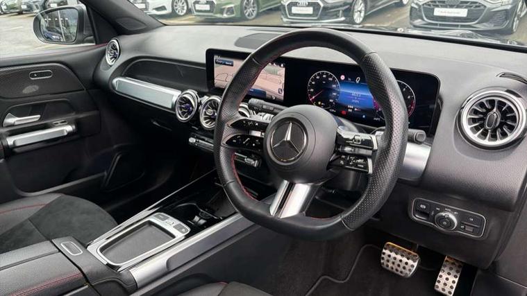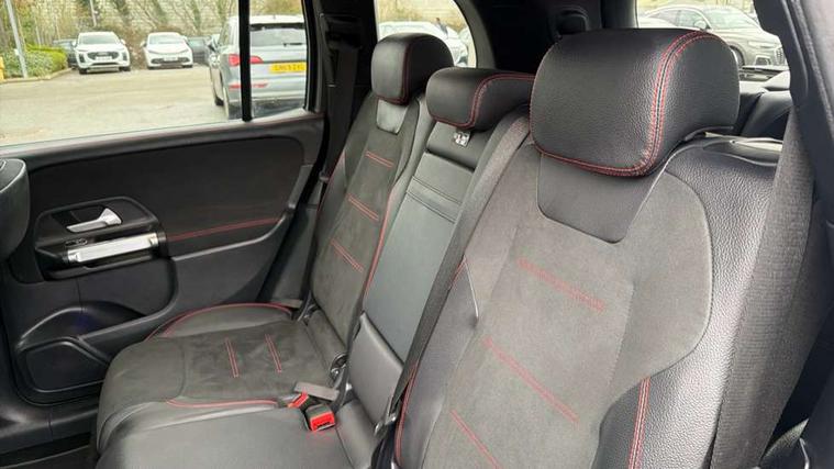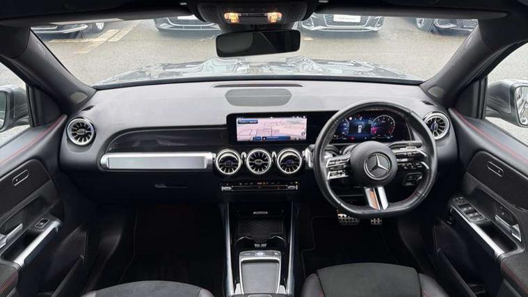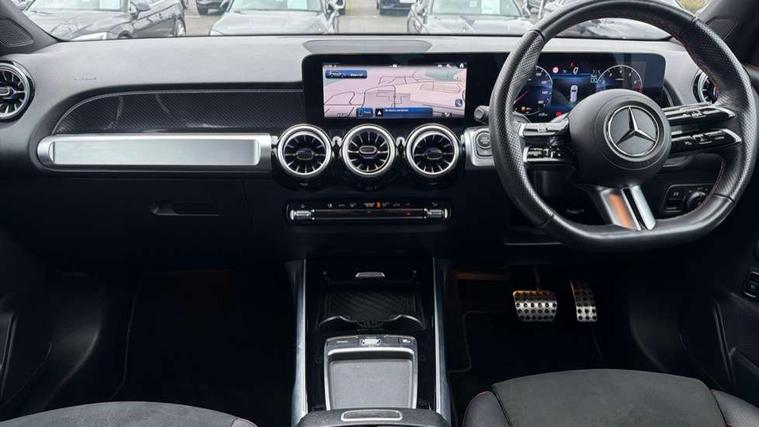10.25 inch touchscreen central media display, 10.25" Digital instrument cluster display screen, Attention assist - Monitors steering behaviour and long journey fatigue, Blind spot assist, Bluetooth connection, Brake pad wear indicator warning light, Car wash mode, Direct steering, DYNAMIC SELECT with a choice of driving modes (ECO, Comfort, Sport and Individual), ECO start/stop function, Exit warning function, Fingerprint scanner, Fluid level warning indicator for fuel, oil, coolant and washer fluid, Hard disk navigation, Hey Mercedes Voice activation, Lamp failure indicator, Lane keep assist, MBUX navigation premium, Mercedes me connect including emergency call system, accident recovery, breakdown and maintenance management, Mercedes me remote services, Outside temperature gauge, Owners manual and service booklet in English, Pre-installation of private car share, Preinstallation for parking damage notification, Radio aerial integrated into front and rear windshields, Service indicator (ASSYST), Smartphone integration with Apple CarPlay and Android auto, Speed limit assist, Tailgate, Trip computer in multifunction display with current consumption indicator, Wireless charging, Comfort suspension with ride height lowering, Rear axle multi-link, DAB digital radio tuner, MBUX multimedia system, Mercedes Benz sound system (100 W) with 6 speakers, Pre installation for Mercedes Benz Link, Adaptive brake lights, Adaptive high beam assist, AMG front apron with front splitter in the colour of the vehicle with chrome trim element, AMG rear apron with visible tailpipe trim and chrome trim element, AMG specific/dual flow exhaust pipes in chrome (non-functional), Beltline trim and window line trim strip in high gloss aluminium, Black grained side sill trim with chrome inlay, Body coloured door handles, Electric adjustable and heated door mirrors with integrated LED side indicators, Front and rear electric windows, Headlamp assist automatic headlamp activation, Heat insulating dark tinted glass for rear side windows and rear window, Heated glass rear windscreen + timer control, High level LED third brake light, Interior mirror with black reading lamps and frameless, LED high performance headlamps with integrated LED daytime running lights, LED tail lamp, Polished aluminium roof rails, Radiator grille as a diamond grille with chrome pins and central Mercedes star, Rain sensor windscreen wipers with two sensitivity stages, Rear fog lamp, Rear side wing doors, Rear wiper, Single louvre in matt grey with chrome inserts and black highlights, Two visible tailpipe trim elements exhaust, Wheel arch liners in the colour of the vehicle, 3 seat bench in 2nd row, 3 twin spoke flattened multifunction steering wheel in nappa leather - horizontal twin spoke in high gloss black, vertical twin spoke in silver chrome, 4 way adjustable lumbar support, 40:20:40 split folding rear seats, Air vents with silver chrome surrounds, AMG floor mats, AMG sports pedals with brushed stainless steel surfaces and black rubber studs, Artico man-made leather/Microcut microfibre upholstery, Automatic child seat recognition sensor, Black roof lining, Fluorescent jacket, Front and rear headrests, Front centre armrest with stowage, Galvanised steering wheel gearshift paddles in silver chrome, Heated front seats, Height adjustable head restraints, Height/reach adjustable steering column, Interior lighting - 64 colour Ambient lighting, Luggage net on driver/front passenger seat backrest, Single front passenger seat, Sports seats, Stowage compartment in centre console with retractable cover and double cupholder and 12 V socket, Sun visors with illuminated vanity mirrors, THERMATIC automatic climate control, Third row of seats for two people on rear seat, Twin front cup holders, Two outer rear seat isofix and top tether child seat fixing points, Easy pack tailgate, Interior lighting with light and sight pack - GLB, KEYLESS-GO Comfort package - GLB, Mirror package - GLB, Parking Package with reversing camera - GLB, Seat comfort package - GLB, USB package plus - GLB, 3 rear 3 point seatbelts, Active bonnet pedestrain safety measure which detects an impact and raises bonnet by 65mm, Active brake assist includes forward collision warning system with autonomous braking, Adaptive brake assist with hold function and hill start assist, Airbags - kneebag for driver, Anti-lock braking system (ABS) with brake assist, Black seatbelts, Bonnet with power domes, Childproof locks manually operated for rear doors and electrically operated for rear power windows, Crash responsive emergency lighting, Curve dynamic assist, Driver and front passenger head and sidebags, Driver and front passenger windowbags, Dual stage driver and front passenger airbags, Electric parking brake, Electronic stability programme with acceleration skid control, Front and rear seatbelt reminder, Front brake callipers with Mercedes Benz lettering, Front passenger seat occupancy sensor, Perforated front brake discs, Tyre pressure monitoring system, Warning triangle and first aid kit, Guard 360 degree vehicle protection - Anti theft alarm system, tow away protection with visual, acoustic warning and alarm, Interior monitoring system, KEYLESS-GO starting function, Remote central locking and crash sensor with emergency opening function, Thatcham category 1 alarm system with immobiliser and interior protection, Carbon structure trim, 19" AMG 5 twin spoke light alloy wheels aerodynamically optimised, painted in high-gloss black and with a high-sheen finish RTG, Summer tyres, Tirefit tyre sealant kit,