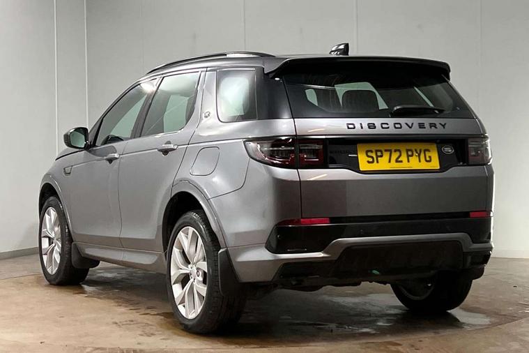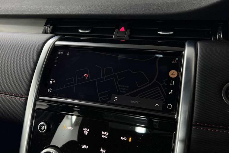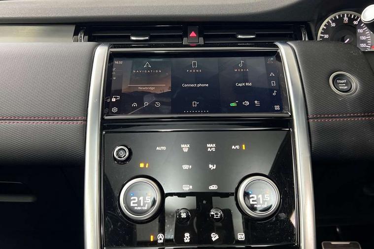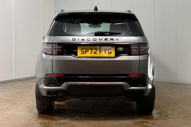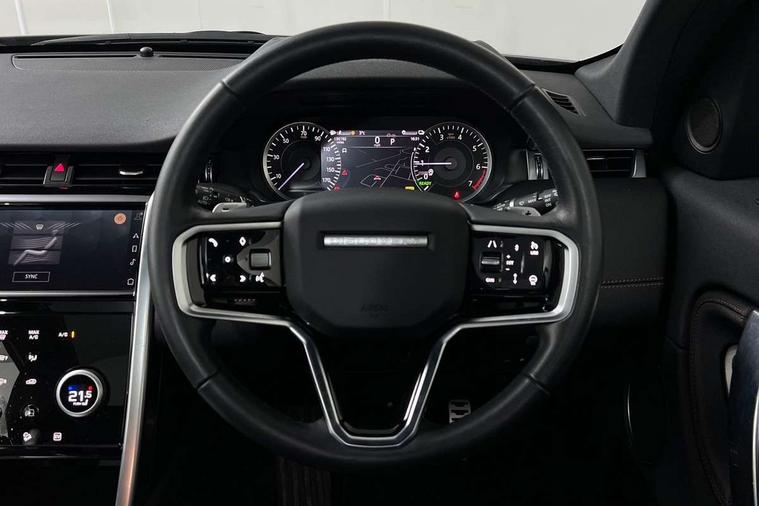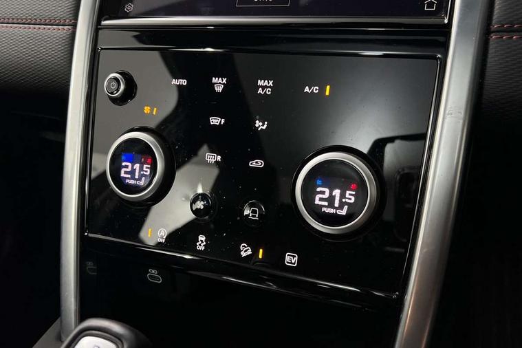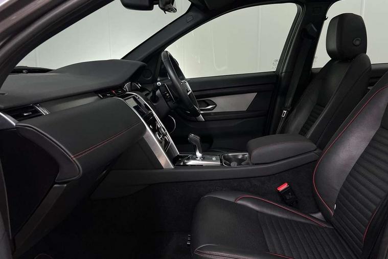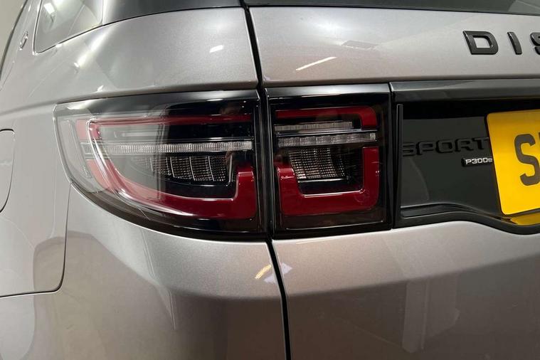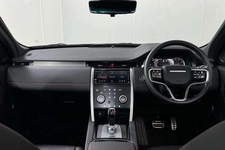 10" touch screen, Adaptive cruise control, Android Auto, Apple CarPlay, Driver condition monitor, eCall emergency call system, Front and rear parking aid, InControl remote premium, Lane keep assist, Locking fuel flap, PAS, Pivi Pro connected navigation system with upgraded Infotainment, Powered tailgate/boot lid, Push button start, Rear collision monitor, Service interval indicator, Traffic sign recognition with adaptive speed limiter, Trip computer, Wade Sensing, 7 kW onboard charger, All terrain progress control, Coil suspension system, Dynamic stability control, Home charging cable, Public charging cable, Terrain Response 2, Bluetooth connectivity including audio streaming, Digital Audio Broadcast radio-DAB, Steering wheel mounted audio controls, 3rd brake light, Automatic headlights, ClearSight interior rear view mirror, Electric front/rear windows, Electric heated/power fold door mirrors with approach lights and auto dimming driver side, Fixed panoramic sunroof with powered sunblind, Front and rear recovery eyes, Heated rear window, Heated windscreen including heated washer jets, R Dynamic badge, Rain sensing windscreen wipers, Rear fog lights, Rear side wing doors, Rear wing door, Rear wiper, 5 seats, Bright metal pedals, Centre console with armrest, Footwell lights, Front and rear grab handles, Front passenger isofix child seat attachment, Loadspace cover, Loadspace light, Overhead lighting console, Overhead stowage for sunglasses, Rear headrests, Satin chrome gearshift paddles, Sunvisors with illuminated vanity mirrors, Tilt/reach adjustable steering wheel, Black exterior pack - Discovery sport, Online pack with data plan - Discovery, 3 point seatbelts on all seats, ABS, Brake hold function, Child locks on rear doors, Collision mitigation braking system, Cornering brake control (CBC), Driver/Front Passenger airbags, Drivers knee airbag, Electronic brake force distribution, Electronic parking brake, Emergency brake assist, ESP + traction control, Hill descent control, Hill launch assist, Pedestrian airbag system, Rear seat ISOFIX, Roll stability control, Side and curtain airbags for front and 2nd row seats, Trailer stability control, Tyre pressure monitoring system, Battery Back Up System (BBUS) with tilt sensor, Global lock and unlock switch on driver door, Intrusion sensor, Keyless entry, Locking wheel nuts, Centre stack rails in noble chrome,
