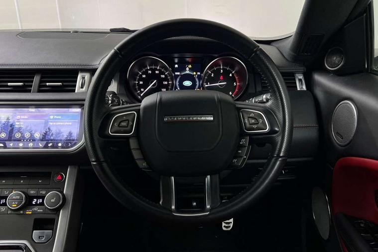 10.2 " Touch screen, Bluetooth telephone connectivity, Drive select with paddle shift and sport mode, EPAS, InControl remote premium, InControl secure, InControl Touch navigation pro, Land Rover InControl apps, Parking distance sensors front and rear, Service interval indicator, Stop/start system, Trip computer, Voice control system, All terrain progress control, Diesel particulate filter, Auxiliary Audio Jack, Bluetooth audio streaming, CD/DVD player, DAB Digital radio, InControl pro Services for warranty period, InControl protect, Steering wheel mounted audio/cruise controls, Anthracite side sills, Auto dimming rear view mirror, Automatic headlamp activation, Black fender vents, Body colour door handles, Body coloured bumpers, Dynamic bodystyle, Ebony Black Roof, Electric front windows with global close, Electric/heated/folding door mirrors with memory + auto dipping and puddle lights, Heated windscreen, Heated windscreen washers, High beam assistant, Narvik black mirror caps, Narvik black tailgate finish, Rain sensor windscreen wipers, Rear spoiler, Trailer stability assist, Windbreak, 60/40 split folding rear seat, Air quality sensor, Auto climate control with air filtration, Centre console storage with lid, Configurable Ambient interior lighting, Driver/passenger sunvisors and illuminated vanity mirrors, Ebony morzine headlining, Footwell illumination, Front centre armrest with 2 cupholders, Front head restraints, Front map lights, Height/reach adjustable steering column, Illuminated front tread plates + chrome tailgate plate, Illuminated glovebox, Isofix child seat preparation, Lashing points, Perforated leather steering wheel, Rear air con vents, Rear headrests, Stainless steel sports pedals, 3 rear 3 point seatbelts, ABS/EBD, Driver and passenger airbags, Drivers knee airbag, DSC - Dynamic Stability Control, DTC - Drag torque control, EBA, Electronic parking brake, Electronic traction control, Front seatbelt pretensioners with force limiters, Height adjustable front seatbelts, Hill descent control, Hill start assist, Intelligent all wheel drive system - Active Driveline, Roll over protection, Roll stability control, Seatbelt warning, Side airbags, Torque vectoring brake, Tyre pressure monitoring system, Alarm, Immobiliser, Locking wheel nuts, Remote central locking,
