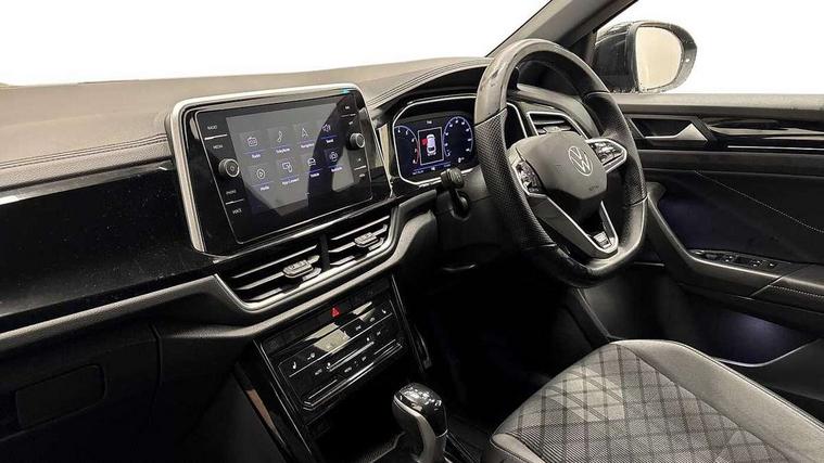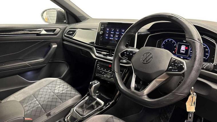 10.25" Digital cockpit pro, Bluetooth mobile phone interface, Driver alert system with fatigue detection, Driver tips and journey analysis, Emergency call service, Lane keeping system Lane Assist, Modified key software - reduce switch off time for key status change to Long no motion, Online services, Park assist including front and rear parking sensors, Service interval indicator, Tailgate/trunk lid release from outside, Think blue trainer driver tips and journey analysis, Warning sound and light for front seatbelts unfastened, Wireless app connect, Battery regeneration during braking, Start/stop function with battery regeneration, Diversity antenna for FM reception, Front and rear 6 speakers, Music playback - MP3, WMA and AAC files, Premium USB cable in choice of either Apple or Android smartphone compatibility, SD card slot, Simultaneous pairing of 2 compatible mobile devices, Title and cover art display, We Connect and We Connect Plus functionality, 3rd brake light, Auto dimming interior rear view mirror, Automatic hazard lights activation under emergency braking, Automatic headlight control with LED separate daytime running lights with coming/leaving home function, Extended roof spoiler, Exterior mirrors aspherical on driver side, convex on front passenger side, External USB type C socket and charging sockets, Front windscreen wiper with intermittent wipe and 4 position delay, Heated rear window, LED Plus headlamps, LED rear combination lamps, LED rear number plate lights, LED tail lamp rear comination lamps, Power windows with comfort operation and circuit breaker, R-Line design body coloured bumpers, Rain sensor, Rear exhaust tailpipe, Rear fog light on one side and reversing lights on both sides, Rear side wing doors, Rear wash/wipe with intermittent wipe setting, Remote electrically foldable door mirrors, puddle lights and reverse activated passenger's door mirror, 12V power socket in centre console, 3 rear head restraints, 3 seat bench in 2nd row, 4 load lashing points in luggage compartment, Air care climatronic air conditoning system with active combination filter and 2-zone temperature control, Black roof lining, Chrome plated radiator grille inserts, air vent surrounds and light switch surrounds, Door and side trim panel with leatherette insert, Drawer under drivers seat, Front + rear carpet mats, Front centre armrest, Front cupholders x 2, Front footwell illumination, Front reading light, Front scuff plates with R logo, Instrument lighting, white adjustable panel illumination, Interior ambient lighting and surround lighting, Interior light delay, Isofix child seat preparation, Leather gearshift handle, Load-through provision with cup holder when folded down ('Unsplit rear seat bench, split folding backrest, with centre armrest), Luggage compartment lighting, Single front passenger seat, Stainless steel pedals, Storage compartment in left and right luggage area, Storage compartment in rear doors, Storage compartments in driver and front passenger doors, Sunvisors with illuminated vanity mirrors, Variable boot floor, height adjustable and removable, Driver assistance pack without proactive passenger protection - T-Roc, 3 point height adj front seatbelts + pretensioners, 3 point seatbelts in outer rear with ECE label, ABS, Child locks on rear doors, Driver and front passenger airbag with front passenger airbag deactivation, Driver and front passenger safety-optimised head restraints, Drivers seatbelt reminder, Electronic parking brake, Electronic Stability Control (ESC) inc EDL (Electronic Differential Lock) and ASR (Traction Control), Front and rear passengers curtain airbag system including front side airbags, Front assist with city emergency braking and pedestrian monitoring, Front seat side impact airbags, Hill start assist, Predictive pedestrian protection, Rear disc brakes, Single tone horn, Tyre pressure loss indicator, Volkswagen roadside assistance, Alarm with interior protection, Anti-theft alarm system with interior monitoring, backup horn, and towing protection, Remote central locking with SAFELOCK, radio remote control with 2 remote control folding keys, Trims for alloy wheels,