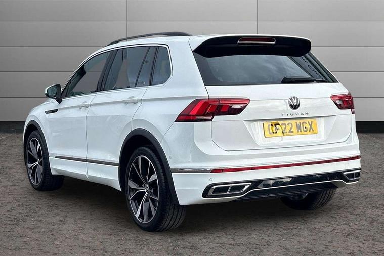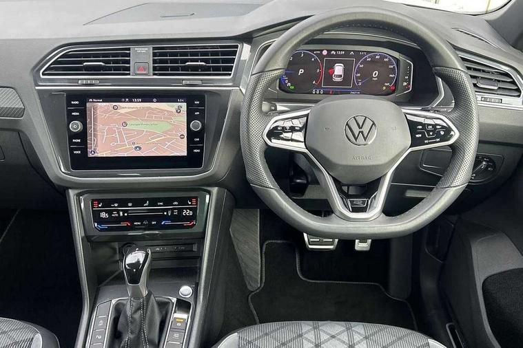 Adaptive cruise control ACC stop and go including speed limiter, App-Connect incl. App-Connect Wireless for Apple CarPlay and Android Auto, Bluetooth phone integration system, Distance control assist, Driver alert system, Driver profile selection, Dynamic road sign display, eCall emergency call system, Electromechanical speed sensitive power steering, Engine start/stop button, Lane keeping system Lane Assist, Lights on warning, Multifunction front facing camera, Outside temperature display, Premium multifunction display with multi colour display, Remote control boot opening, Rev counter, Revision / skills operating concept travel assistant, Service interval indicator, Speed limit display, Start/stop system with regenerative braking, Trip computer, Warning sound and light for doors and tailgate open, Battery regeneration during braking, Diesel particulate filter, Misfuel prevention device for diesel engine, Selective Catalytic Reduction, XDS electronic differential lock for improved traction and handling, 4 X 20 watt output, 8 Speakers, Diversity antenna for FM reception, Radio, SD card slot, Simultaneous pairing of 2 compatible mobile devices, SMS functionality - read, compose and send SMS messages using touch-screen display, Title and cover art display, USB C ports, Auto dimming interior rear view mirror, Automatic headlight control system, Body colour door handles, Chrome moldings on the side windows, Coming/leaving home lighting function, Dynamic headlight range control, Front and rear electric windows, Heated rear window, High level 3rd brake light, Laminated safety glass windshield, heat and sound insulating, LED headlamps with LED separate daytime running light and dynamic cornering light, LED rear combination lamps, LED rear number plate lights, License plate carrier in front and rear, Poor weather light and cornering light, R Line body kit, R Line side sills, Rain sensor windscreen wipers, Rear exhaust tailpipe, Rear fog lamp, Rear side wing doors, Rear spoiler in R style, Rear windscreen washer and wiper with interval delay, Side and rear windows in heat insulating glass, Trailer Stability Programme, Unique R Line badging, Windscreen wipers/ intermittent wipe + 4 position delay, 12V outlet in center console rear and in luggage compartment, 12V outlet in front and tray, 2 cup holders in front, 2 LED front reading lights, 2 LED rear reading lights, 3 bench rear seats in 2nd row, 3 rear headrests, 4 load lashing points, 40:20:40 split folding rear seats, Air Care Climatronic 3 zone automatic climate control with enhanced air filter and controls in the rear, Backrest release for left front seat, Black headlining, Brushed stainless steel pedals and footrest, Carpet mats in front and rear with decorative stitching in Gray, Climate control unit rear with touch function, Door and side trim panel in foam film, insert in leatherette, Front centre armrest, Front footwell illumination, Front seats head restraints (x-adjustment), Height adjustable front seats, Height/reach adjust steering wheel, Instrument lighting white adjustable panel illumination, Interior light with delay, Isofix Preparation 2 Rear child seats, Leather gear knob, Lockable cooled glovebox, Luggage compartment lighting, Luggage net, Rear bench seat asymetrically split folding, longitudinally movable and folding with load-through hatch and center armrest, Remote unlocking for rear seat backrest, Removable luggage cover, Removable rear headrests, Safety optimised front head restraints, Single front passenger seat, Sliding/reclining rear seats, Standard rear seat release, Storage compartment in driver's door, Storage compartment in passenger's door, Storage compartment in rear doors, Storage compartments in luggage area left and right, Storage tray on dashboard, Sun visors with illuminated vanity mirrors, Top front comfort seats, Variable boot floor, height adjustable and removable, Driver assistance pack plus - Tiguan DSG, 3 point seat belt for centre rear seats, 3 point seat belts with seat belt pretensioners for the outer rear seats, Active bonnet, Curtain airbags for front and rear passengers, Driver/Front Passenger airbags, Drivers knee airbag, Electronic parking brake with auto hold, Electronic Stability Control with driver steering recommendation, ABS, ASR, EDL, EDTC and trailer stabilization, Front assist with autonomous emergency braking (for Adaptive Cruise Control ACC up to 130 mph), Front disc brakes, Front passenger airbag deactivation, Front side airbags, Height adjustable front 3 point seatbelts + pretensioners, Hill hold control, Manual child proof rear door locks, Pedestrian monitoring system, Power assisted brakes, Proactive passenger protection system in combination with front assist, Rear disc brakes, Rigid safety cell with front and rear crumple zones, Two tone horn, Warning sound and light for front seat belts if unfastened, Anti theft alarm system with interior monitoring, backup horn and towing protection, Anti theft wheel bolts, Electronic engine immobiliser, Tool kit,