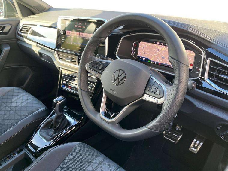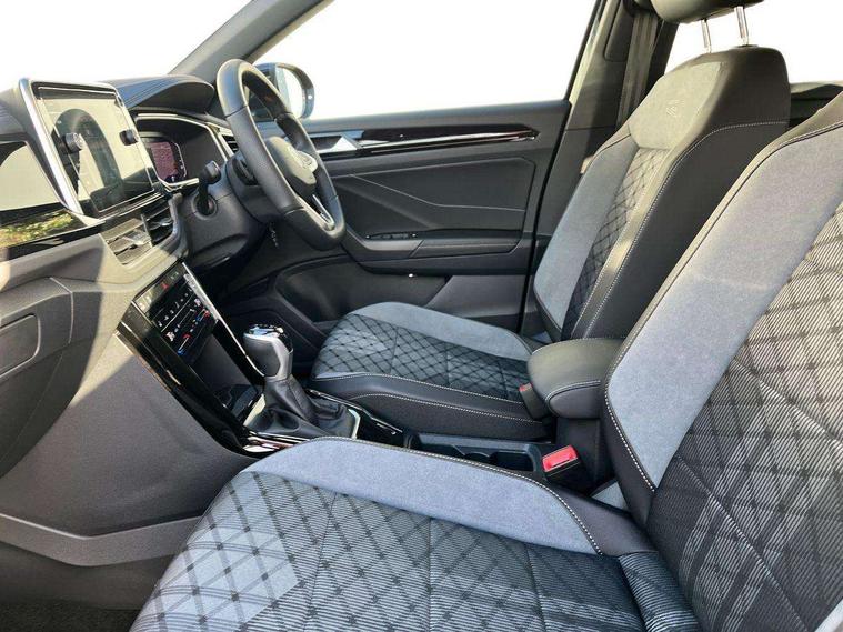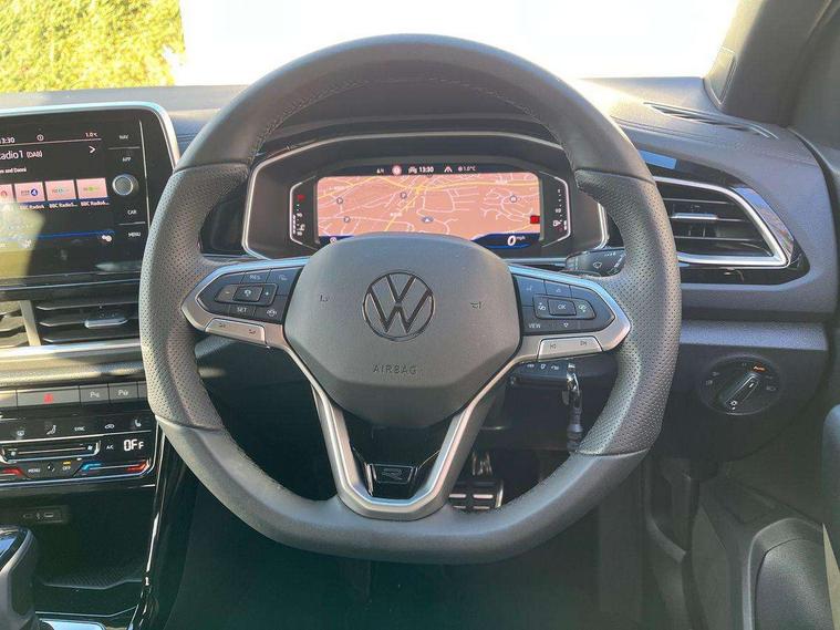 10.25" Digital cockpit pro, Advanced driver attention and drowsiness monitor, Emergency call service, Lane keeping system Lane Assist, Mobile phone interface, Modified key software - reduce switch off time for key status change to Long no motion, Online services, Park assist including front and rear parking sensors, Service interval indicator, Tailgate/trunk lid release from outside, Think blue trainer driver tips and journey analysis, Warning sound and light for front seatbelts unfastened, Wireless app connect, Battery regeneration during braking, Start/stop function with battery regeneration, DAB Digital radio, Diversity antenna for FM reception, Front and rear 6 speakers, Music playback - MP3, WMA and AAC files, Premium USB cable in choice of either Apple or Android smartphone compatibility, SD card slot, Simultaneous pairing of 2 compatible mobile devices, Title and cover art display, We Connect and We Connect Plus functionality, Auto dimming interior rear view mirror, Automatic hazard lights activation under emergency braking, Automatic headlight control with LED separate daytime running lights with coming/leaving home function, Body coloured exterior mirror housings and door handles, Electrically adjustable and heated door mirrors, Extended roof spoiler, Exterior mirrors aspherical on driver side, convex on front passenger side, External USB type C socket and charging sockets, Front windscreen wiper with intermittent wipe and 4 position delay, Heated rear window, LED 3rd brake light, LED rear combination lamps, LED rear number plate lights, Power windows with comfort operation and circuit breaker, Privacy glass for rear side windows and rear window, R-Line design body coloured bumpers, Rain sensor, Rear exhaust tailpipe, Rear fog light on one side and reversing lights on both sides, Rear side wing doors, Rear wash/wipe with intermittent wipe setting, Remote electrically foldable door mirrors, puddle lights and reverse activated passenger's door mirror, 12V power socket in centre console, 3 rear head restraints, 3 seat bench in 2nd row, 4 load lashing points in luggage compartment, Air care climatronic air conditoning system with active combination filter and 2-zone temperature control, Black roof lining, Chrome plated decorative trims, Chrome plated radiator grille inserts, air vent surrounds and light switch surrounds, Door and side trim panel with leatherette insert, Front + rear carpet mats, Front centre armrest, Front cupholders x 2, Front footwell illumination, Front reading light, Front scuff plates with R Line logo, Front seat back storage pockets, Glove compartment door with light, Instrument lighting, white adjustable panel illumination, Interior ambient lighting and surround lighting, Interior light delay, Isofix child seat preparation, Leather gearshift handle, Load-through provision with cup holder when folded down ('Unsplit rear seat bench, split folding backrest, with centre armrest), Luggage compartment lighting, Single front passenger seat, Stainless steel pedals, Storage compartment in left and right luggage area, Storage compartment in rear doors, Storage compartments in driver and front passenger doors, Sunvisors with illuminated vanity mirrors, Variable boot floor, height adjustable and removable, Driver assistance pack without proactive passenger protection - T-Roc, 3 point height adj front seatbelts + pretensioners, 3 point seatbelts in outer rear with ECE label, ABS, Child locks on rear doors, City emergency braking and pedestrian monitoring, Driver and front passenger airbag with front passenger airbag deactivation, Driver and front passenger safety-optimised head restraints, Drivers seatbelt reminder, Electronic parking brake, Electronic Stability Control (ESC) inc EDL (Electronic Differential Lock) and ASR (Traction Control), Front and rear passengers curtain airbag system including front side airbags, Hill start assist, Predictive pedestrian protection, Rear disc brakes, Two tone horn, Tyre pressure loss indicator, Volkswagen roadside assistance, Piano black decorative inserts in dashboard and front door trim panels, Trims for alloy wheels,
