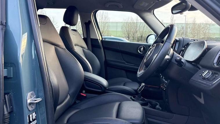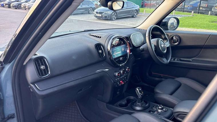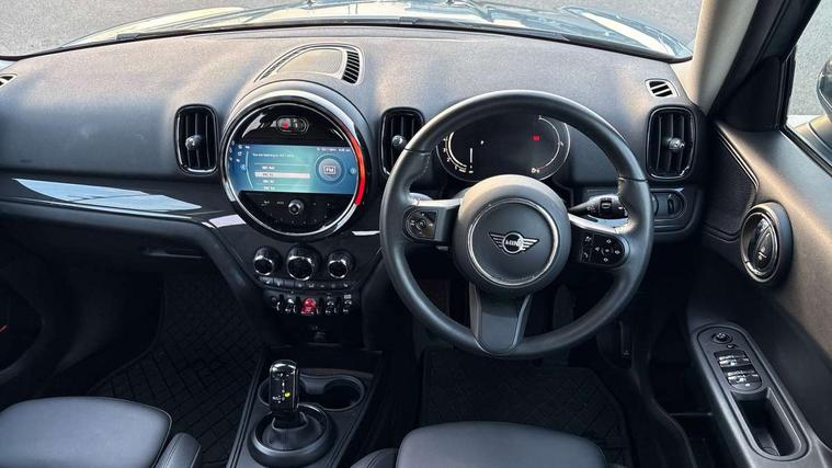 Active Guard incl speed limiting and lane departure functions with auto steering, and front collision warning with brake intervention, Automatic start/stop function with brake energy recuperation, Compatible mobile phone bluetooth with audio streaming, Cruise control with brake assist, Electro-mechanical speed dependant steering assistance, Instrument cluster, Mini E-call, On board computer, Rear parking distance control, 51 Litre fuel tank, Double Vanos system, Fully variable valve control, High precision injection, Performance Control, Steptronic transmission with double clutch, FM tuner and DAB digital radio, 3rd brake light, Body colour fuel filler cap, Day time driving lights, Door sill strips, Dynamic brake lights, Electric windows, Heated rear window, Heated windscreen washer jets, LED fog lights, LED Headlights, Left exhaust tailpipe with chrome finisher, Model logo, Model logo on Tailgate, Radiator grille, Rain sensor with auto headlights, Rear fog lights, Rear side wing doors, Rear window wiper, Side scuttle panel with integrated indicator, Split rear doors, Sun/heat protection glass, White indicator lenses, 12V socket in centre console, 3 seat bench in 2nd row, 3 spoke sport leather steering wheel + limiter function and audio controls, 360L luggage compartment capacity, 4 lashing eyes in luggage compartment, 40:20:40 split folding rear seats, Chrome interior highlights, Colour line - Carbon black, Cupholders, English handbook, Floor mats, Front headrests, Glove compartment, Headliner with grab handles and clothes hooks, Height and length steering column adjustment, Interior lighting with 12 basic colours selectable via toggle switch in roof, Isofix rear child seat preparation, Leather gearshift lever and handbrake gaiters, LED reading lights, vanity mirror lights, front foot well light and spotlight on front seats, Manual air conditioning, Mechanical seat adjustment, driver seat height adjust, forward/back and front seats backrest, Multifunction steering wheel, Passenger seat height adjuster, Rear headrests, Single front passenger seat, Storage compartments in doors, Sunvisors with vanity mirrors, Excitement pack - Countryman, Navigation pack - Countryman, 2 tone horn, 3 point seatbelts on all seats, 6 Airbags - front, side, head and seat belt tensioners, Anti-lock braking system (ABS), DSC - Dynamic Stability Control, Electronic handbrake, Front and rear disc brakes, Hill start assist, Manual rear child locks, Tyre pressure monitoring system, Alarm system with tilt sensor, monitoring doors, bonnet interior and tailgate, Auto drive away locking, Deadlocking function, Electronic vehicle immobiliser, Locking wheel bolts, Start/stop toggle with keyless go, Tool kit,